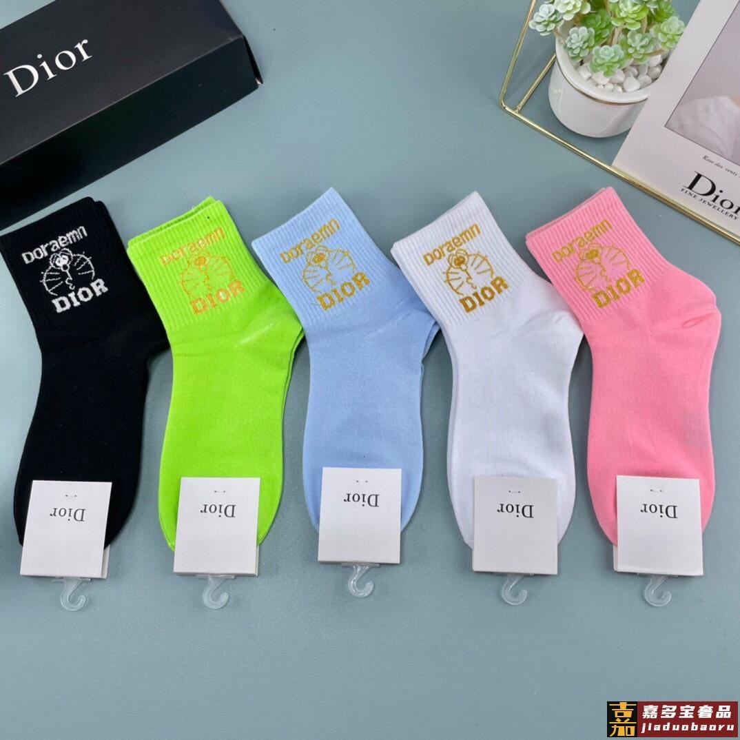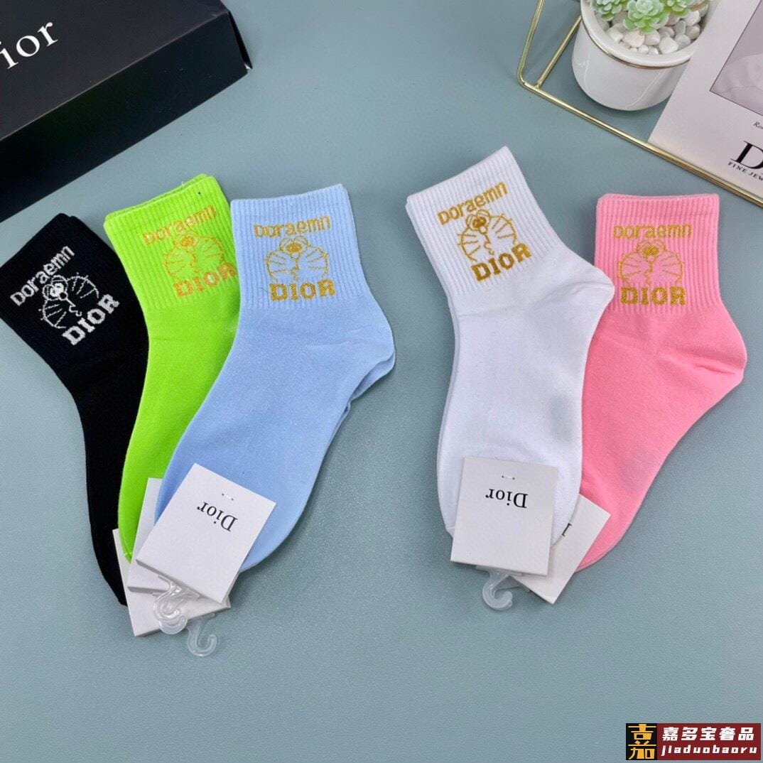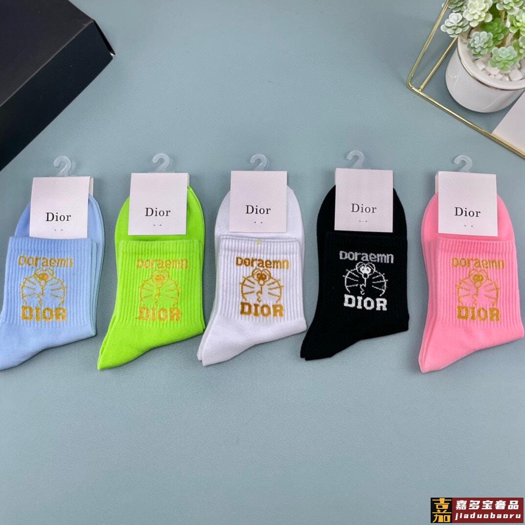 一盒五双迪奥家春夏新品女款袜子纯棉材质上脚柔软舒适满满的字母