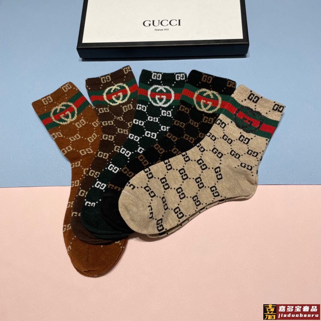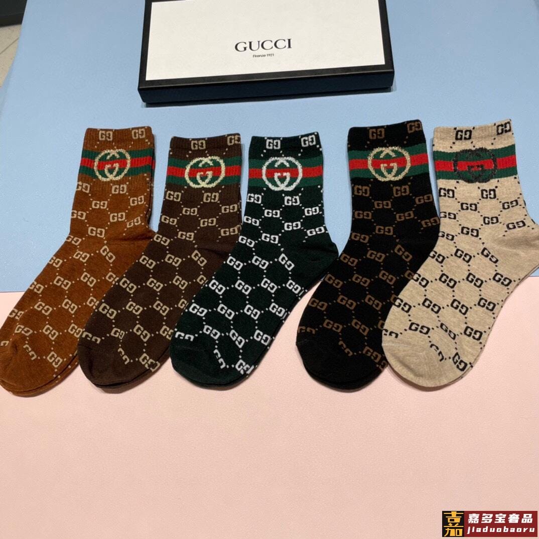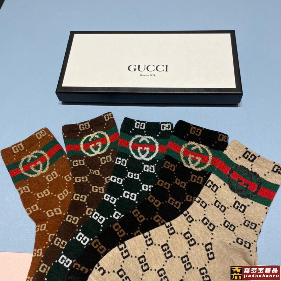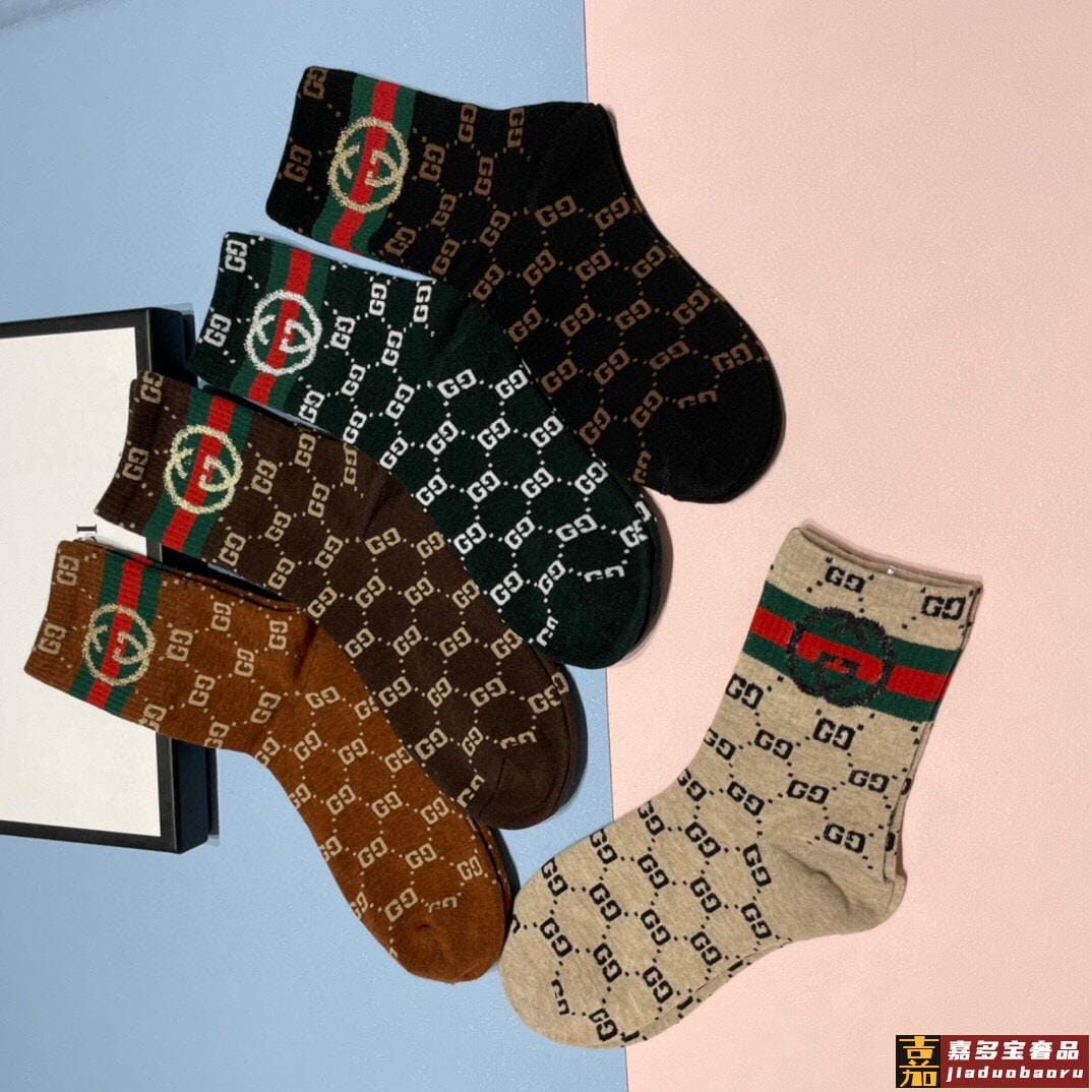 配包装一盒五双古奇家新品男女款中筒袜子经典家品牌全称简单大气