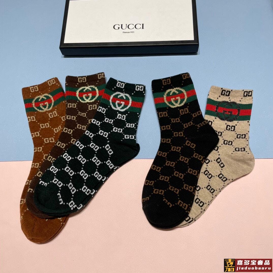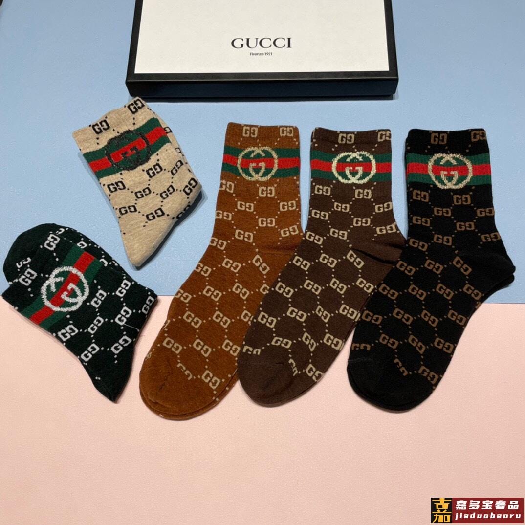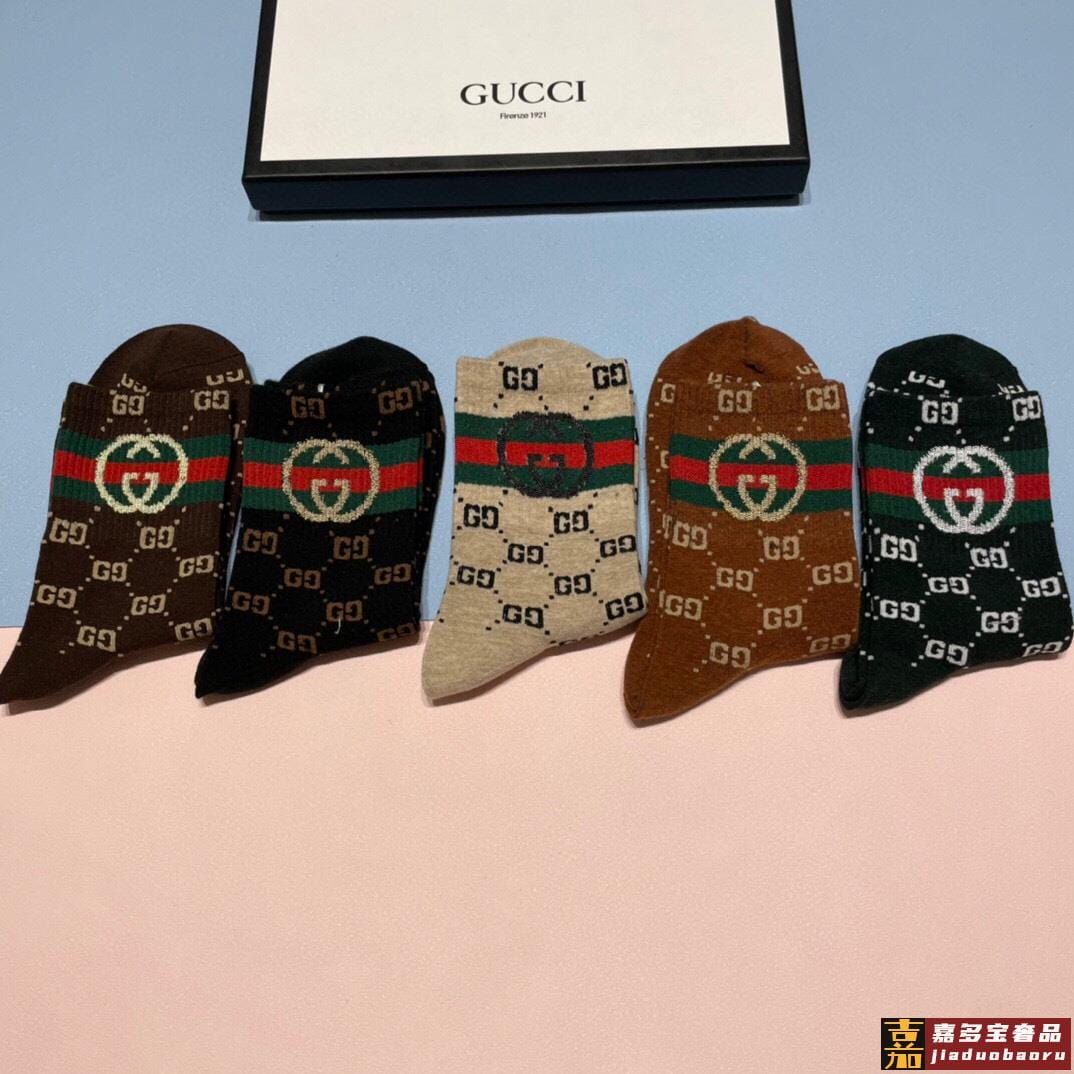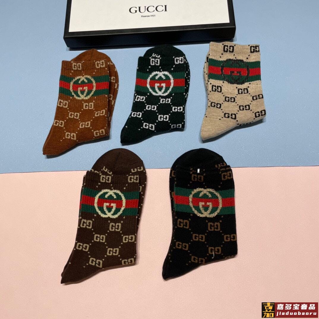 配包装一盒五双古奇家新品男女款中筒袜子经典家品牌全称简单大气