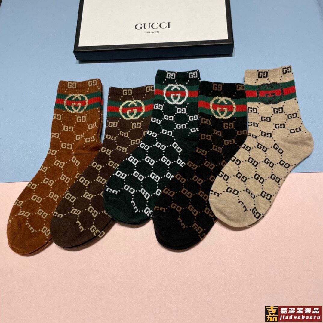 配包装一盒五双古奇家新品男款中筒袜子经典家品牌全称简单大气实