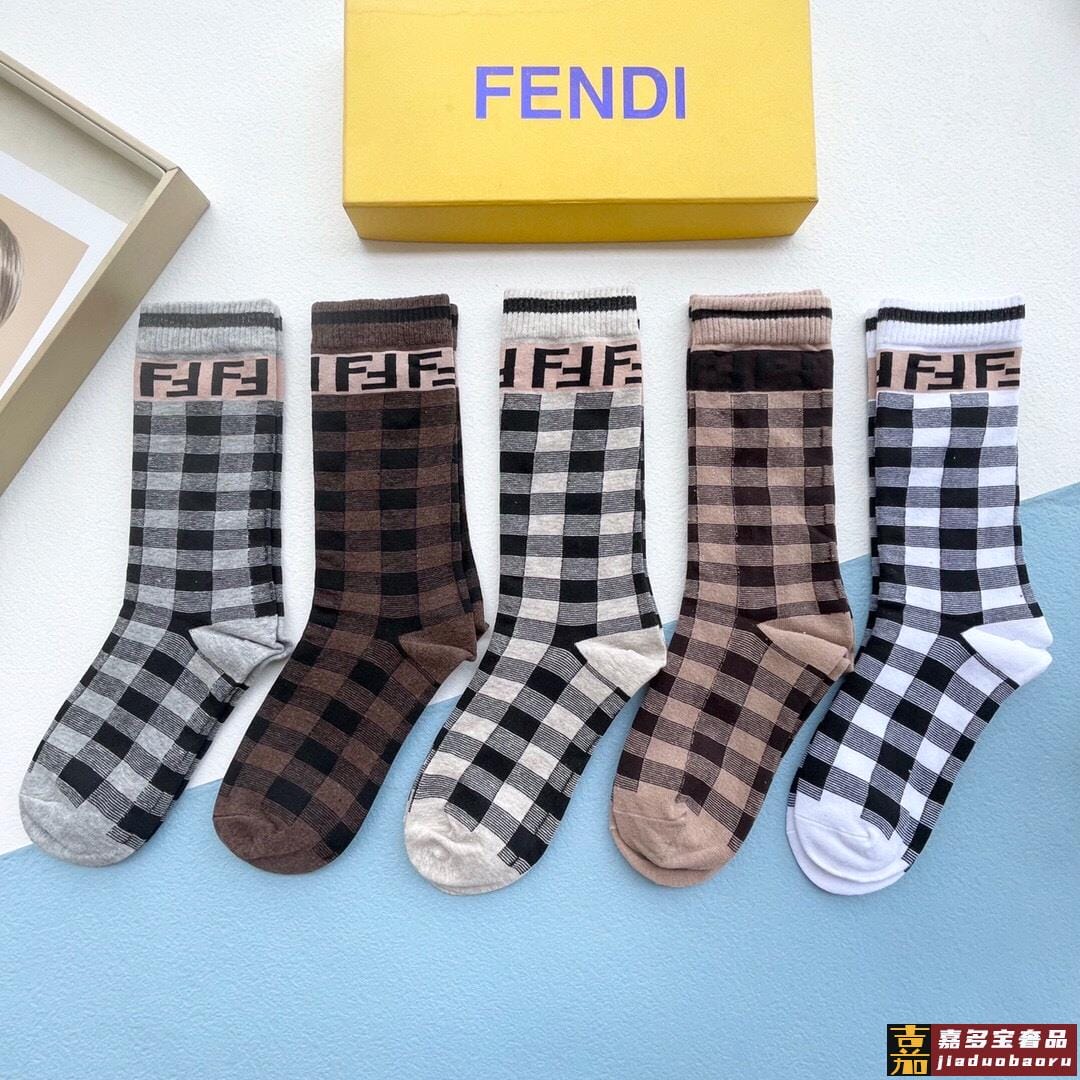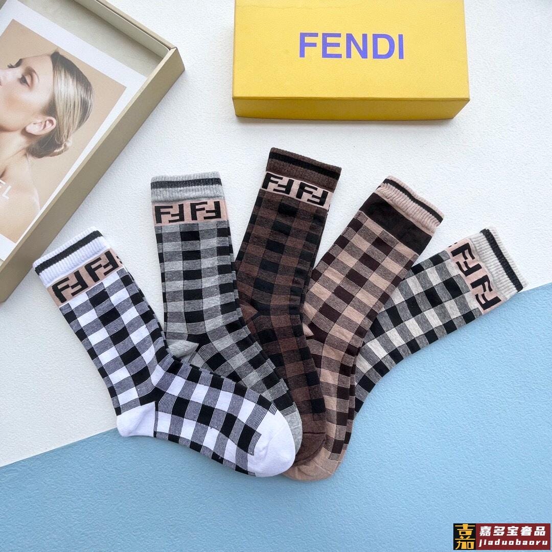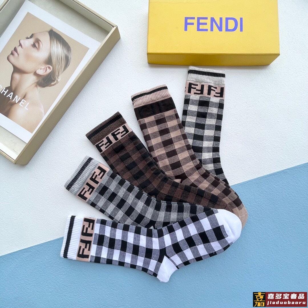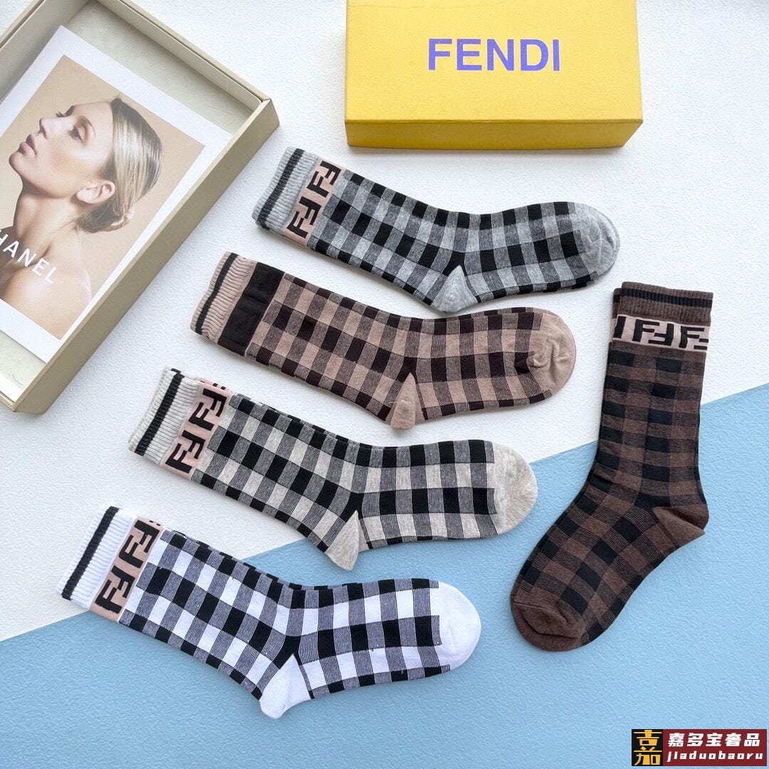 配包装一盒五双芬迪大新品秋冬款高筒袜子超级经典的双标志纯棉材