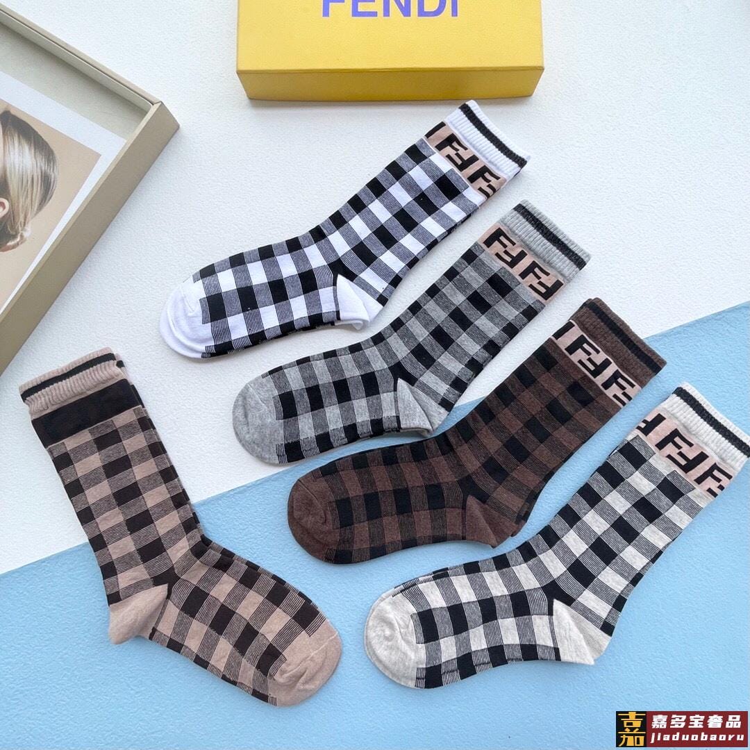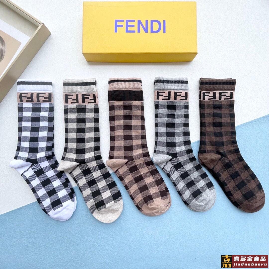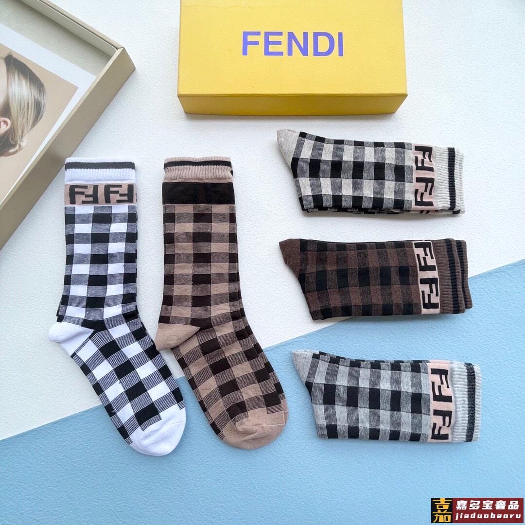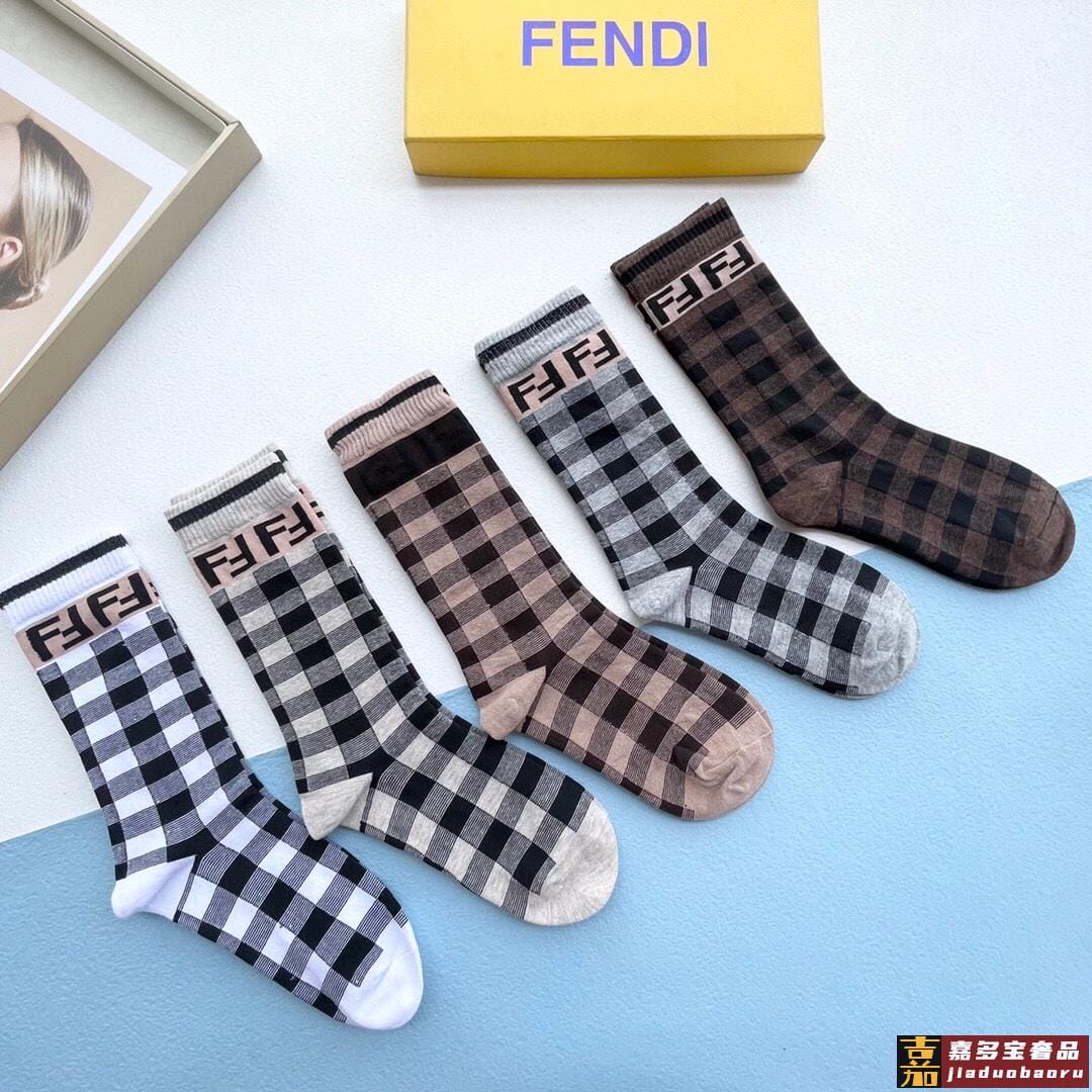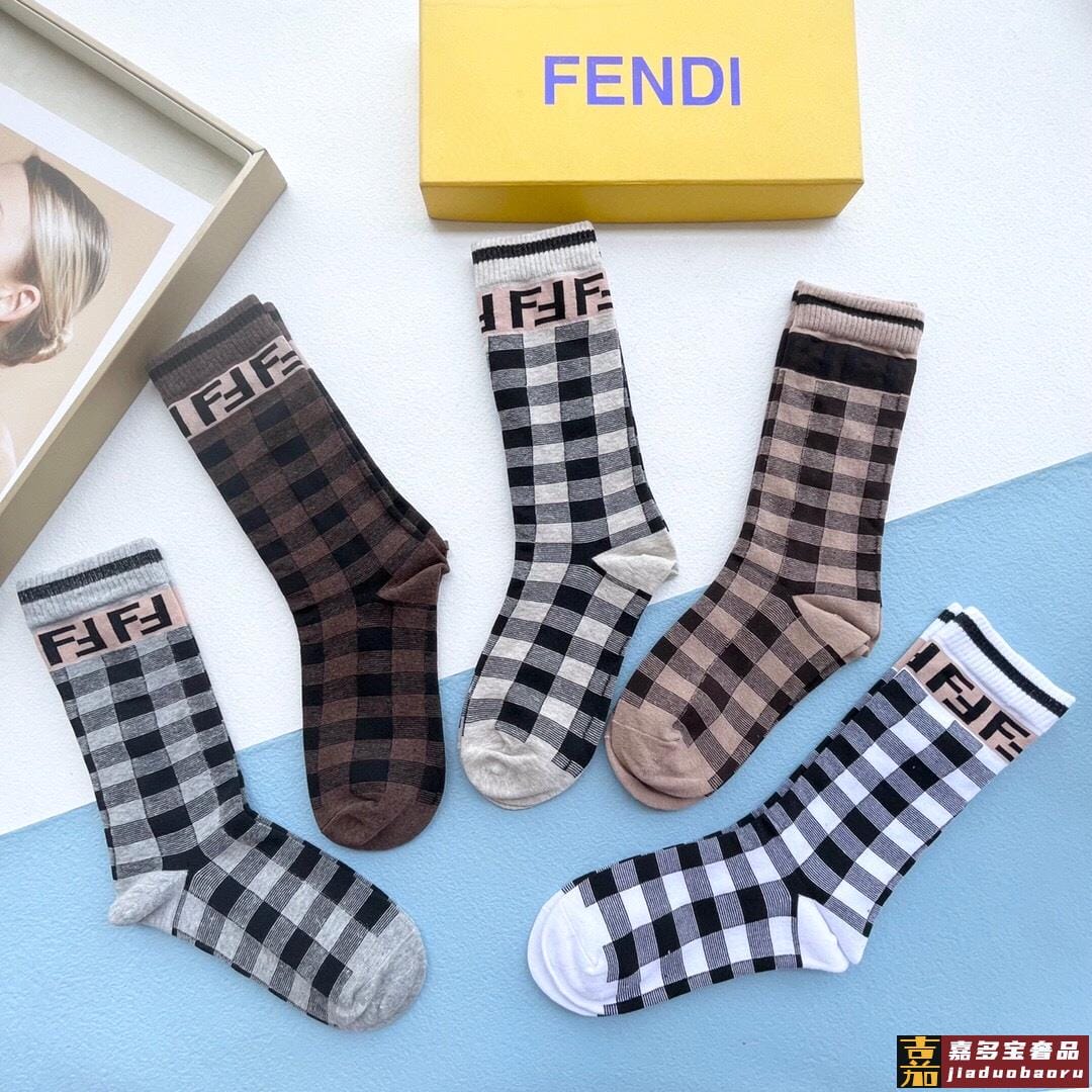 配包装一盒五双芬迪大新品秋冬款高筒袜子超级经典的双标志纯棉材