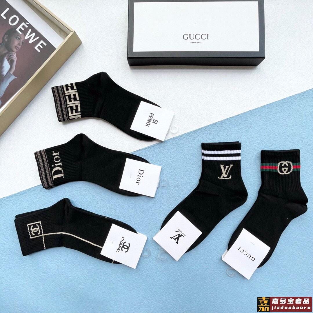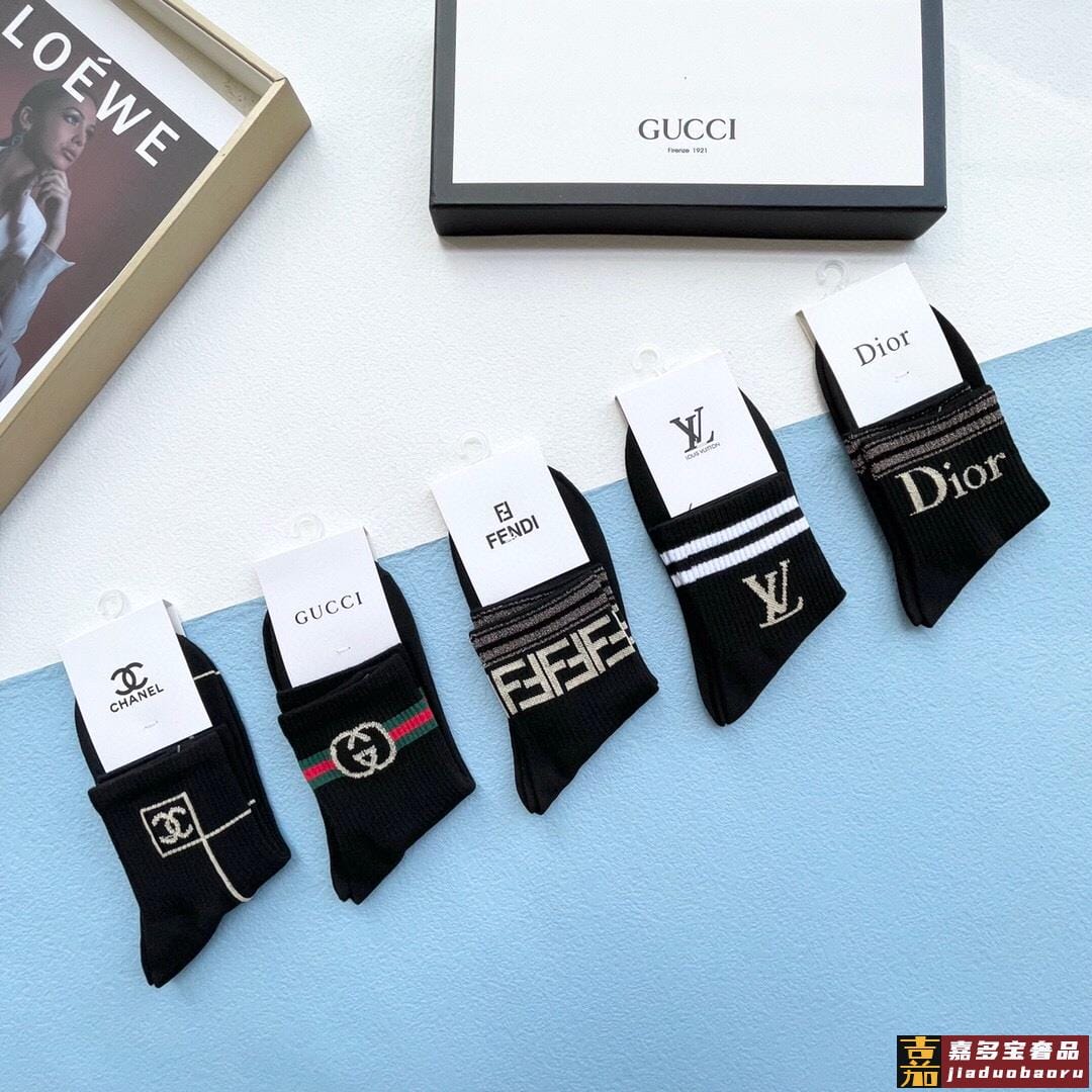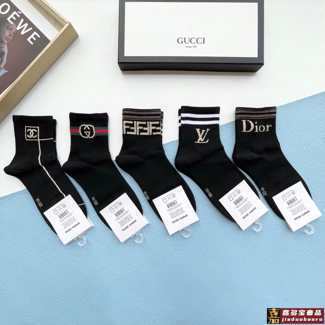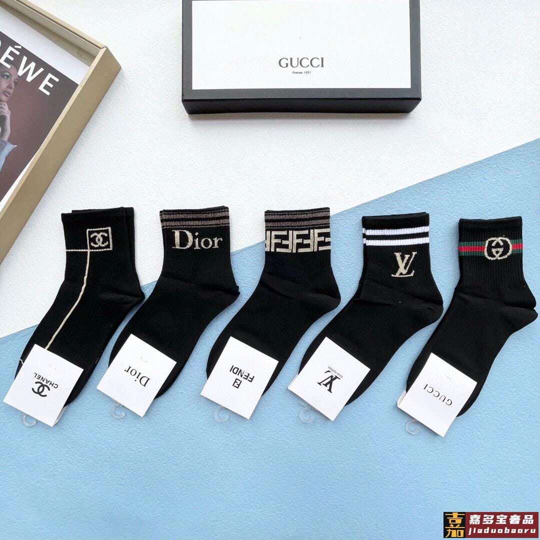配包装一盒五双古奇家新品男女款中筒袜子经典家品牌全称简单大气