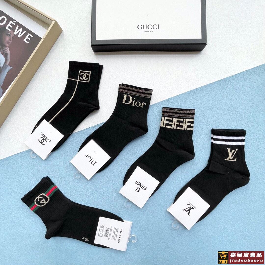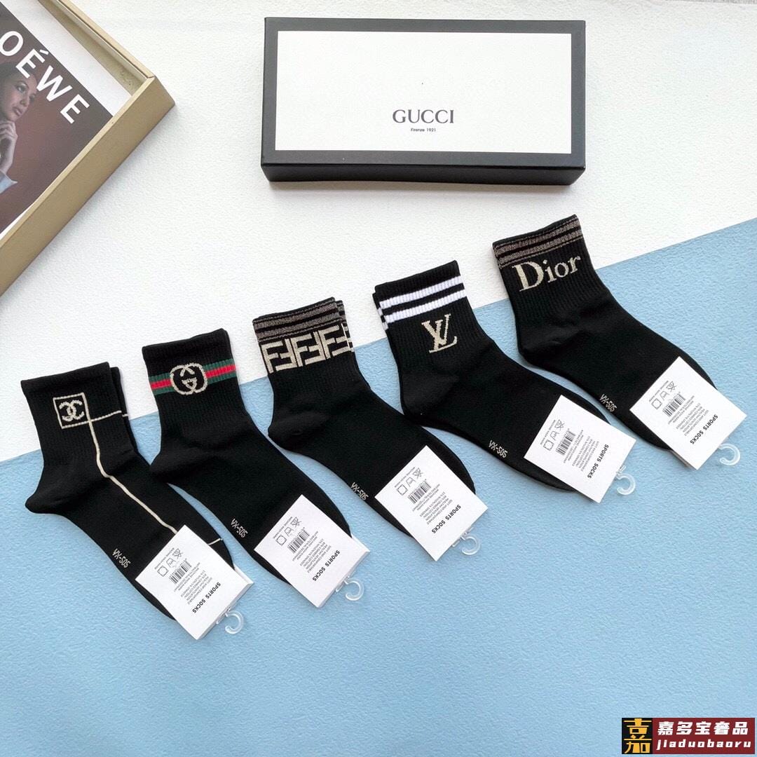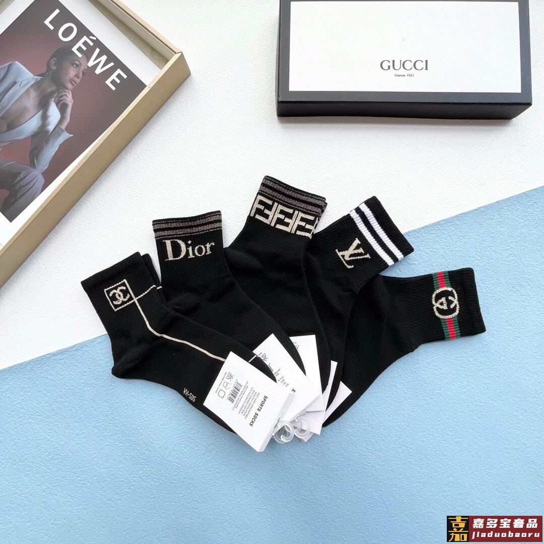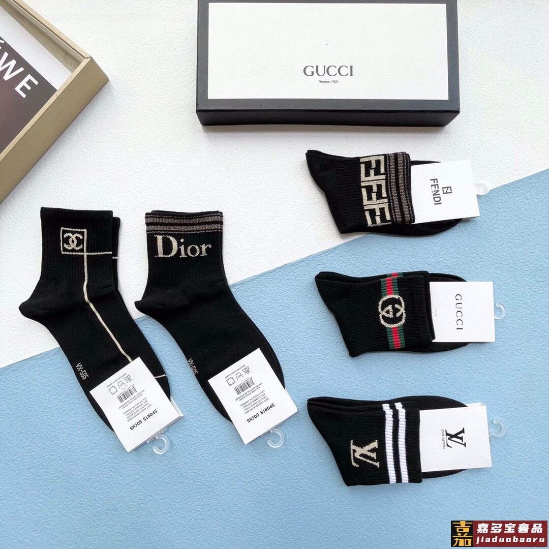 配包装一盒五双古奇家新品男女款中筒袜子经典家品牌全称简单大气