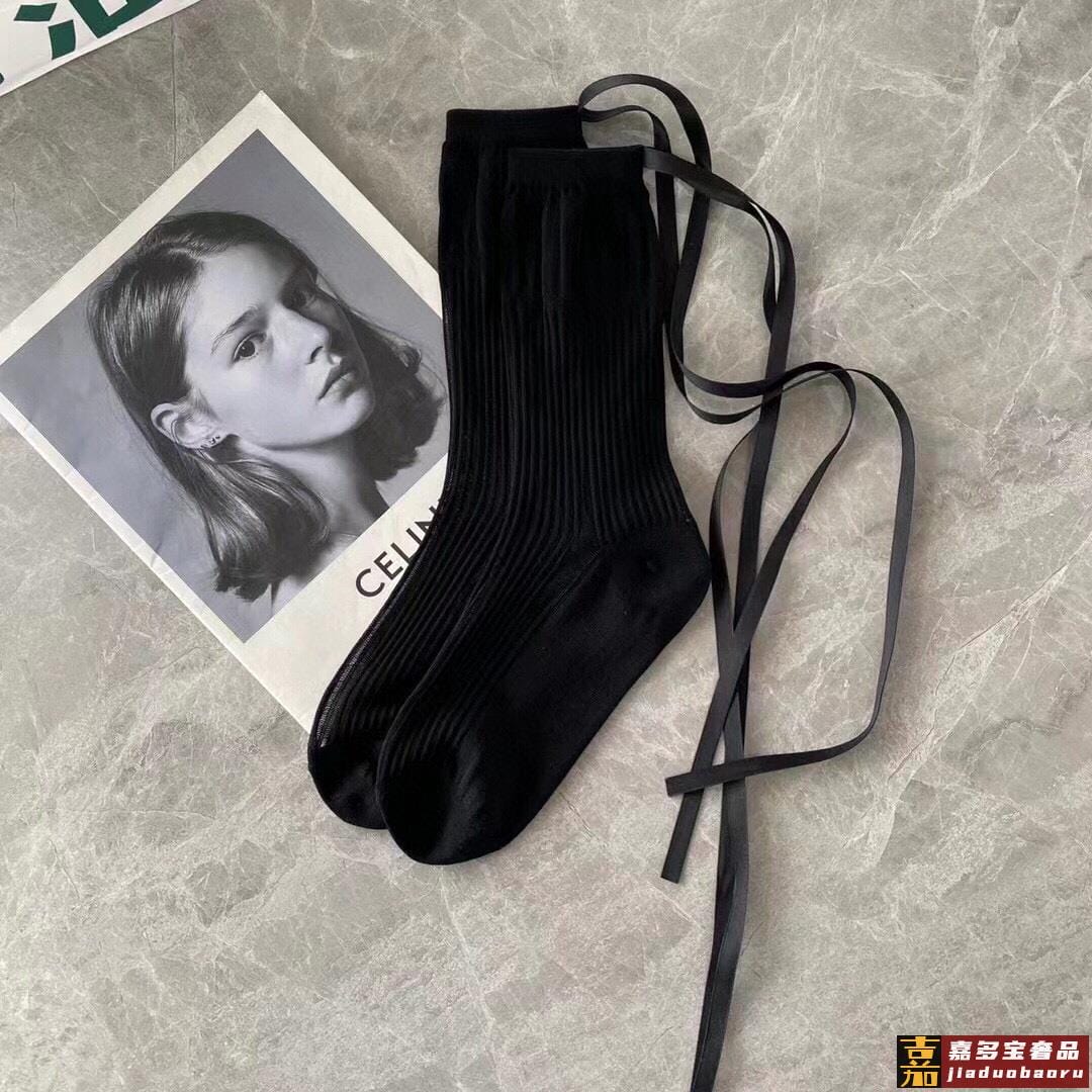 配包装一盒五双黑色小態爆款高筒袜高版本好看到爆炸欧美大牌中筒