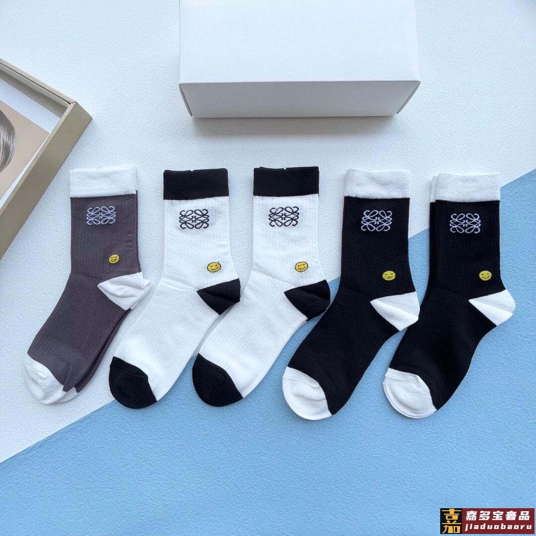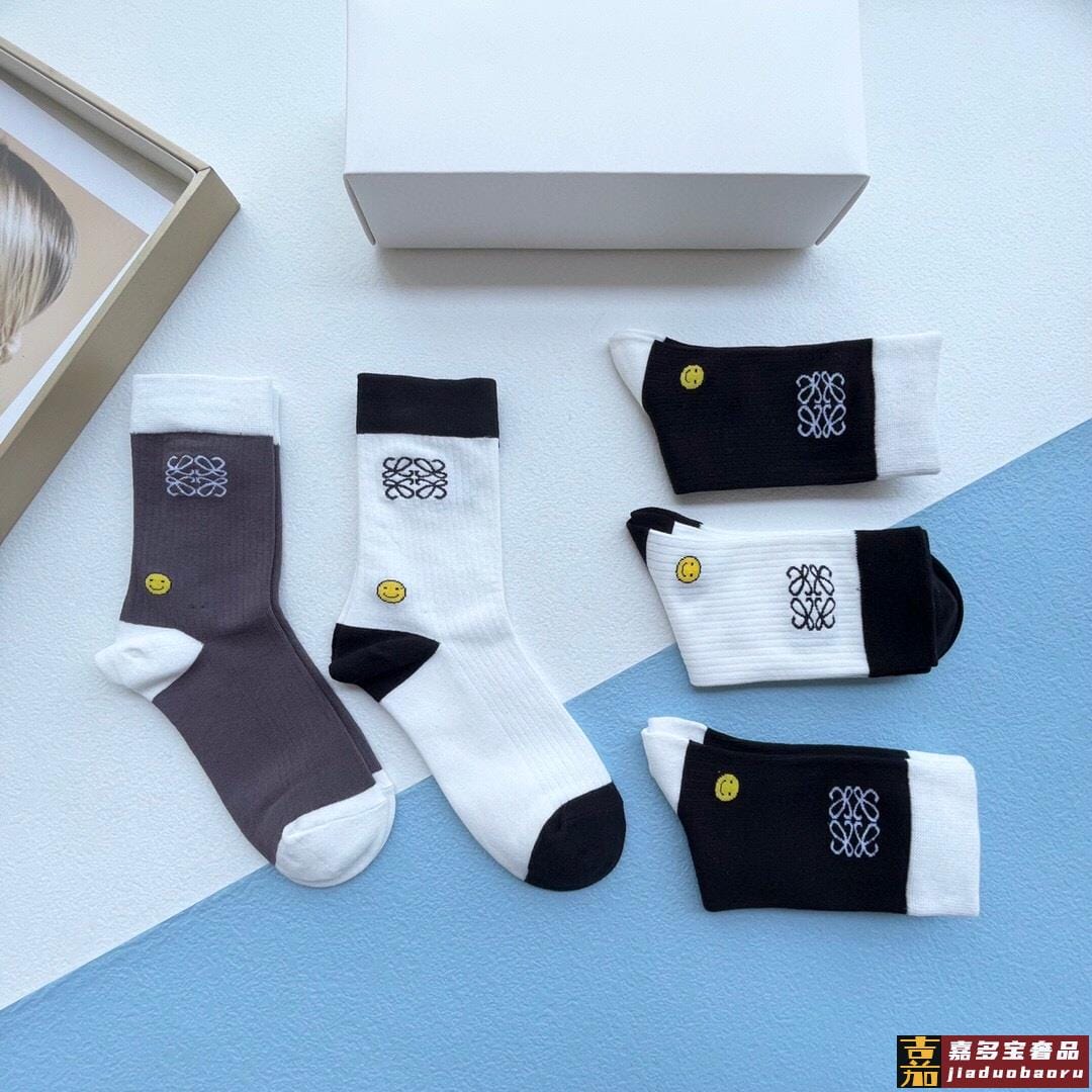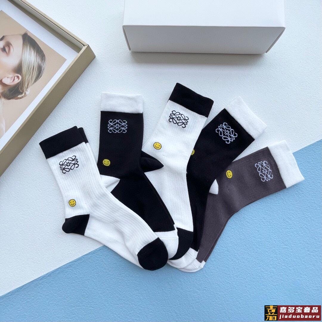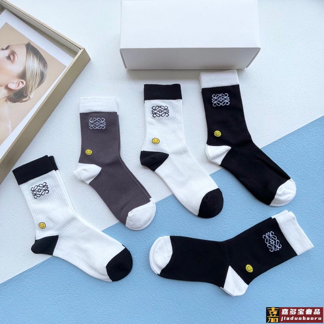 配包装一盒五双罗意威新品男女短款袜子袜身经典标志搭配极简素色
