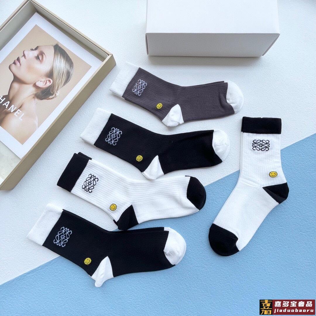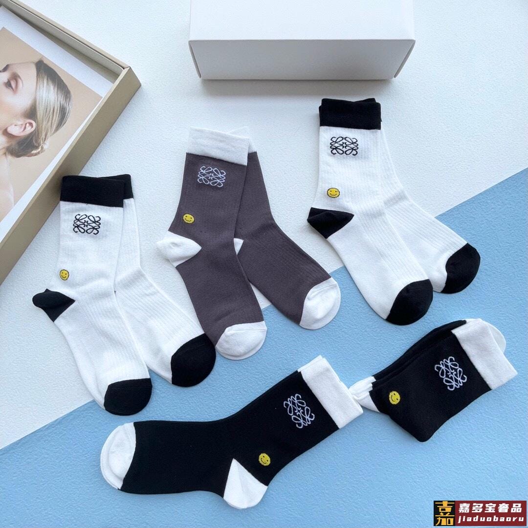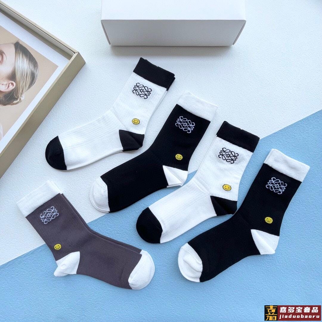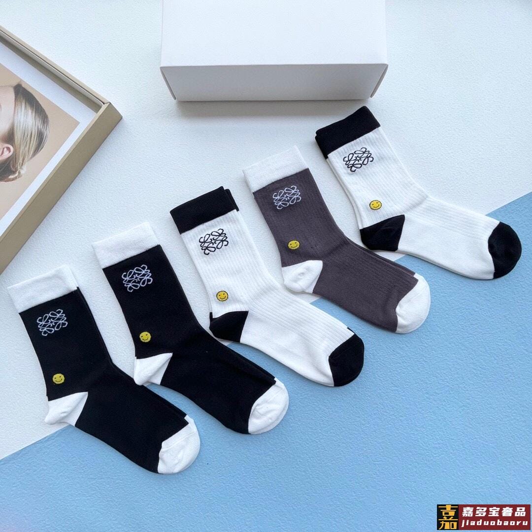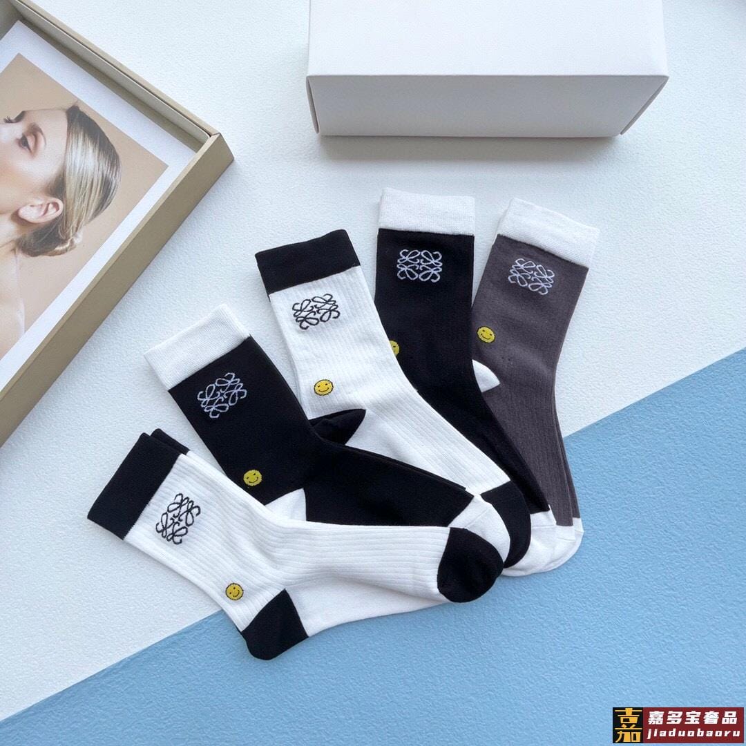 配包装一盒五双罗意威新品男女短款袜子袜身经典标志搭配极简素色