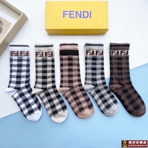 配包装一盒五双芬迪大新品秋冬款高筒袜子超级经典的双标志纯棉材