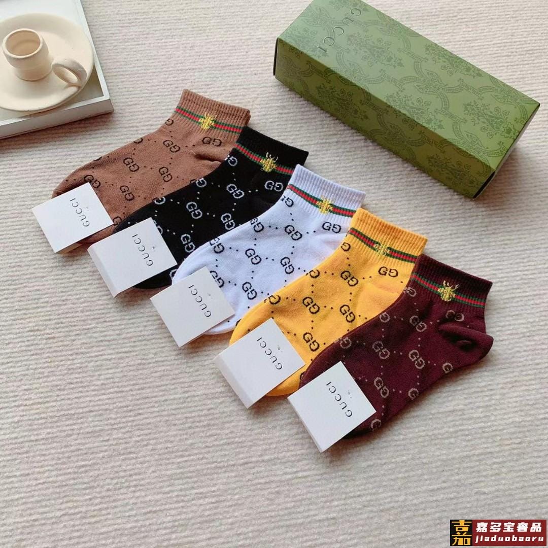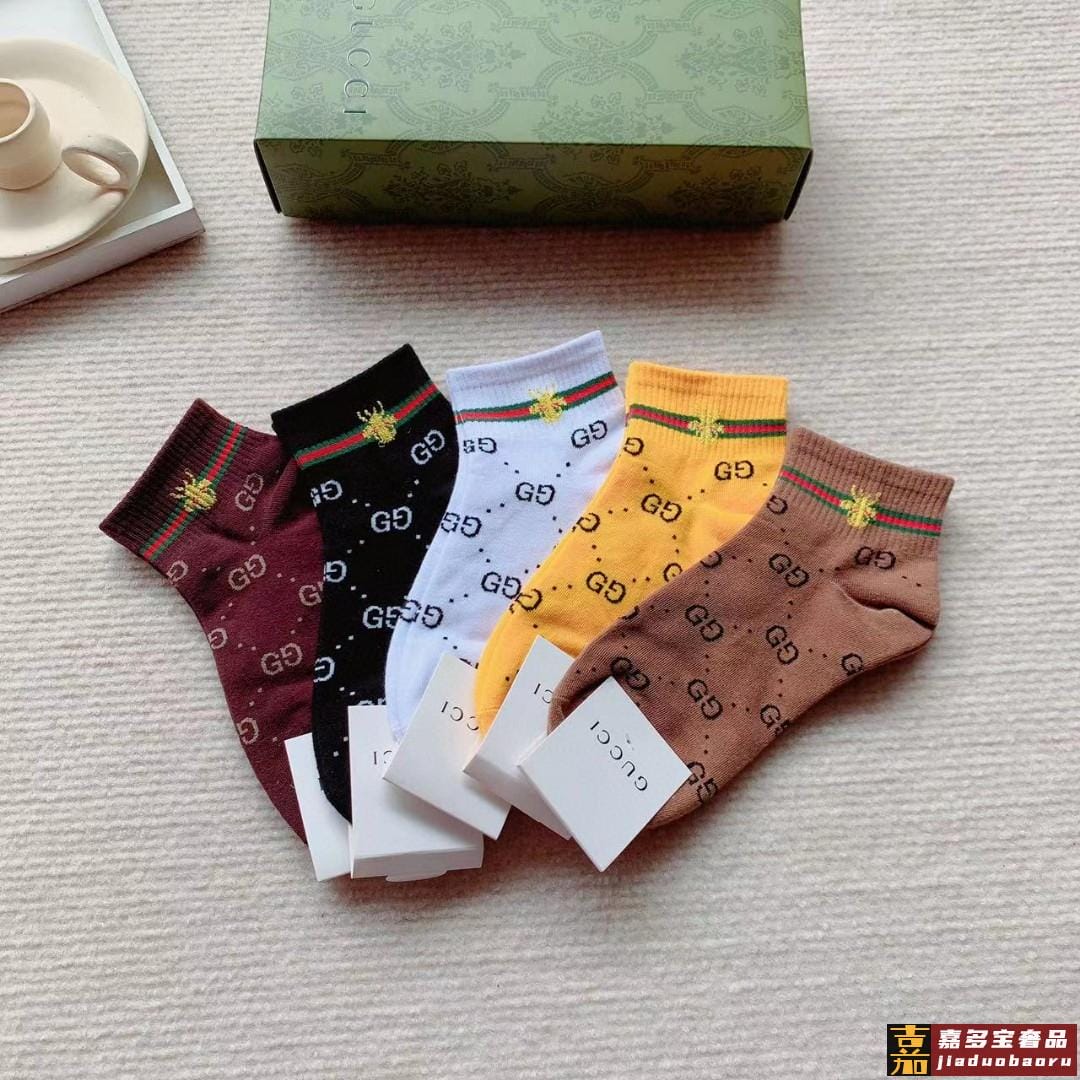 配包装一盒五双爆款古奇欧美大牌新品烫金中筒男女款袜子专柜同步