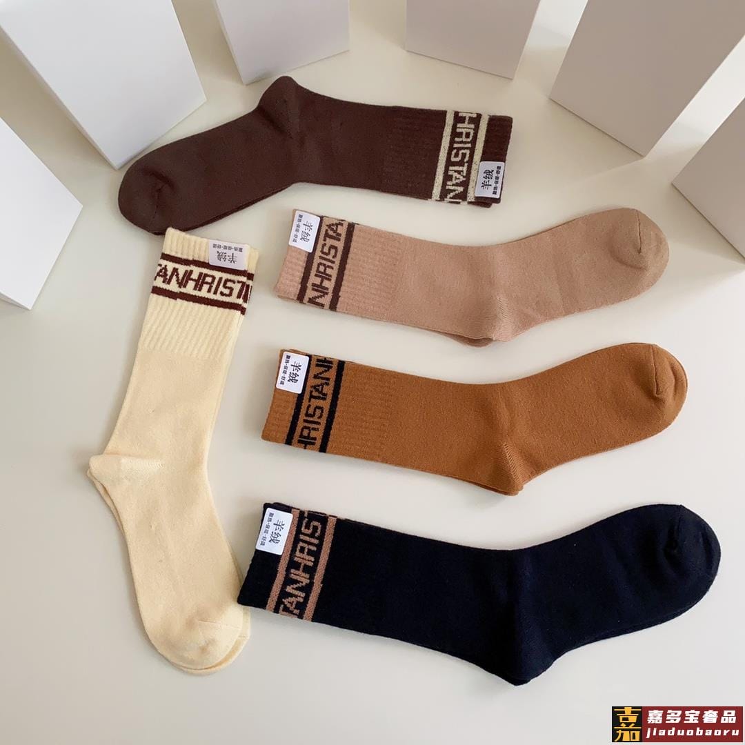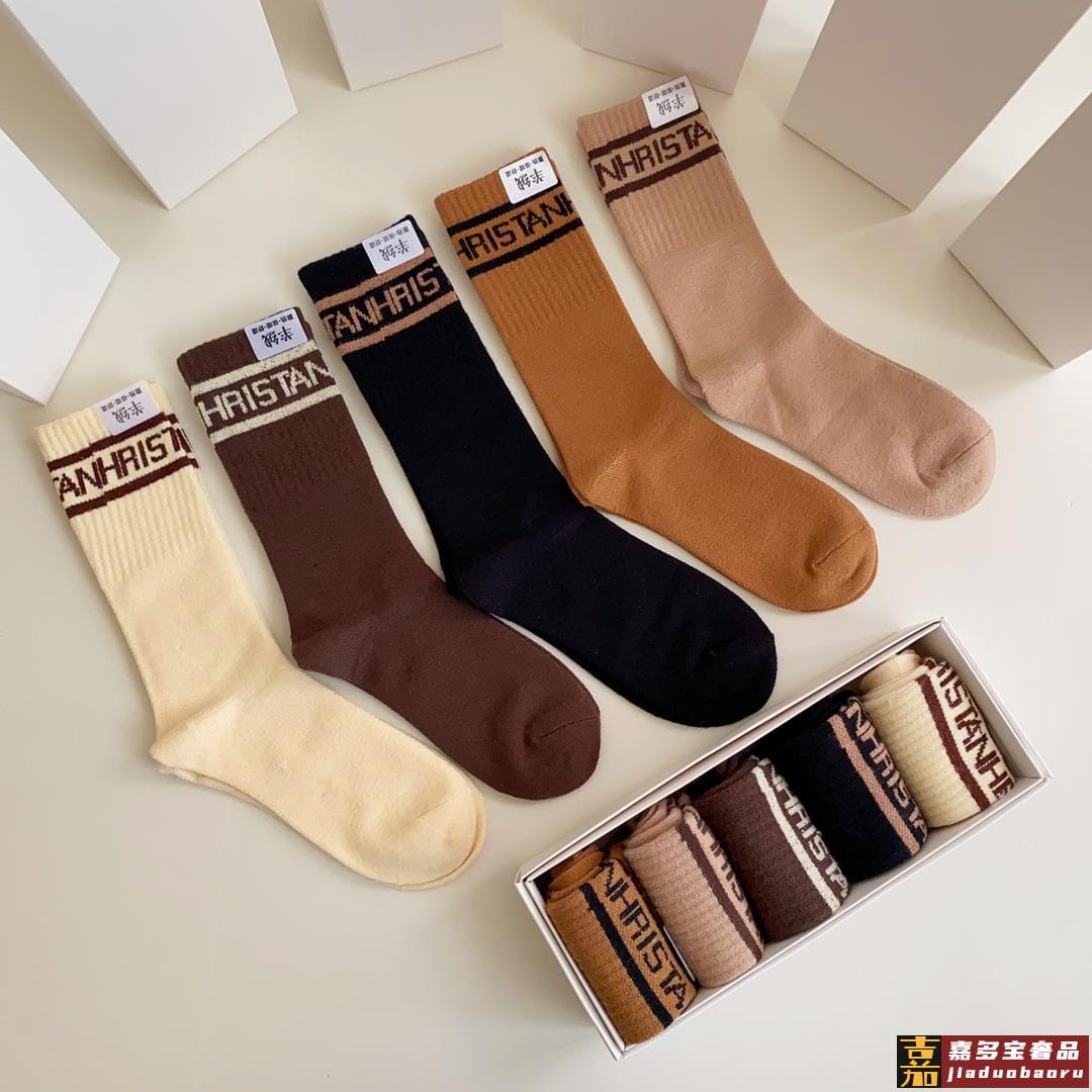 特配专柜包装潮牌爆火新款中长款羊绒堆堆袜袜子一盒五双专柜同步