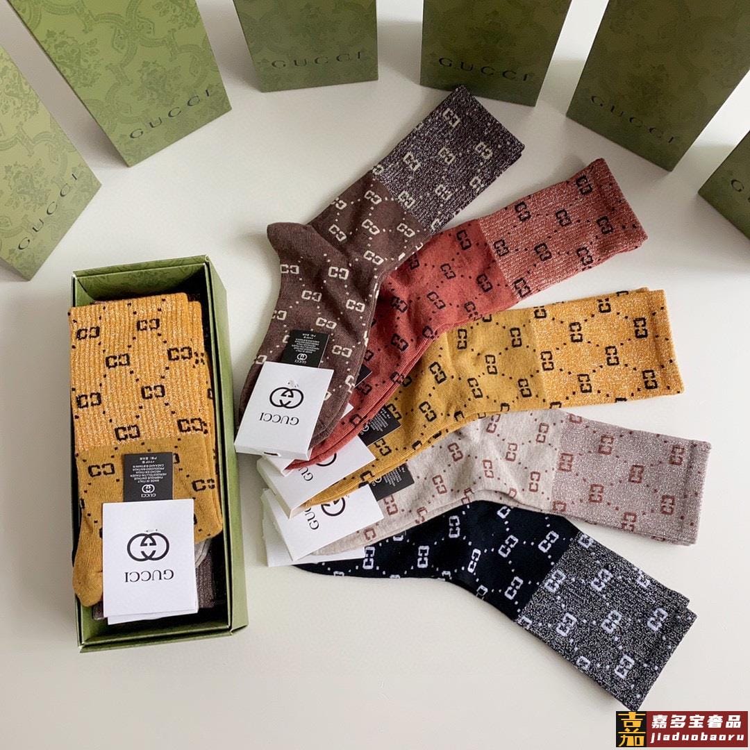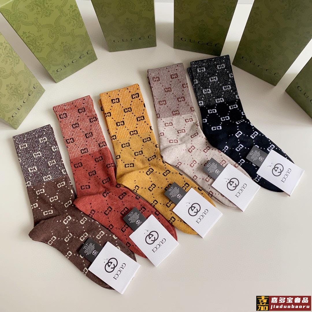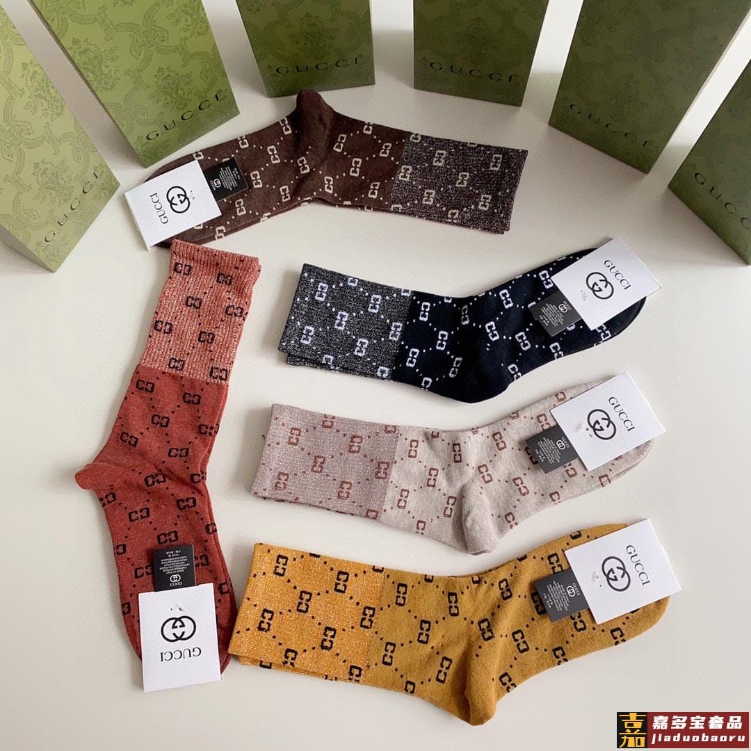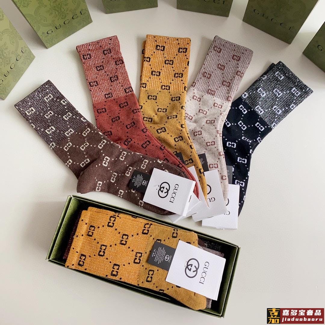 特配专柜包装古驰新款金丝中长款堆堆袜袜子一盒五双专柜同步筒袜