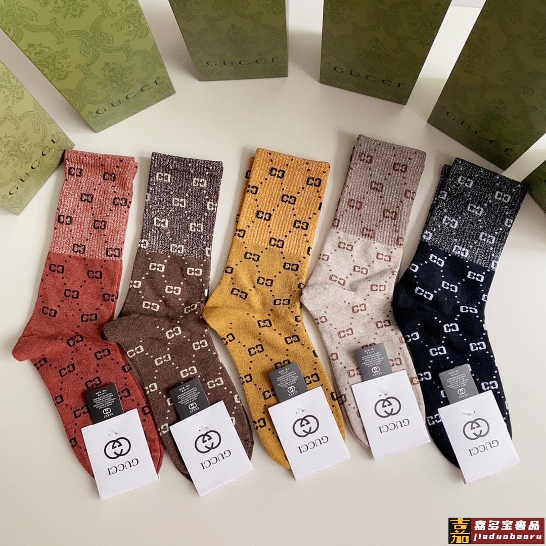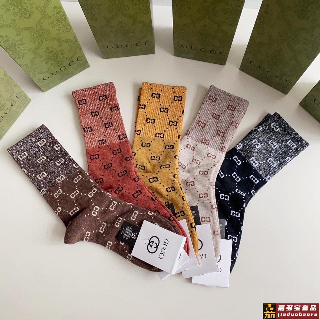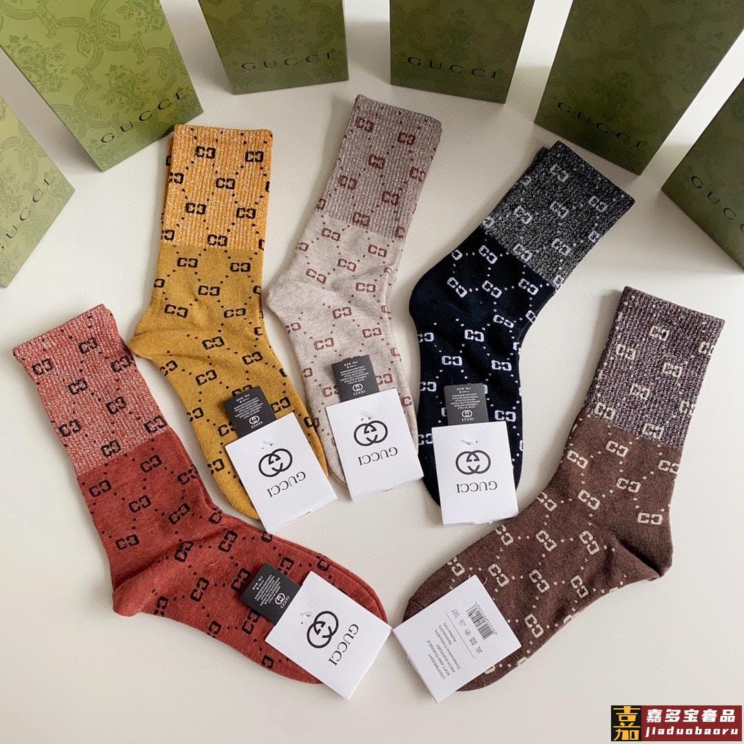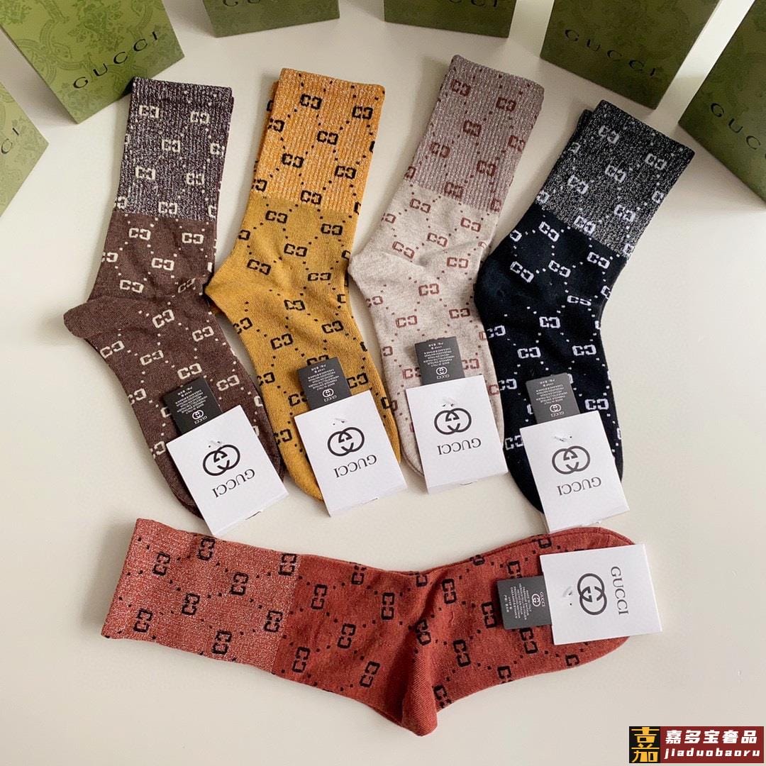 特配专柜包装古驰新款金丝中长款堆堆袜袜子一盒五双专柜同步筒袜