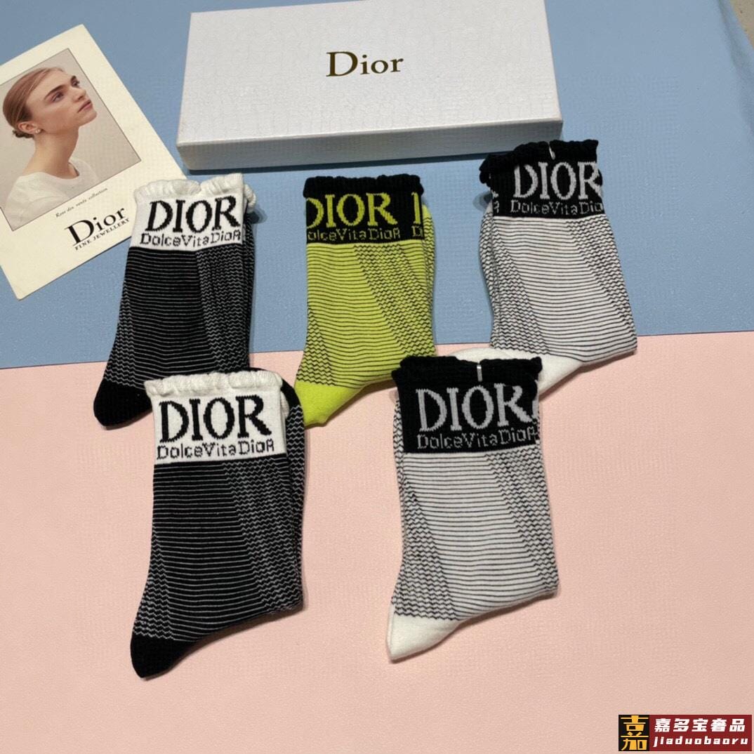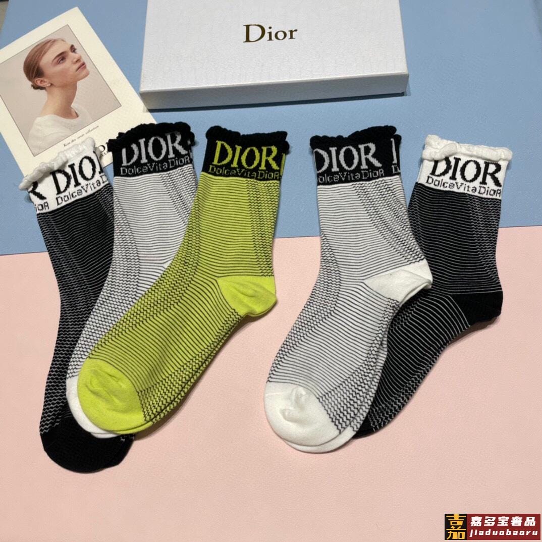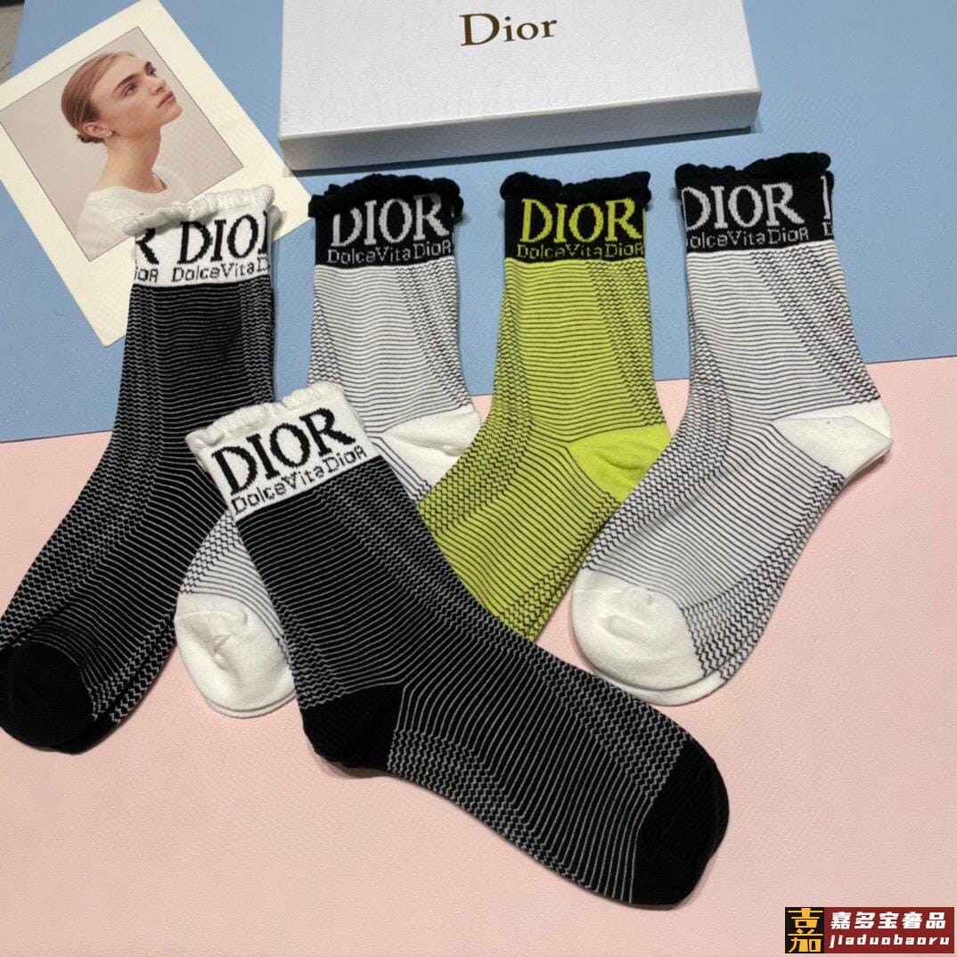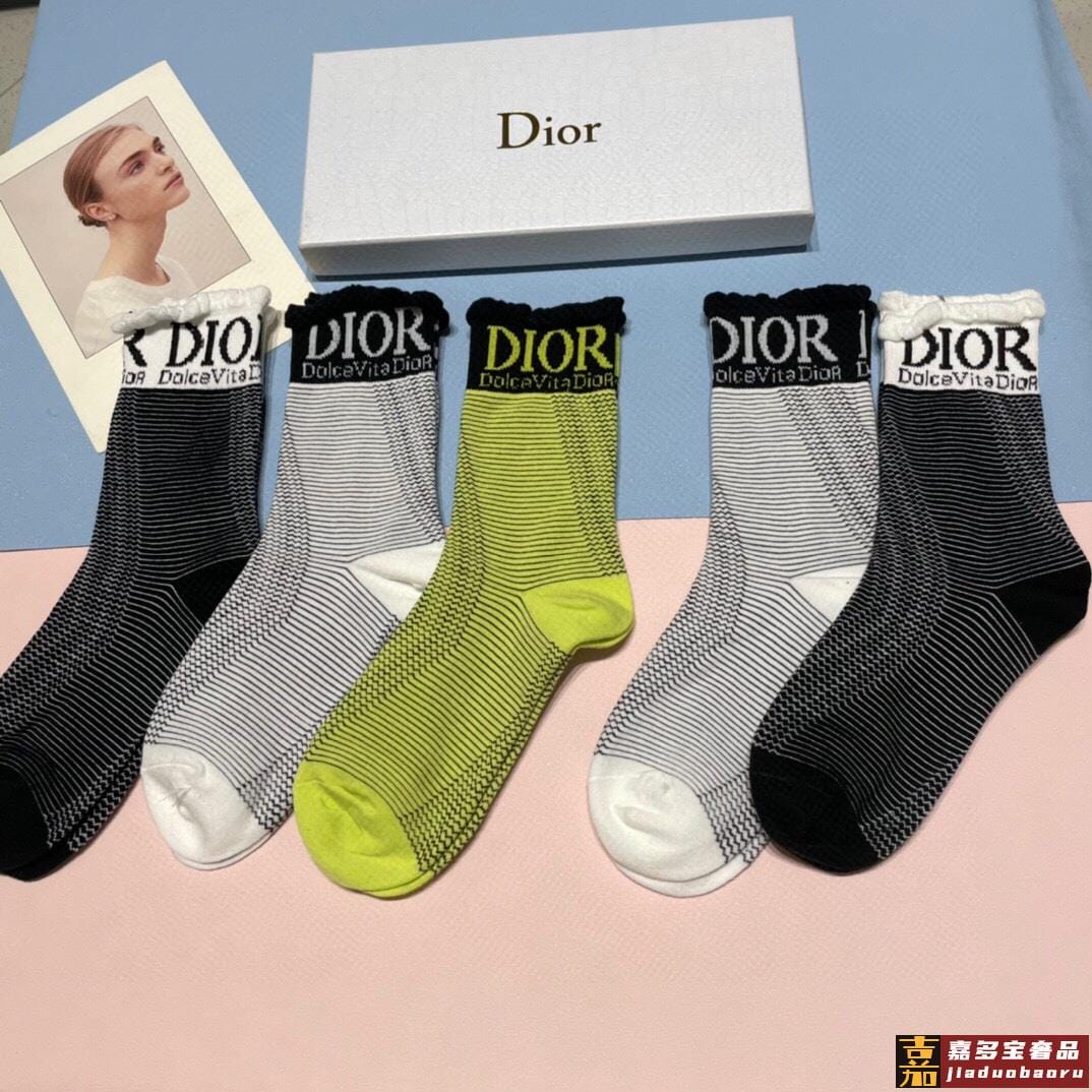 一盒双迪奥新款中筒袜子纯棉面料火爆图案专柜同步中短筒袜子大牌