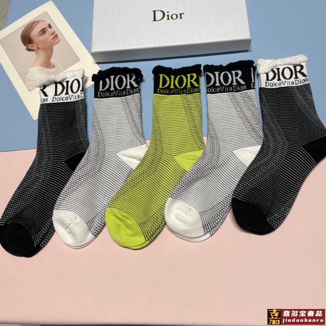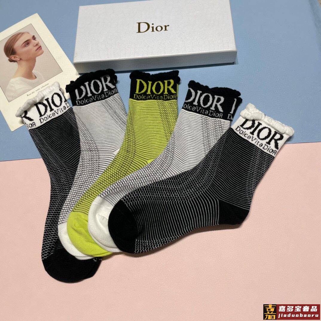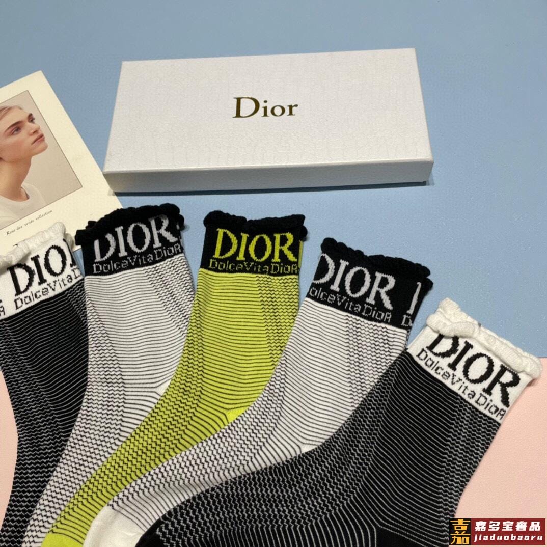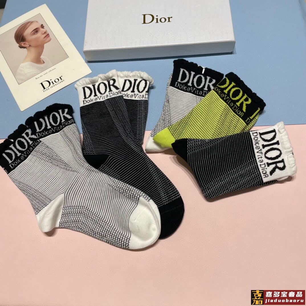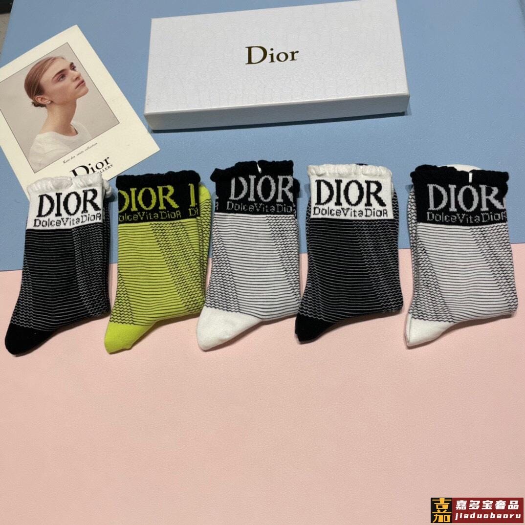 一盒双迪奥新款中筒袜子纯棉面料火爆图案专柜同步中短筒袜子大牌