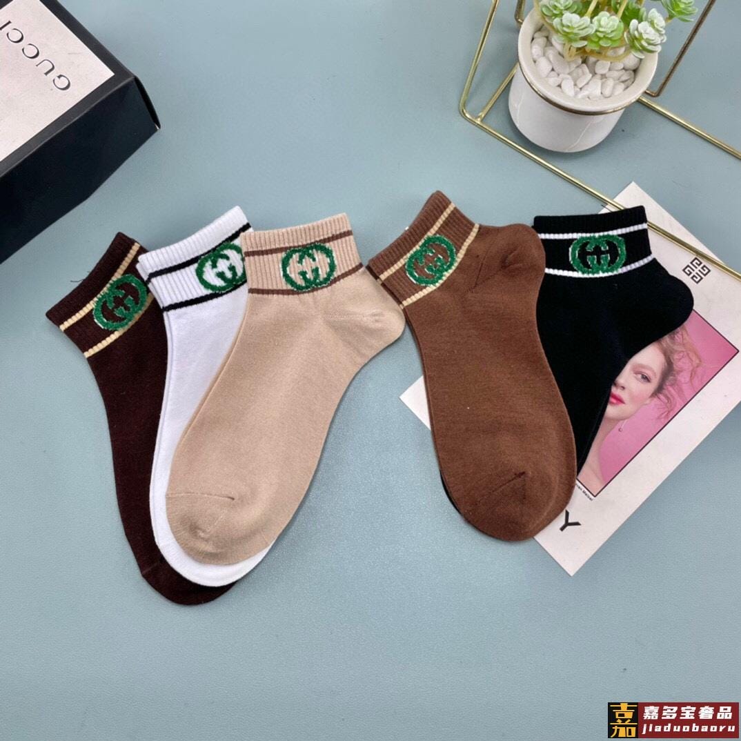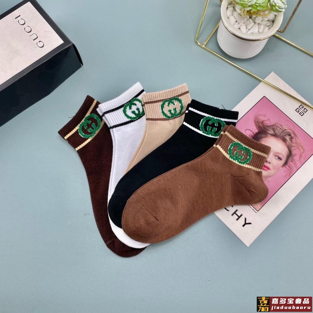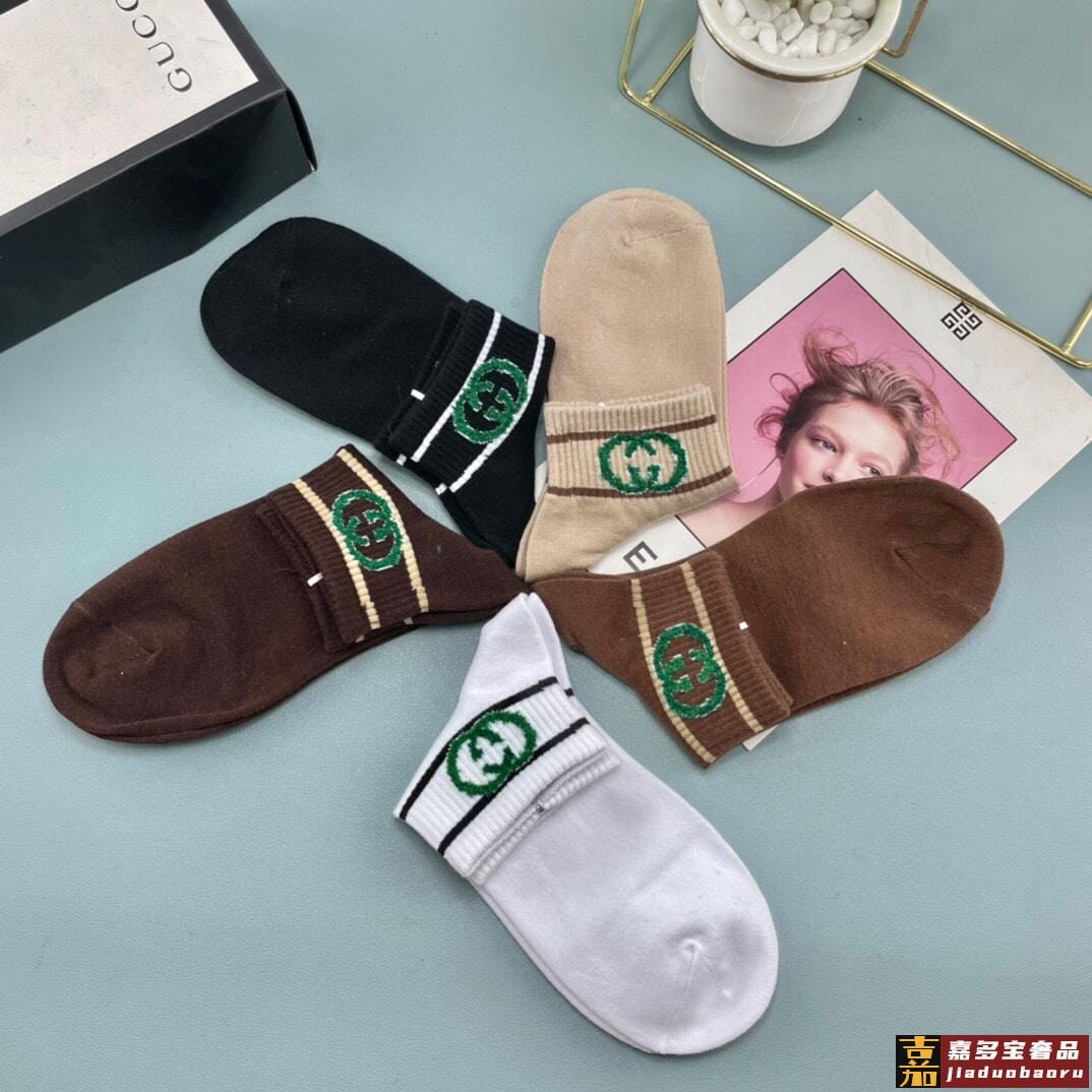 配送包装一盒五双古奇烫印专柜新款男女款高筒袜子专柜同步上新超