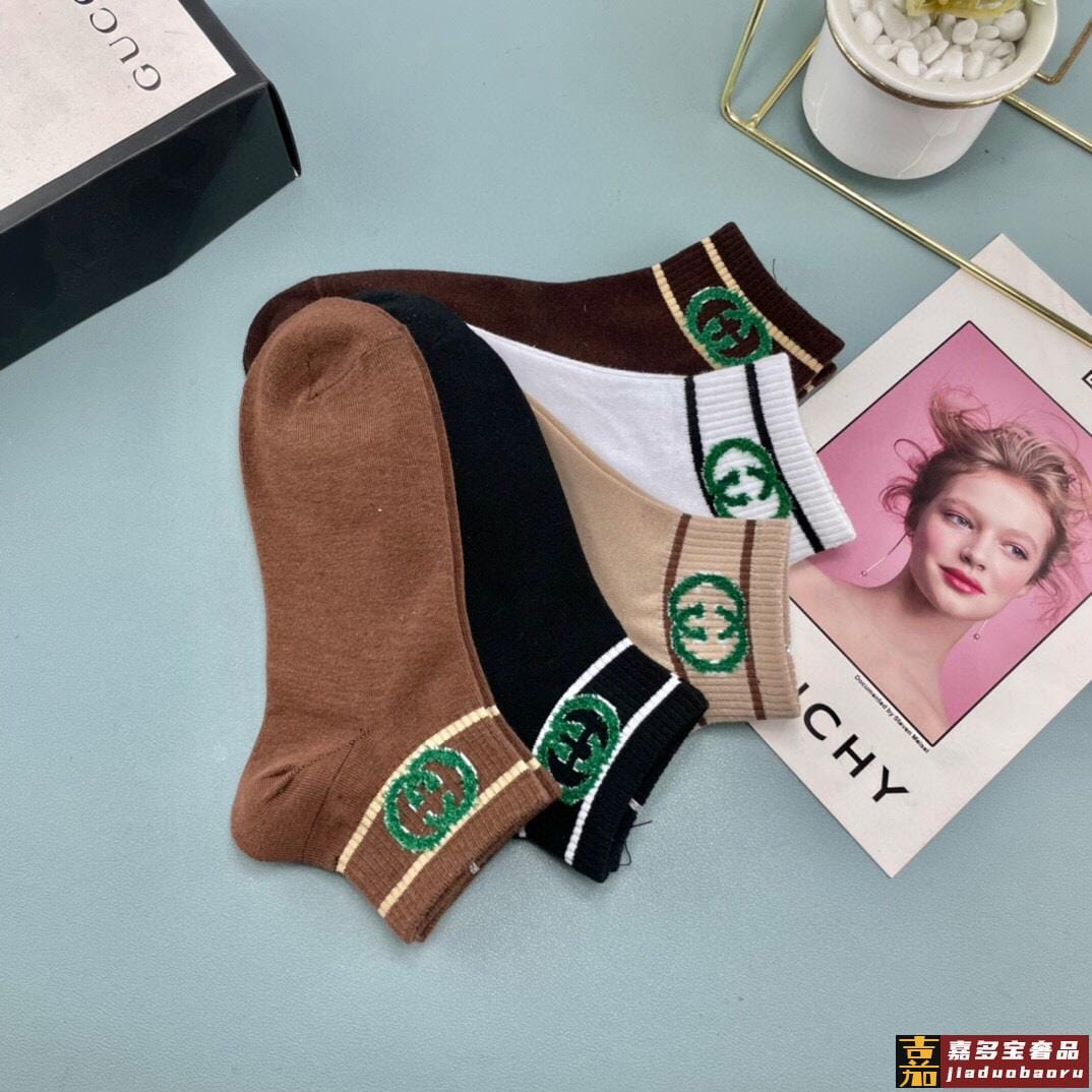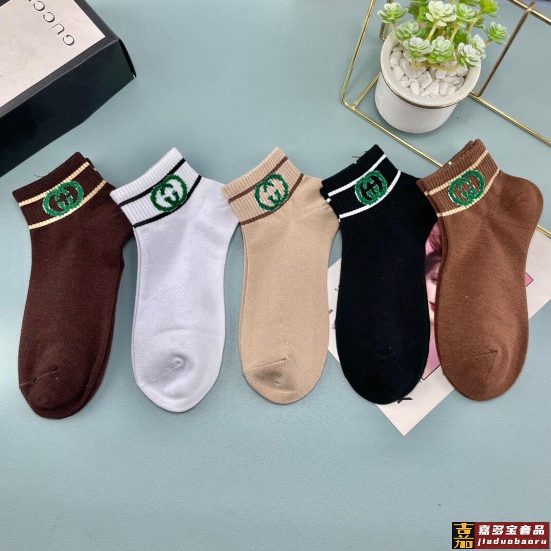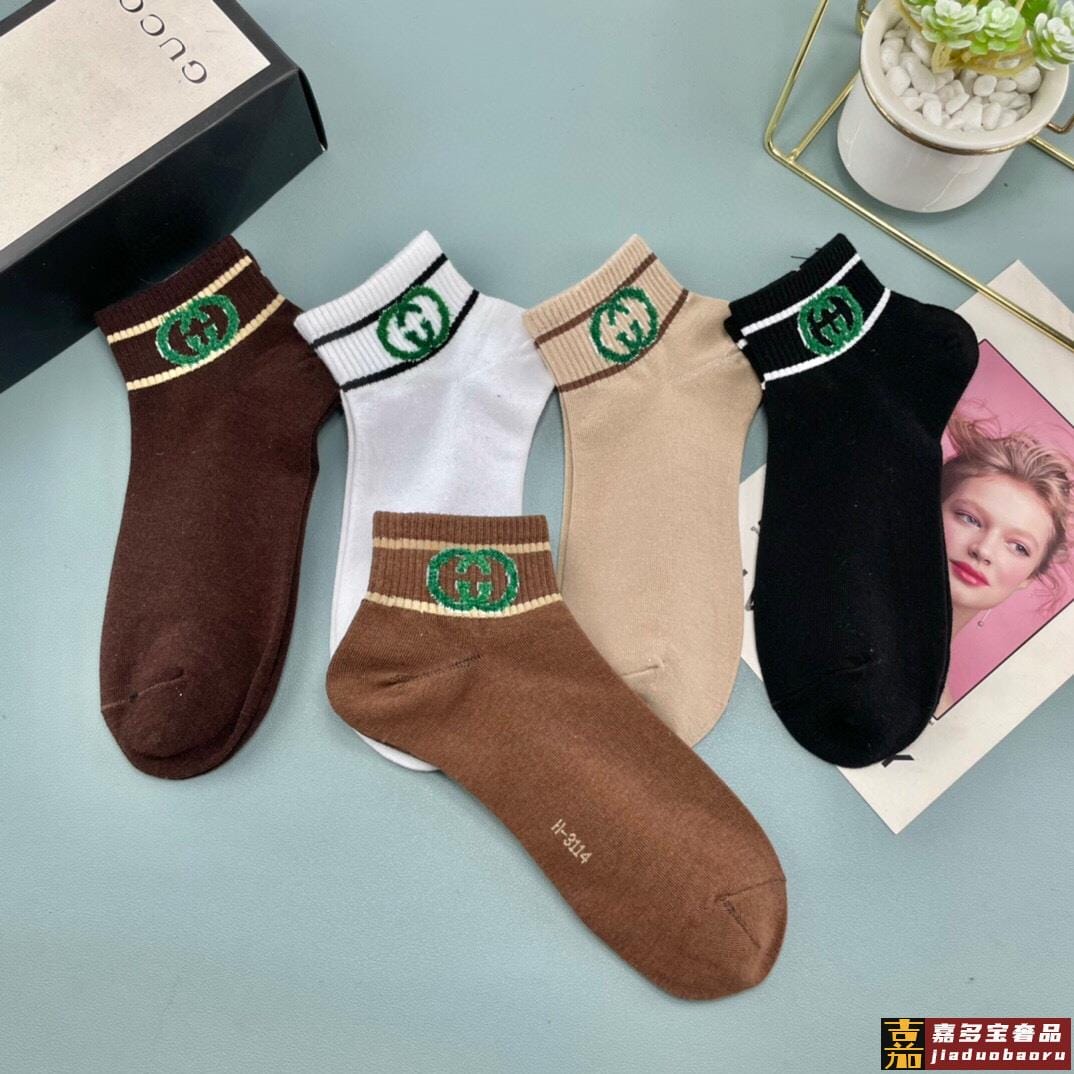 配送包装一盒五双古奇烫印专柜新款男女款高筒袜子专柜同步上新超