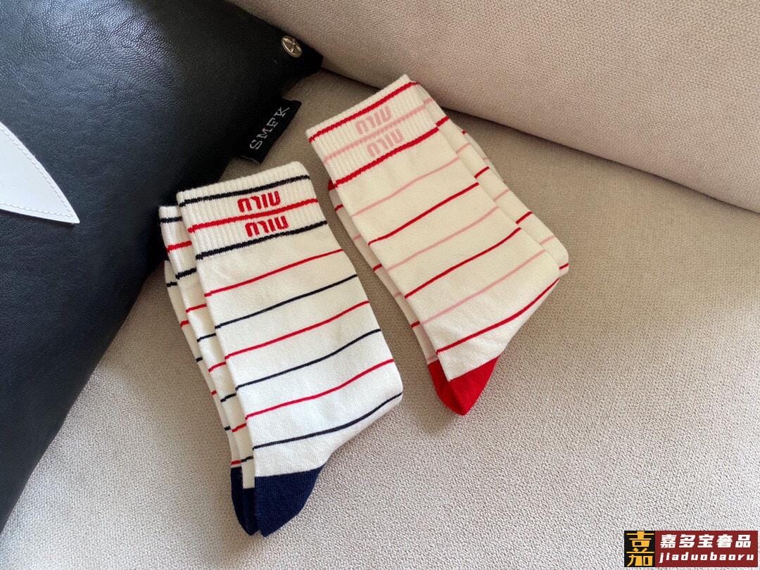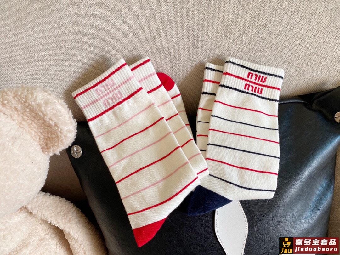 配包装一盒二双缪缪新款经典中长款堆堆袜袜子专柜同步筒款袜子大