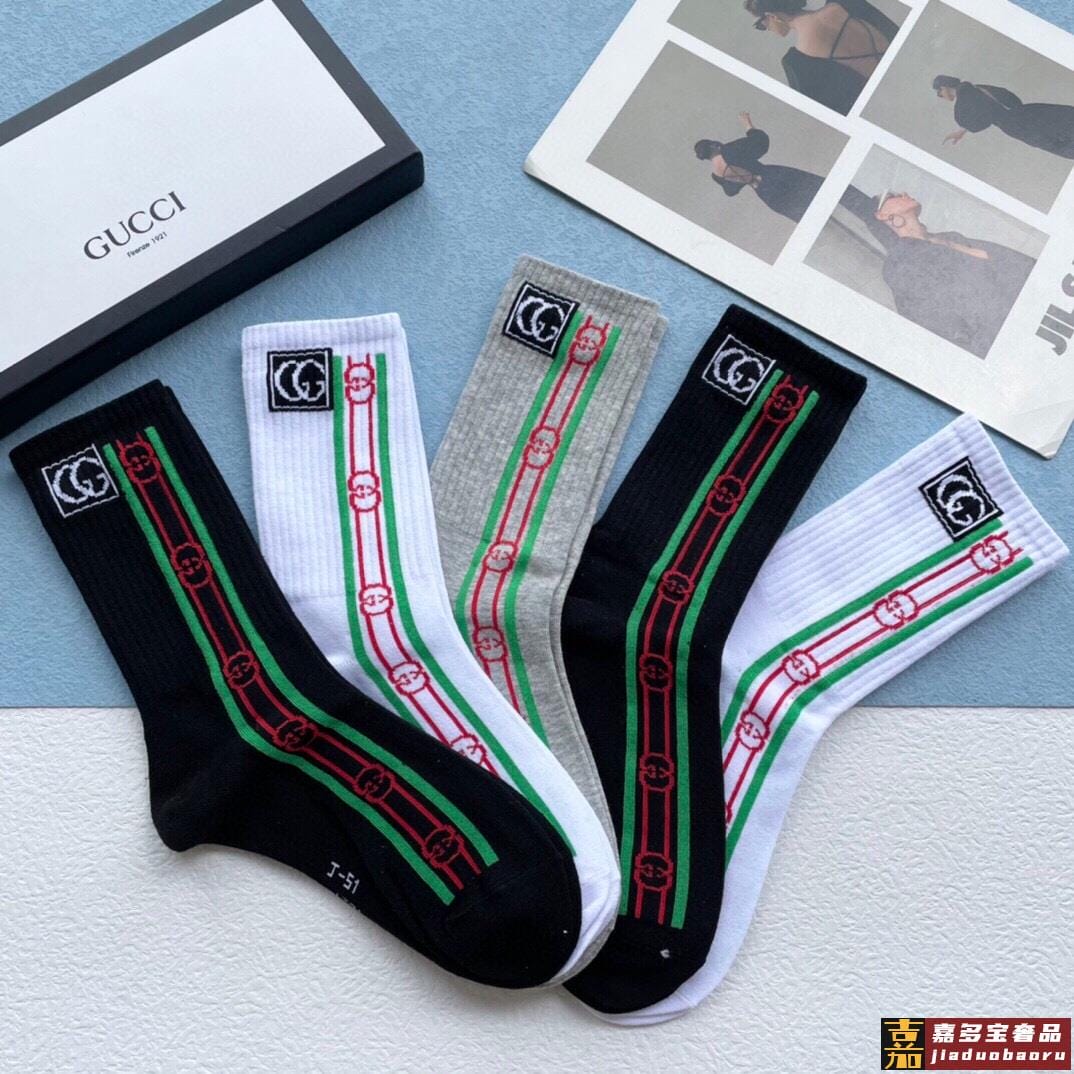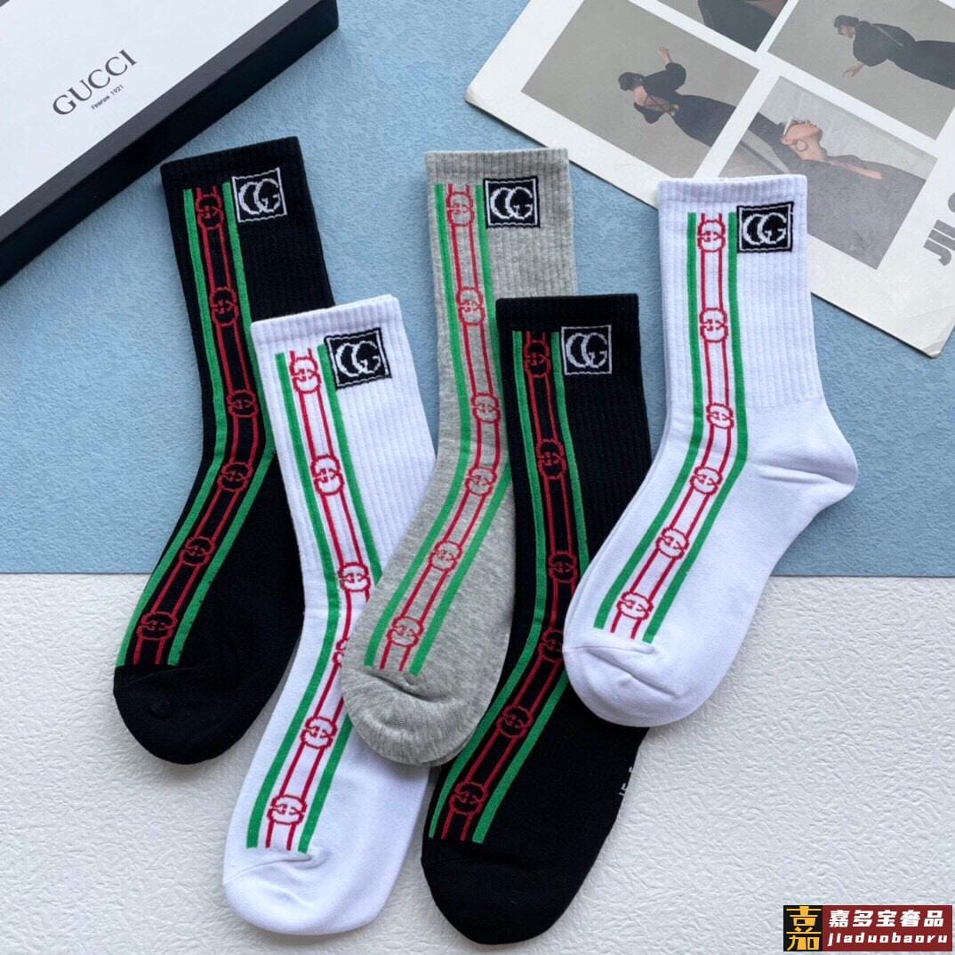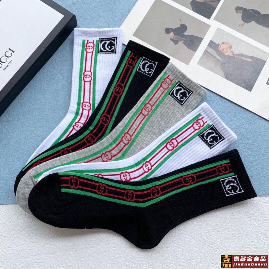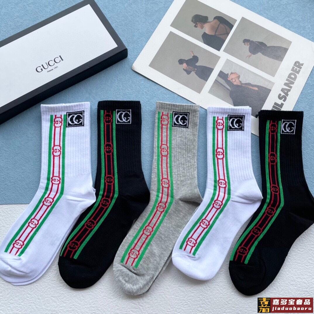 配送包装一盒五双古奇烫印专柜新款男女款高筒袜子专柜同步上新超