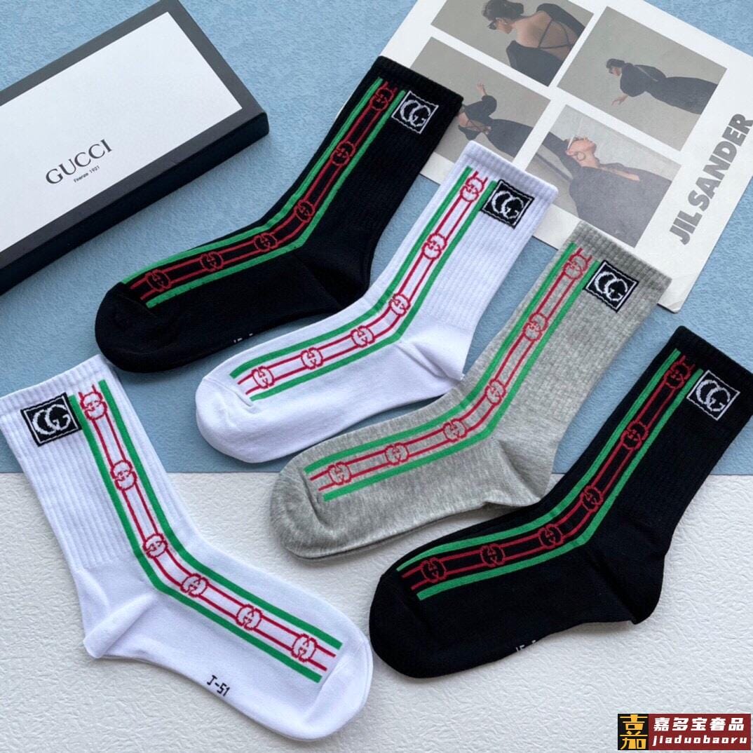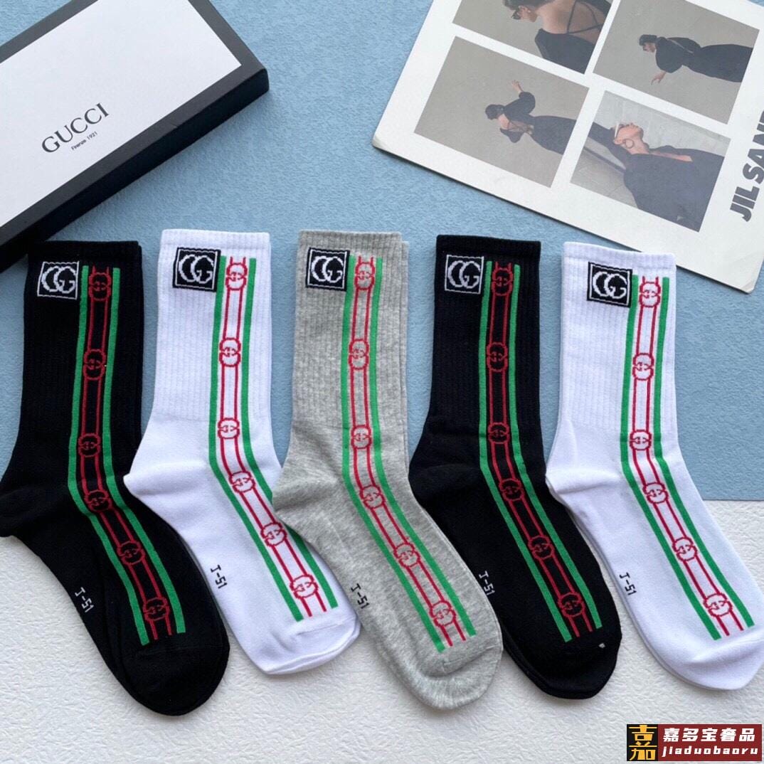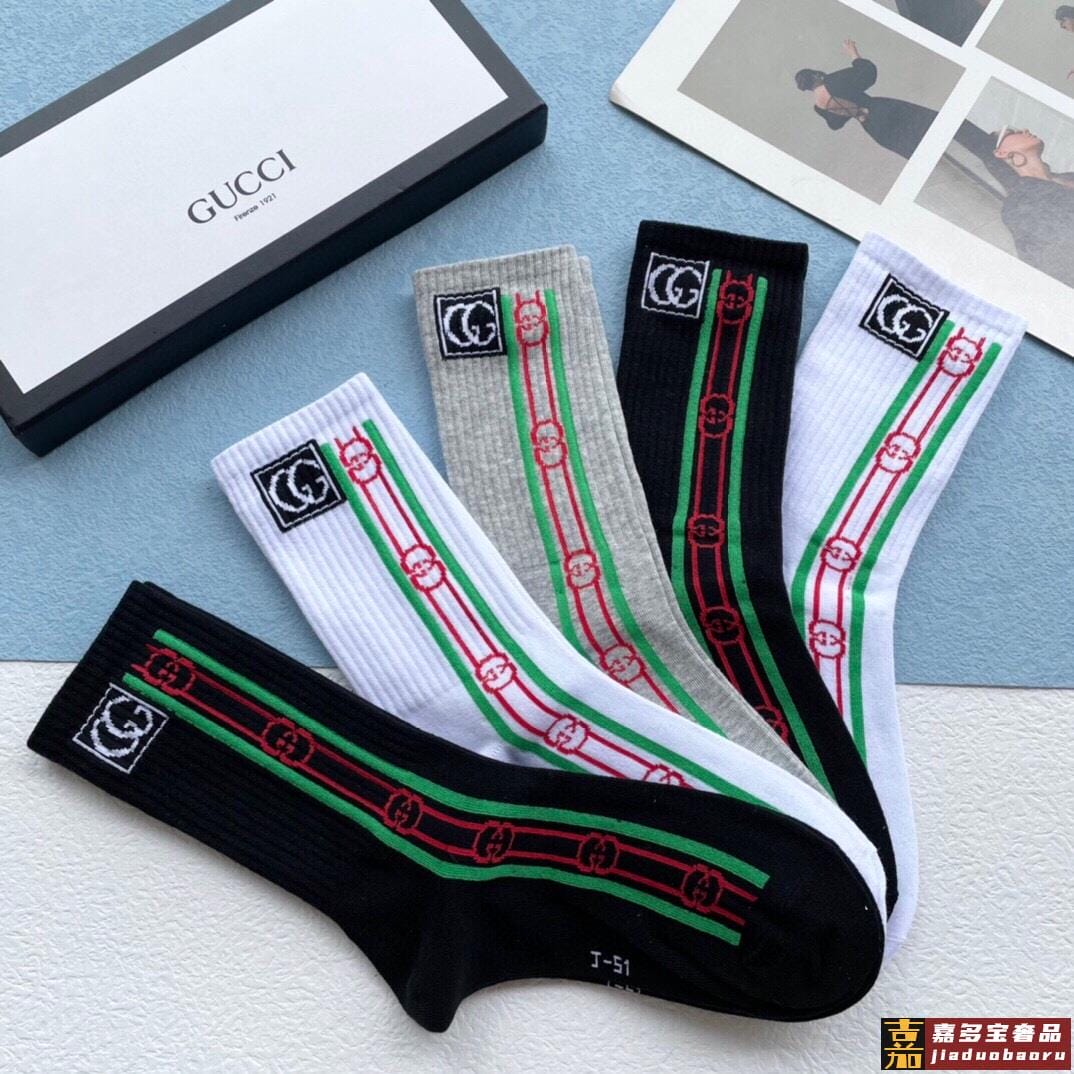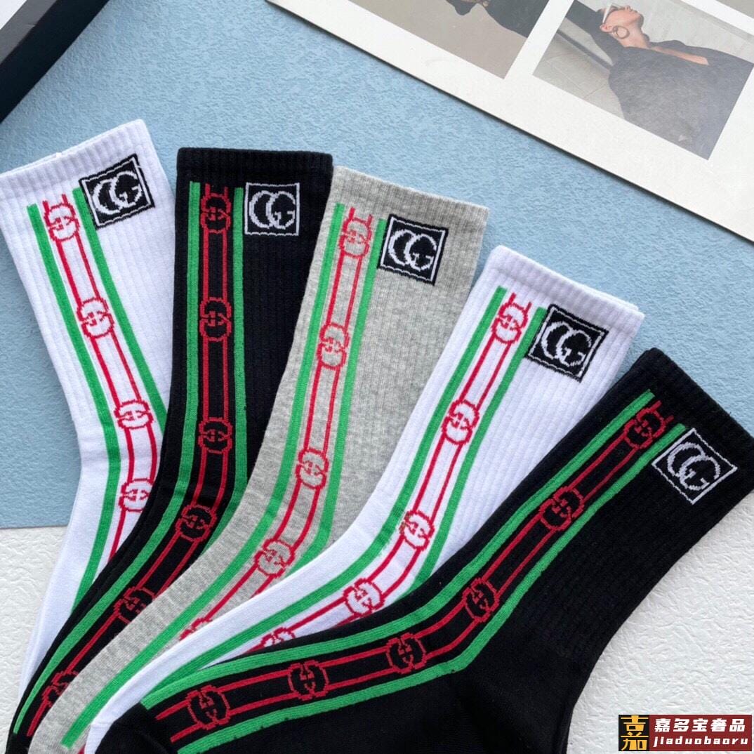 配送包装一盒五双古奇烫印专柜新款男女款高筒袜子专柜同步上新超