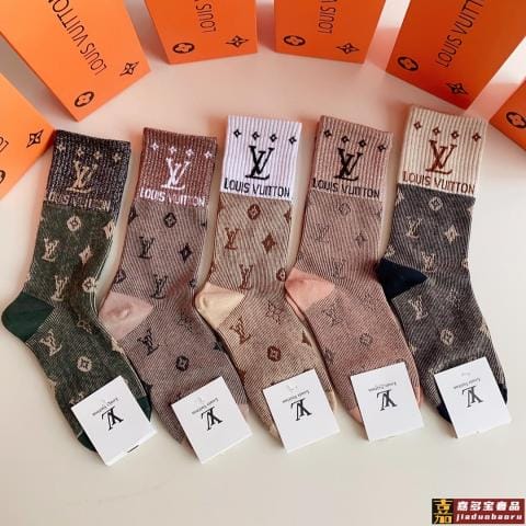 特配专柜包装路易威登新款中长款金丝堆堆袜袜子一盒五双专柜同步