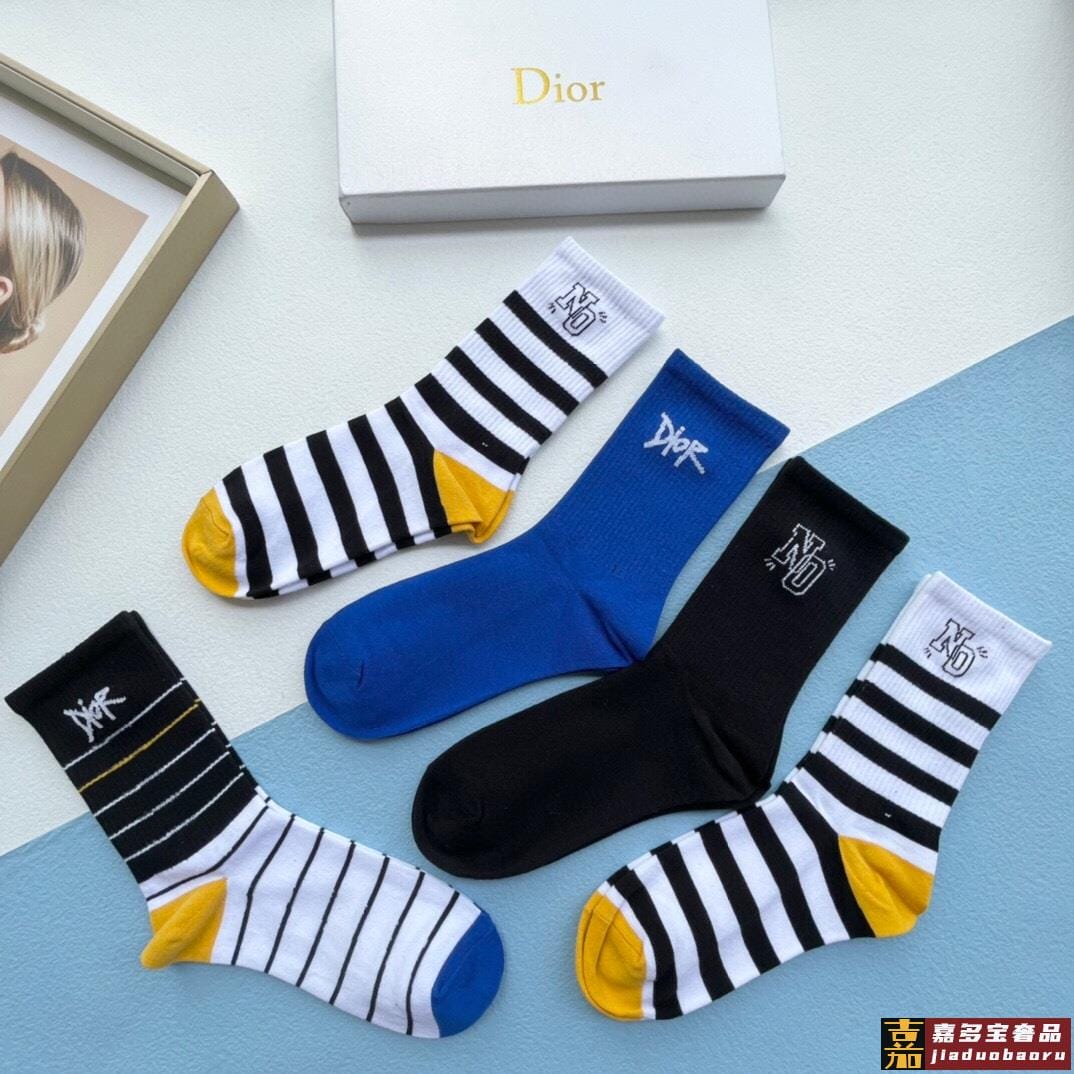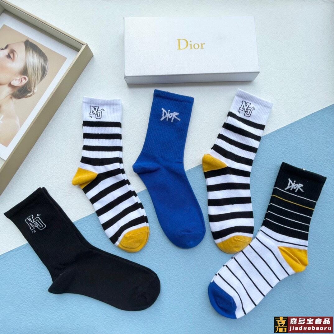 配包装一盒五双欧美大牌迪奥好看到爆炸欧美大牌高筒袜男款潮人必