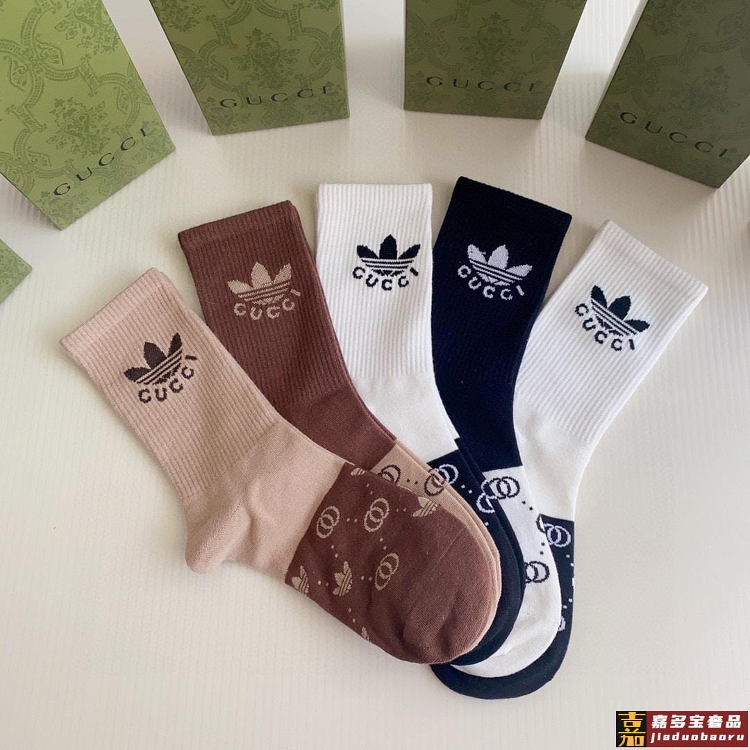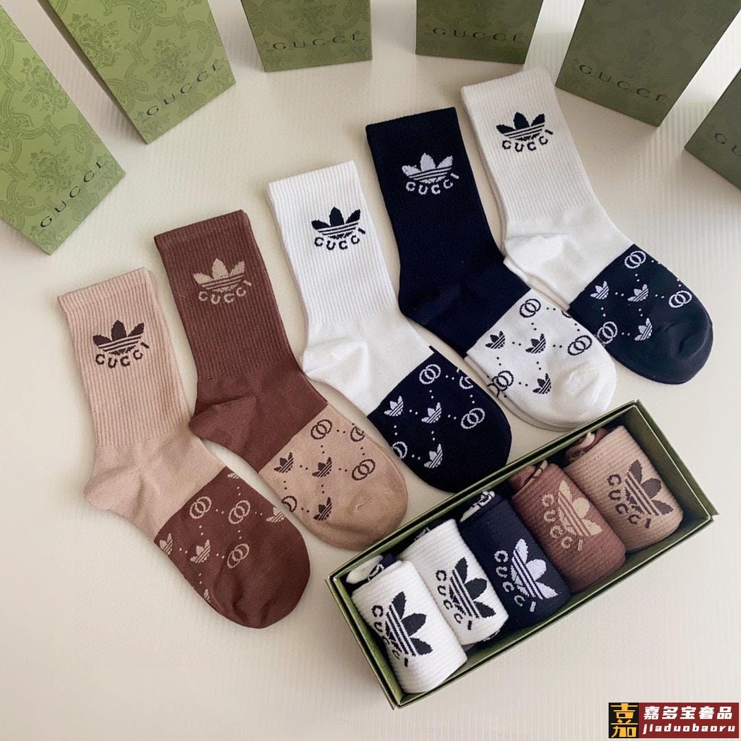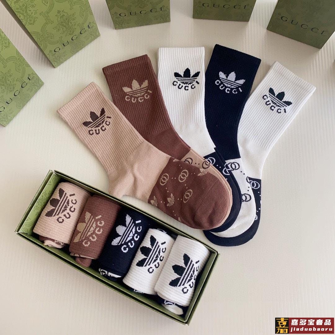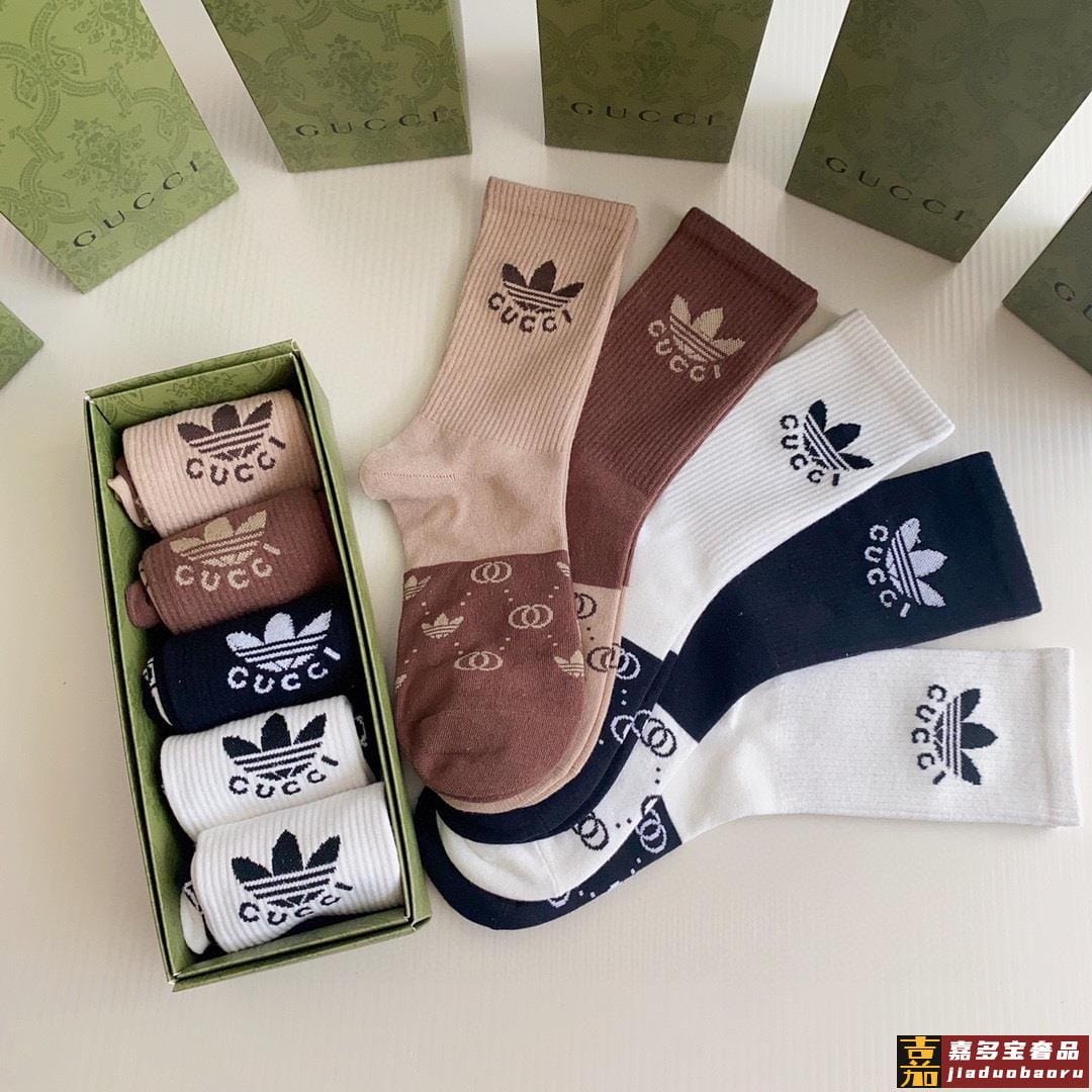 特配专柜包装古驰三角草联名款新款中长款堆堆袜袜子一盒五双专柜