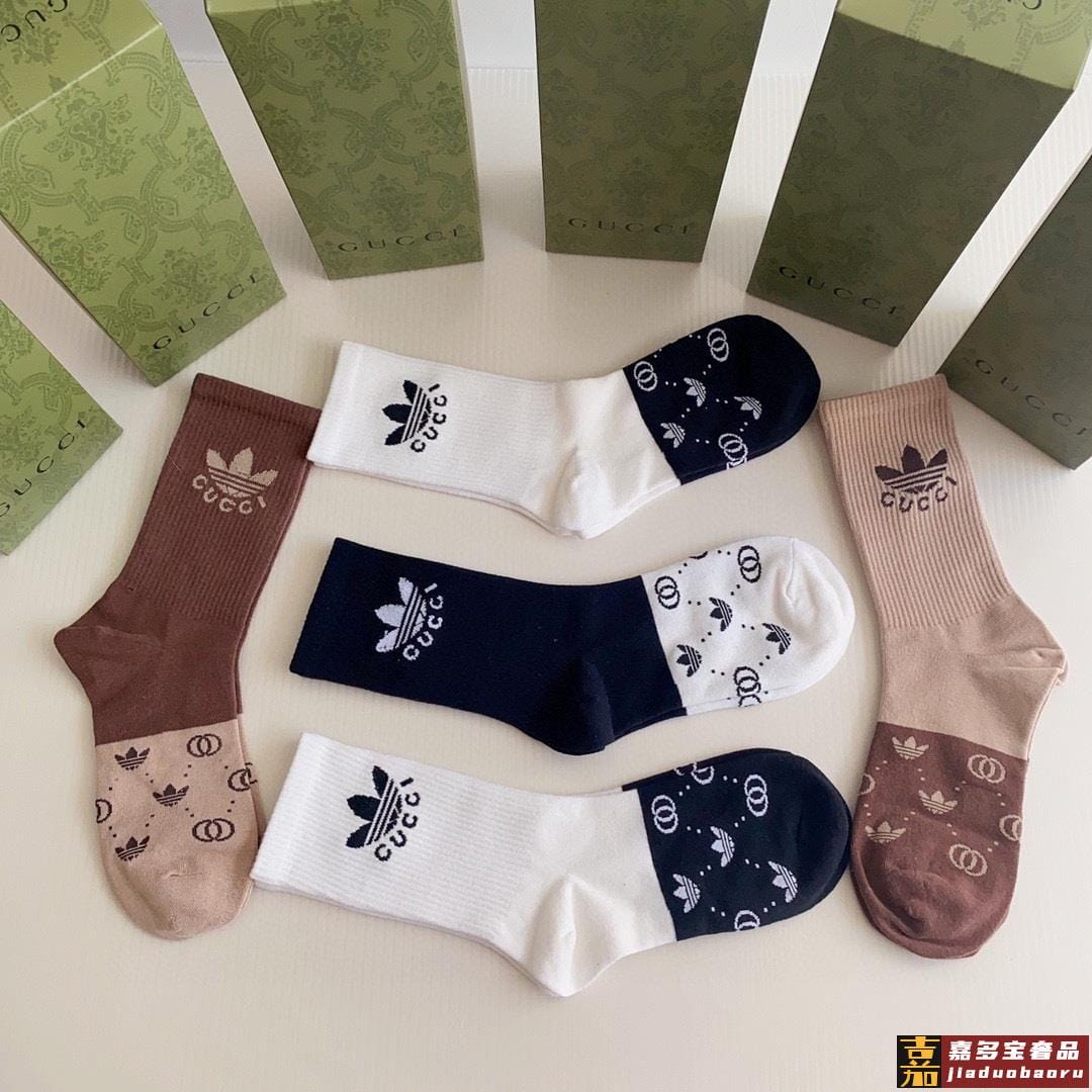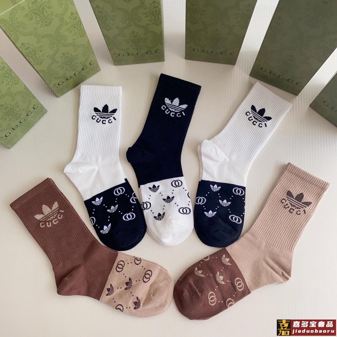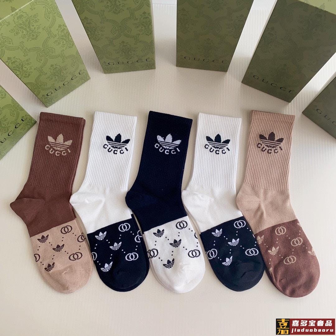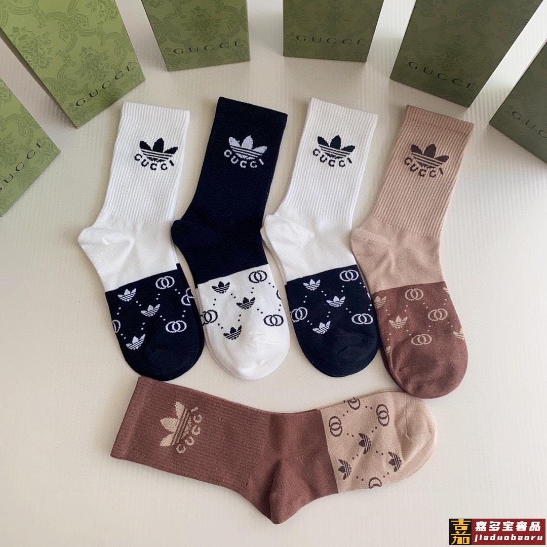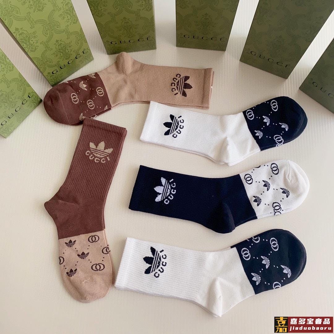 特配专柜包装古驰三角草联名款新款中长款堆堆袜袜子一盒五双专柜