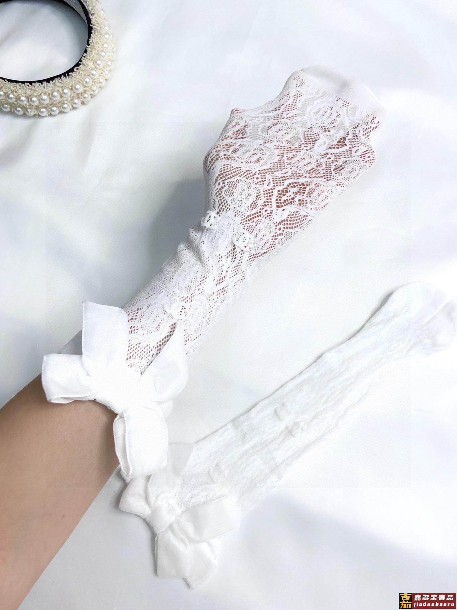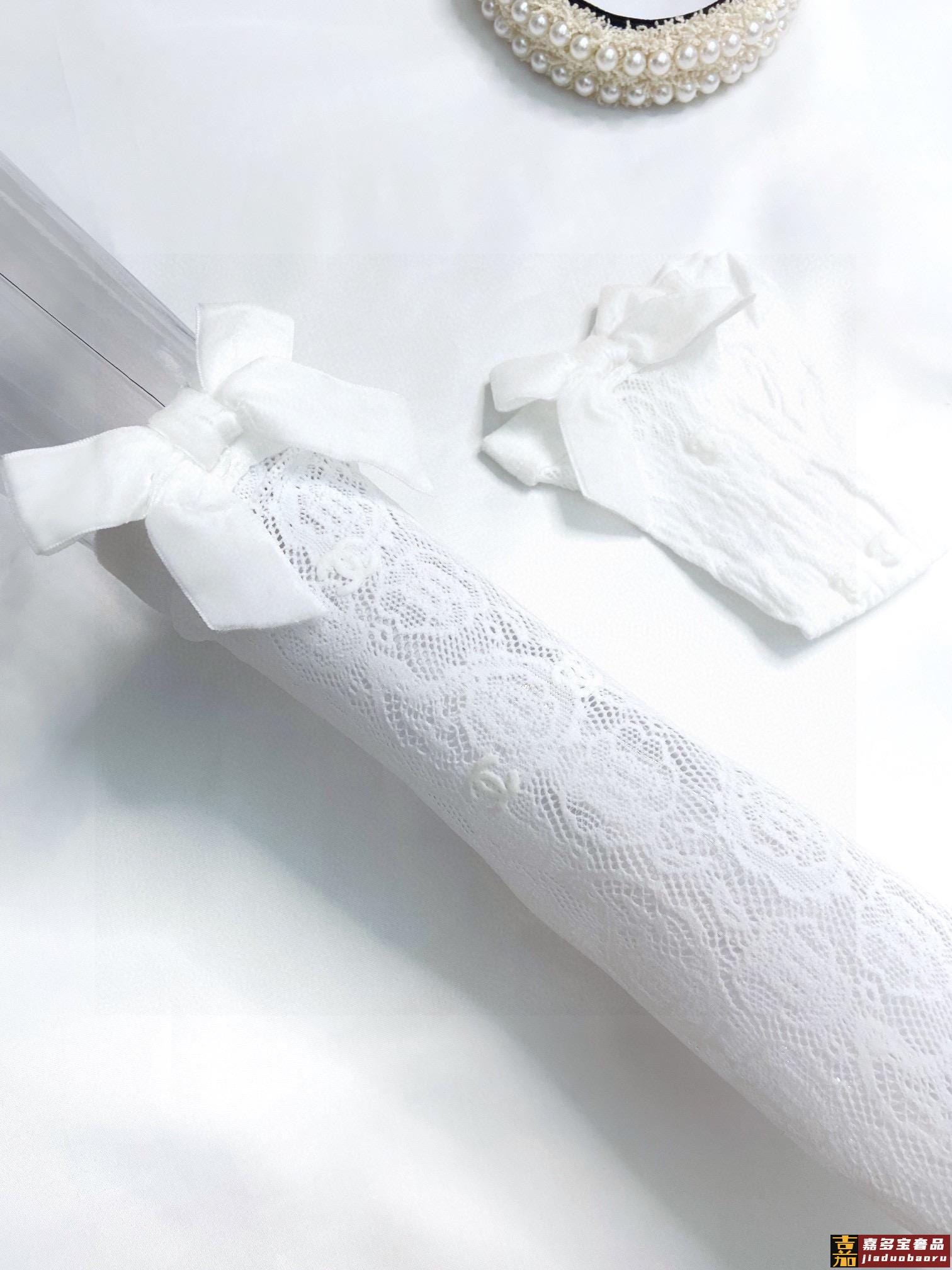 配包装现货黑白两色一盒一双香奈儿双蕾丝蝴蝶结中筒袜爆款专柜在