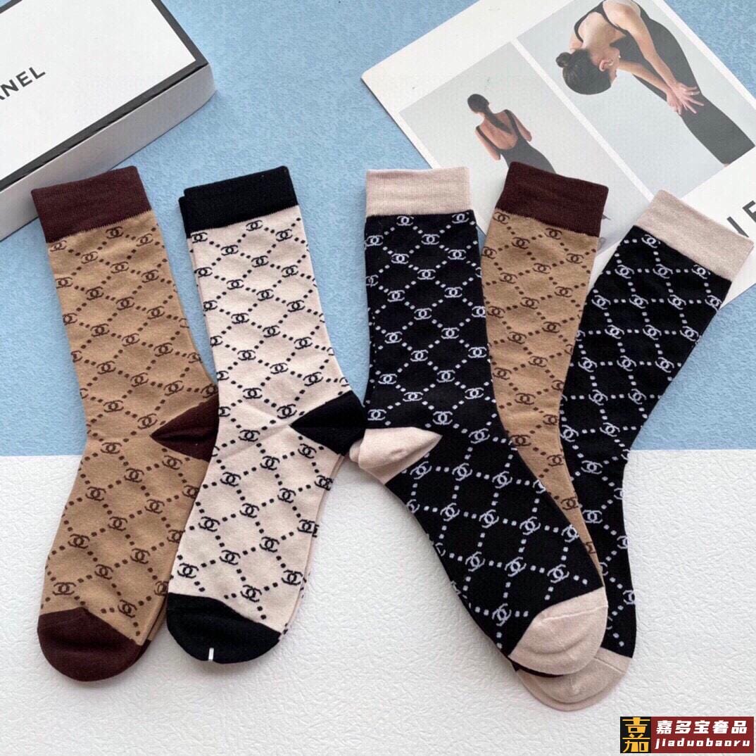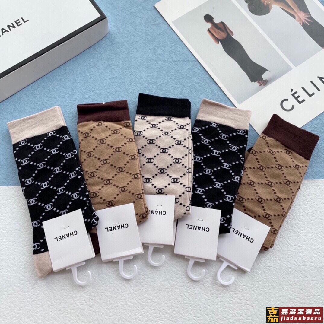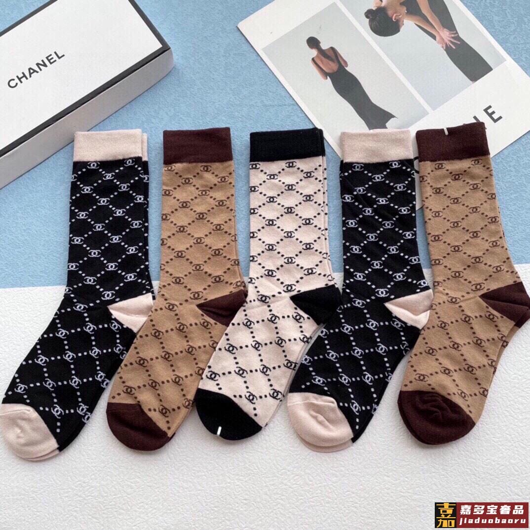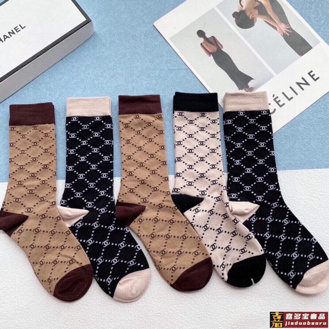 配包装一盒五双香奈儿爆款卡高筒袜高版本好看到爆炸欧美大牌高筒