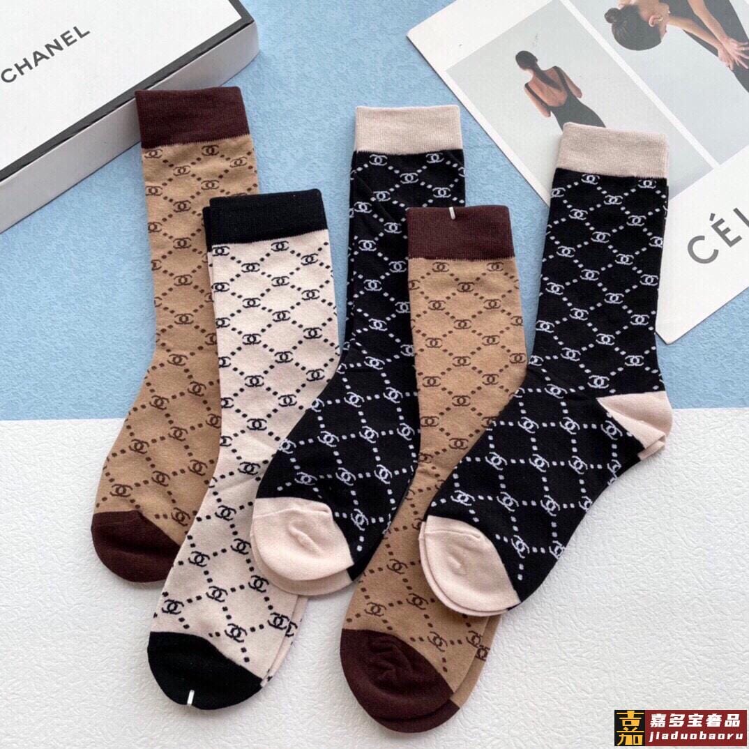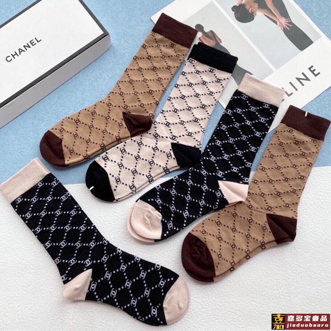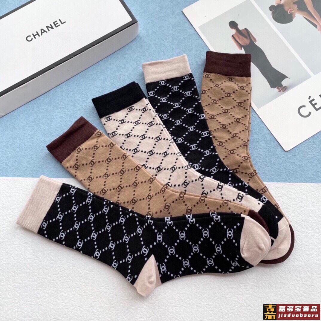 香奈儿香奶奶家新品女款袜子一盒四双纯棉材质柔软舒适透气罗口烫