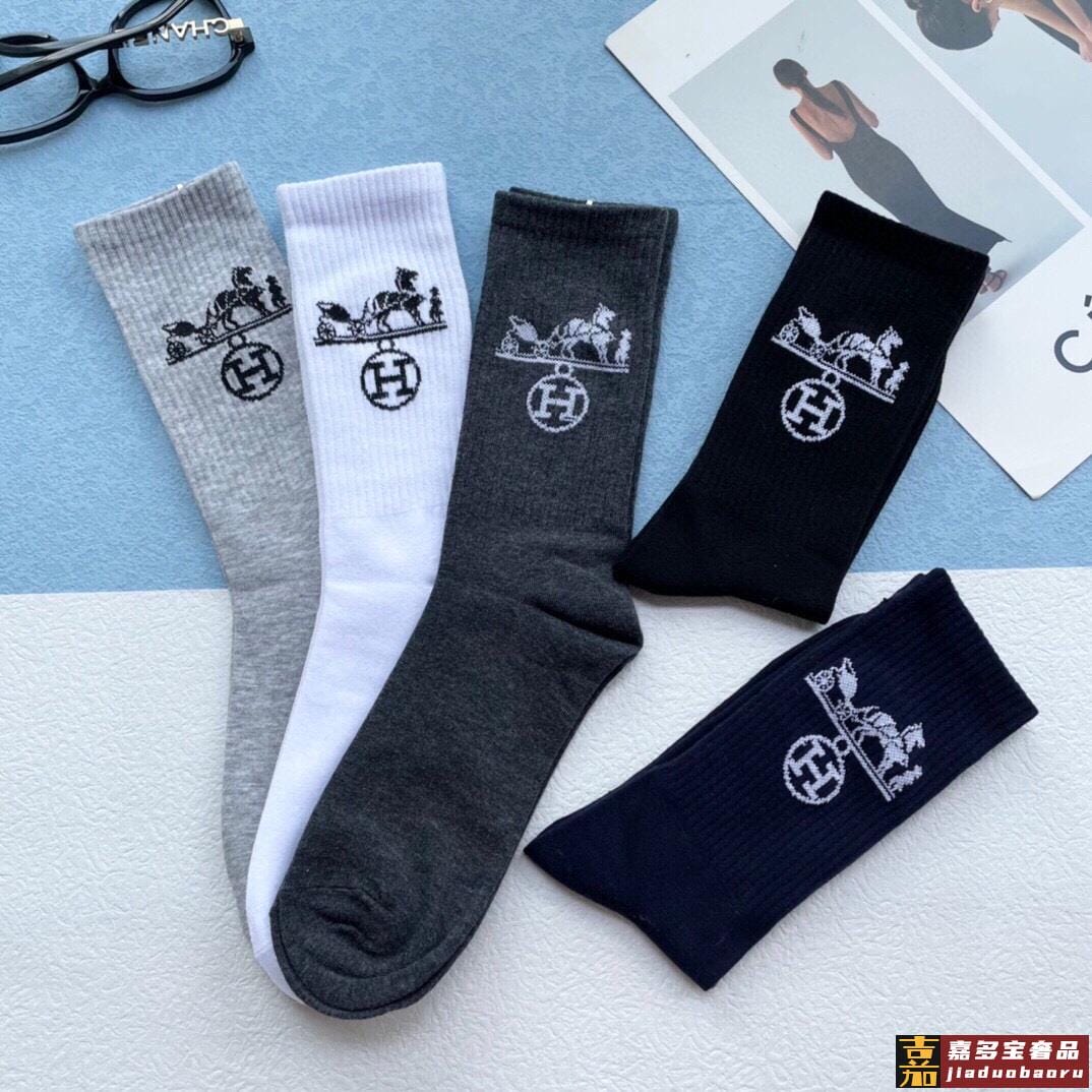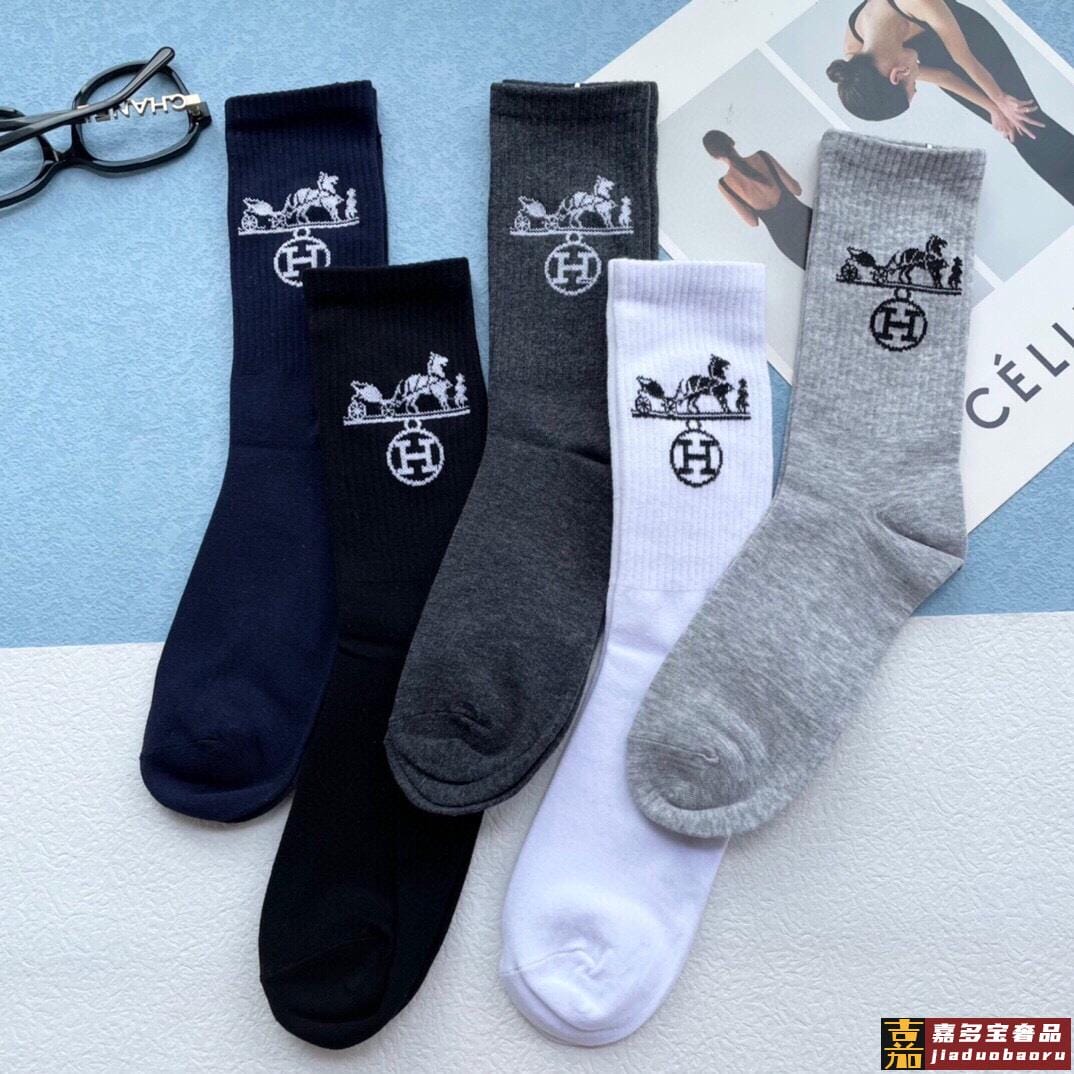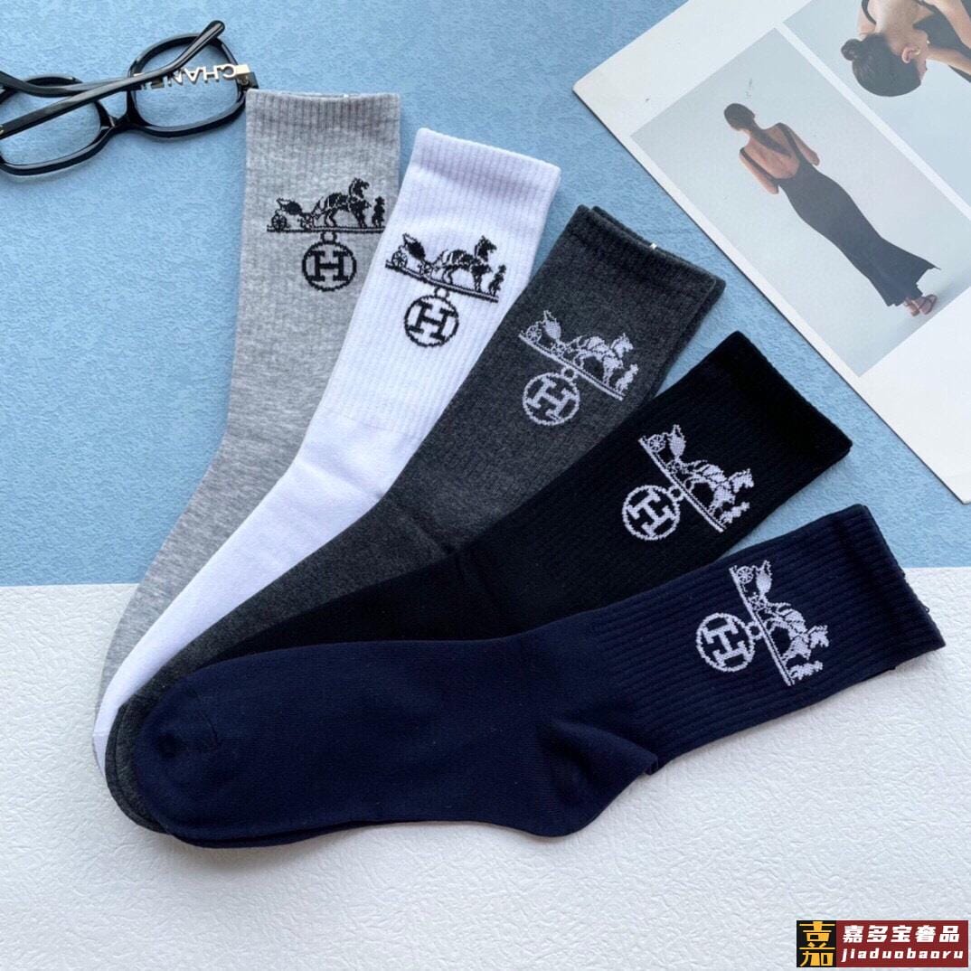 配包装一盒五双爱马仕经典中长筒袜子纯棉面料专柜同步上新袜身提