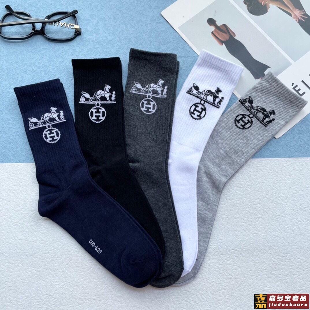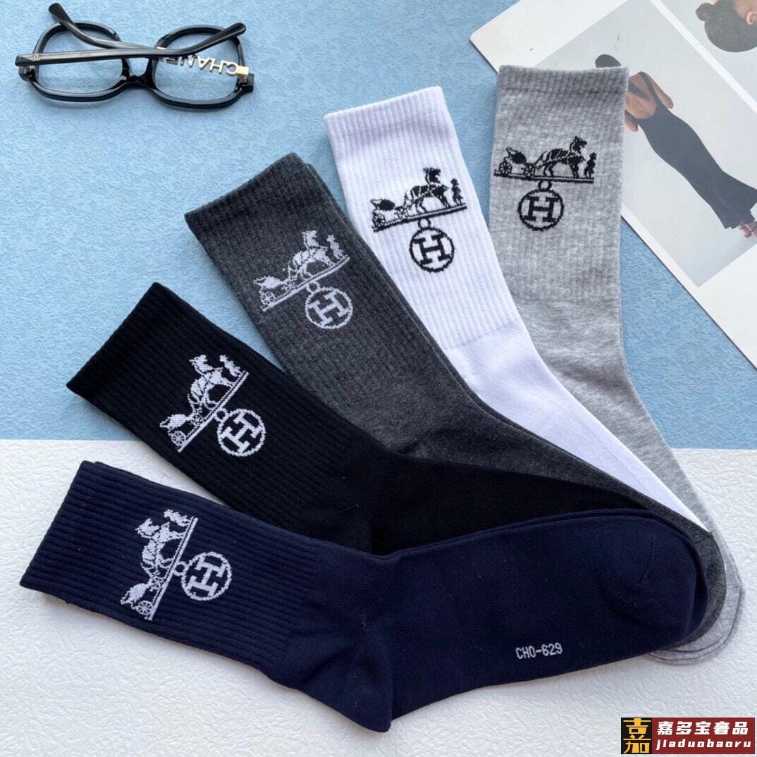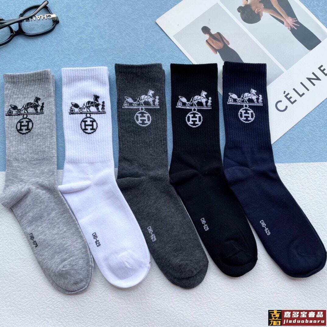 配包装一盒五双爱马仕经典中长筒袜子纯棉面料专柜同步上新袜身提