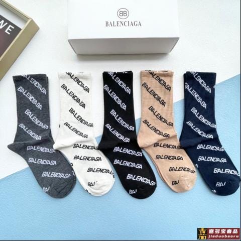 配包装一盒五双巴黎世家新品字母袜子经典品牌标志简单大气实物超
