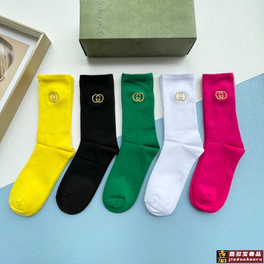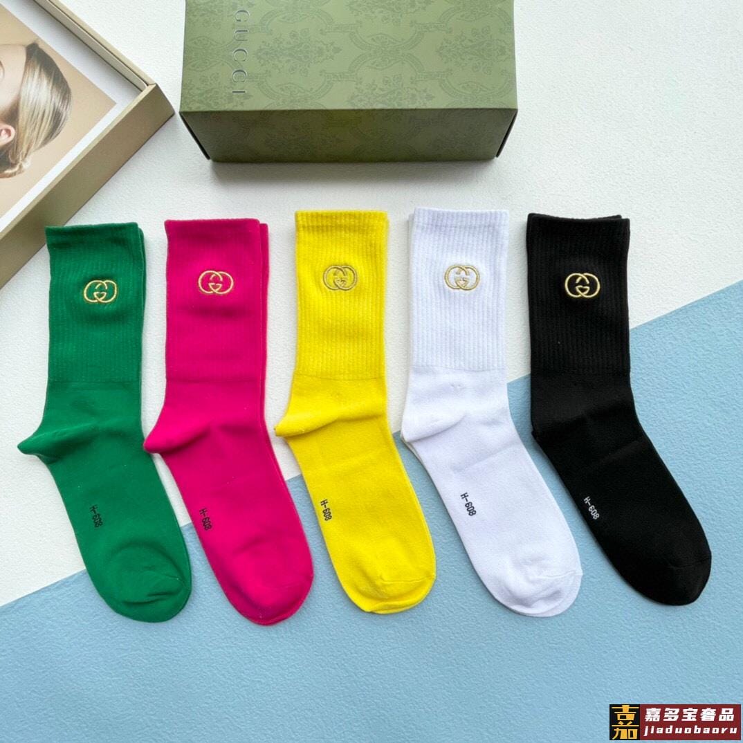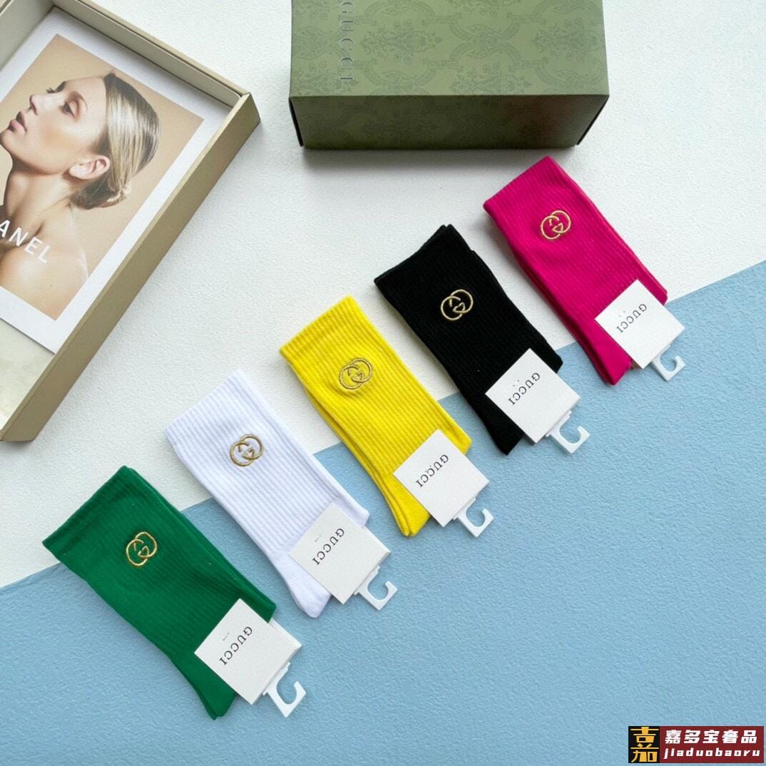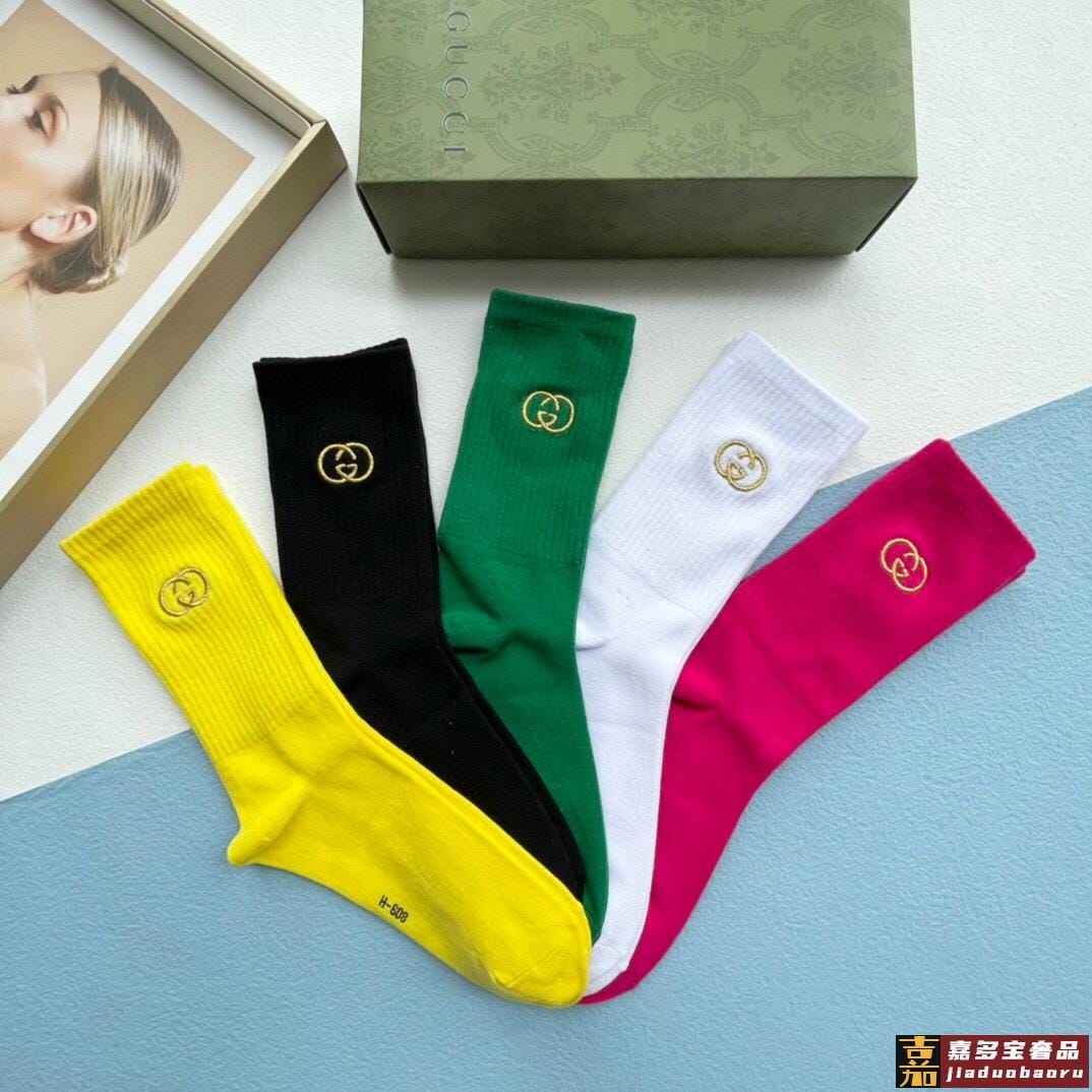 配送包装一盒五双古奇专柜新款男女刺绣高筒袜子专柜同步上新超柔