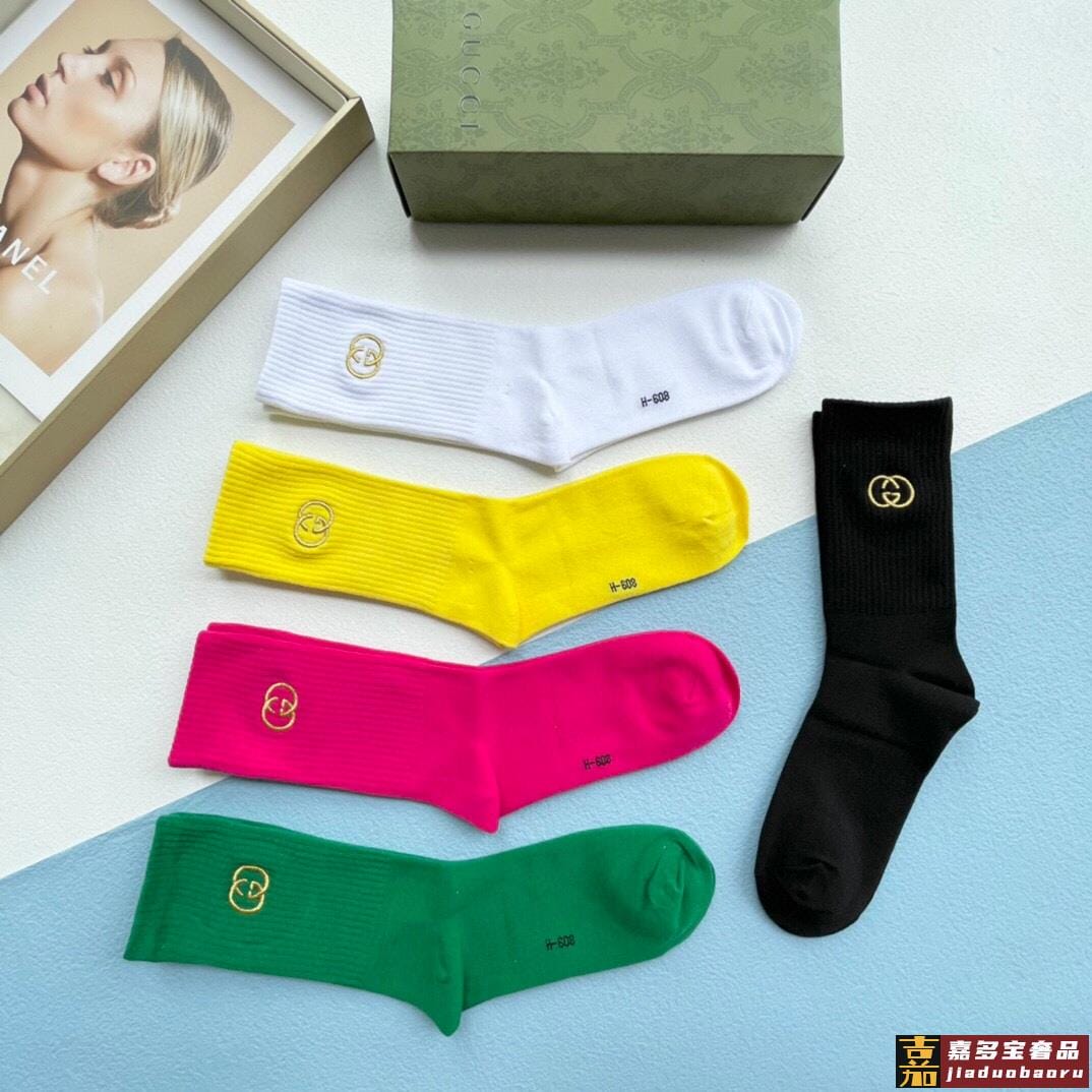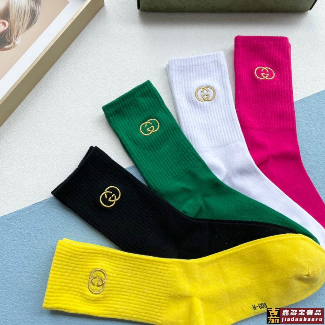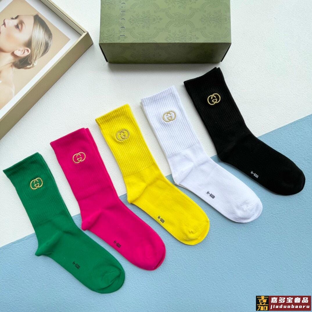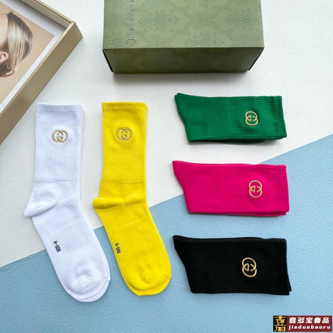 配送包装一盒五双古奇专柜新款男女刺绣高筒袜子专柜同步上新超柔