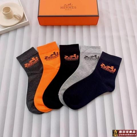 配包装一盒五双爱马仕经典中长筒袜子纯棉面料专柜同步上新袜身提