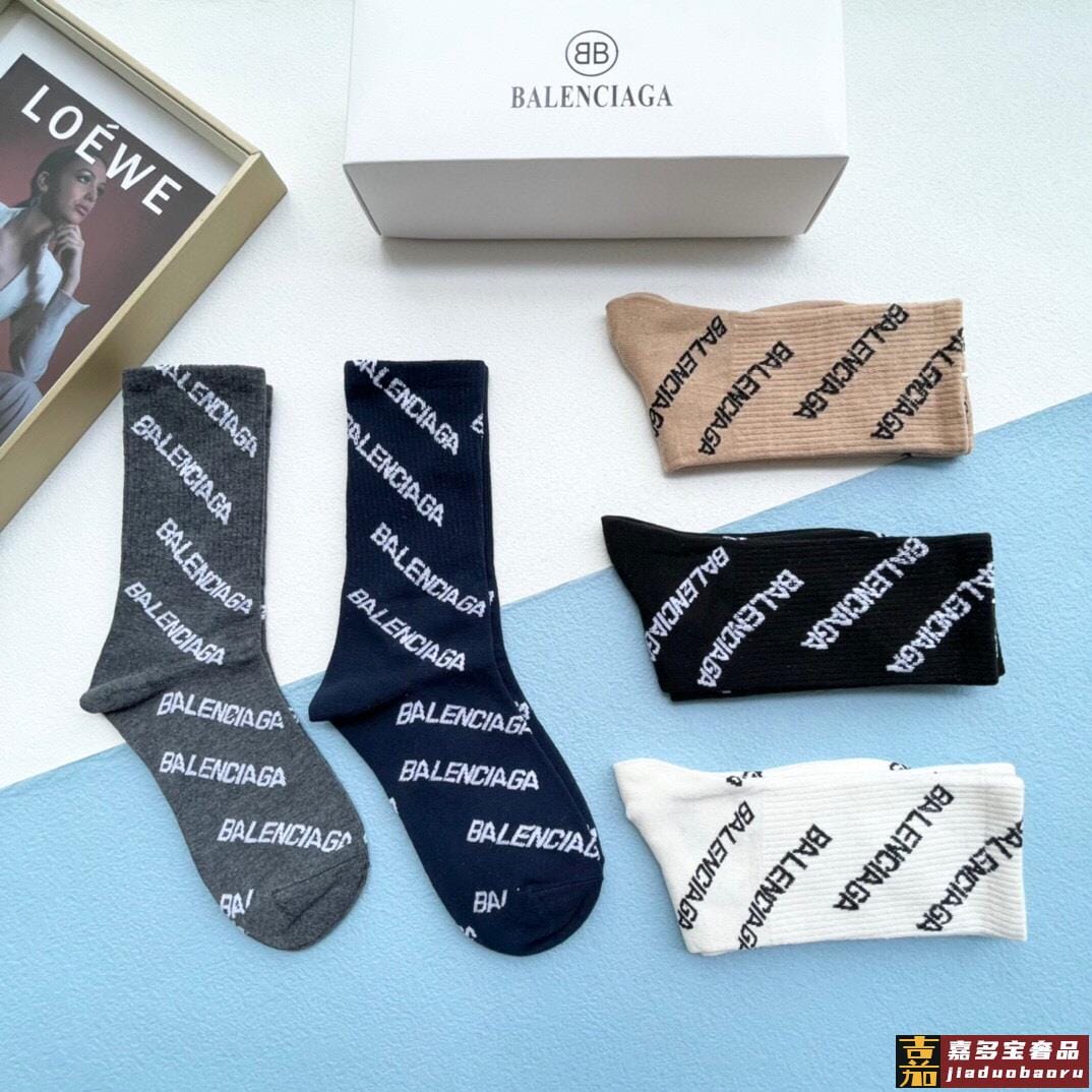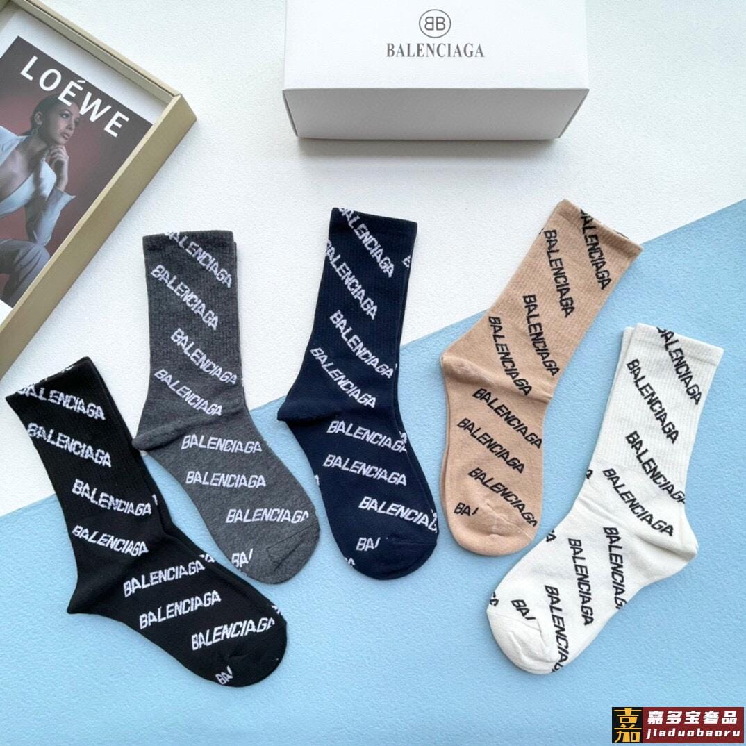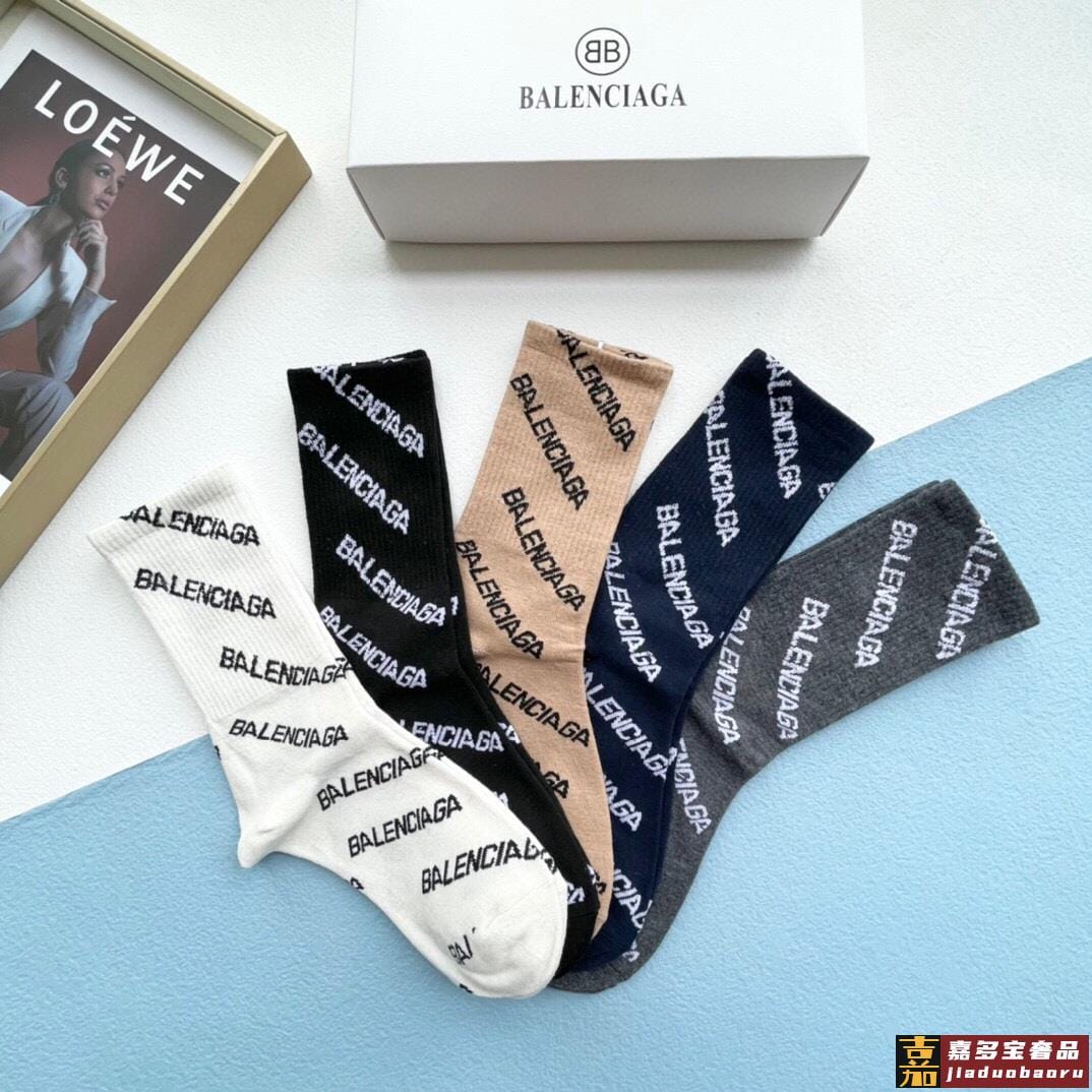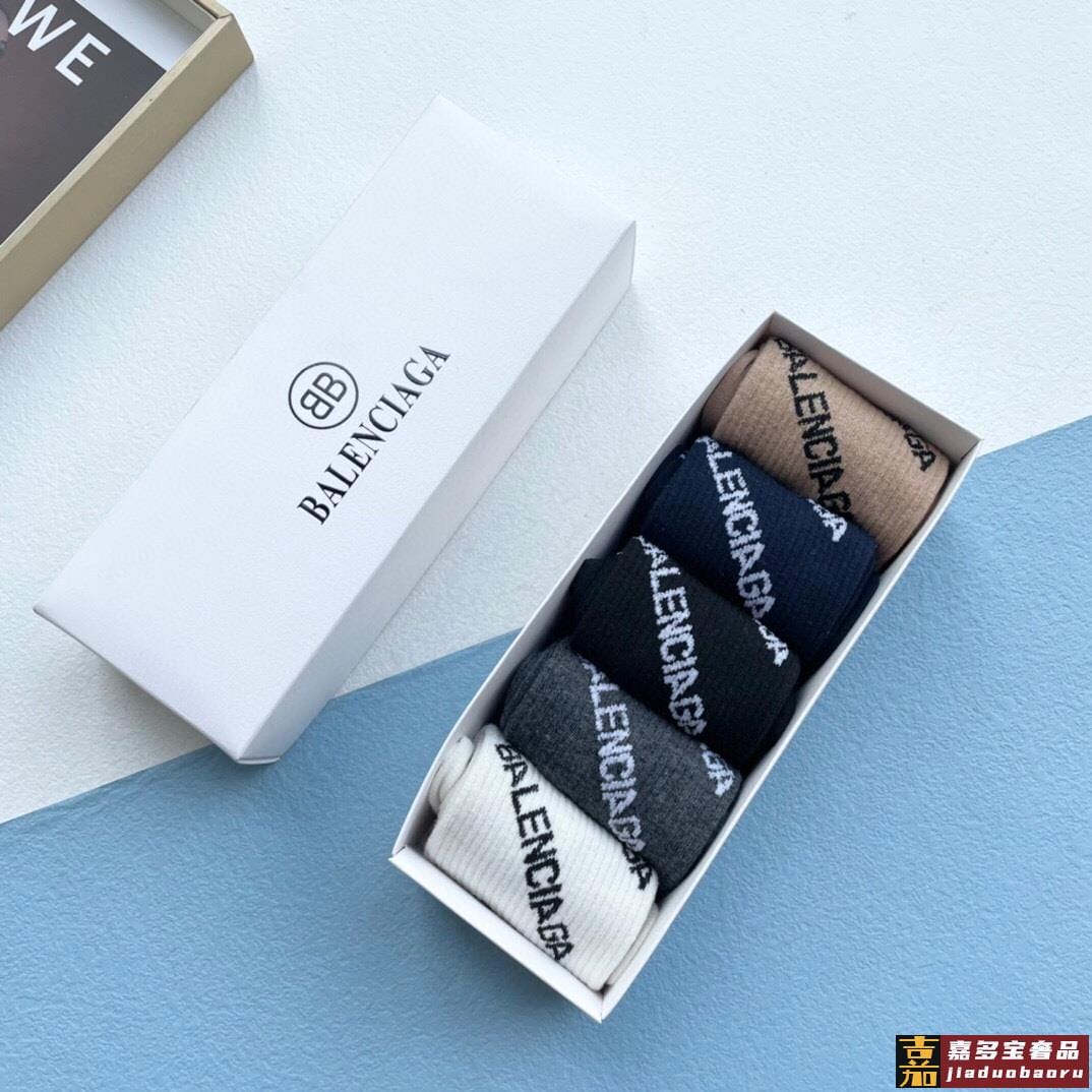 配包装一盒五双巴黎世家新品字母袜子经典品牌标志简单大气实物超
