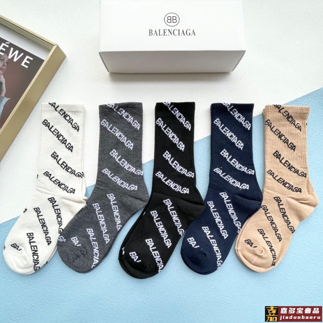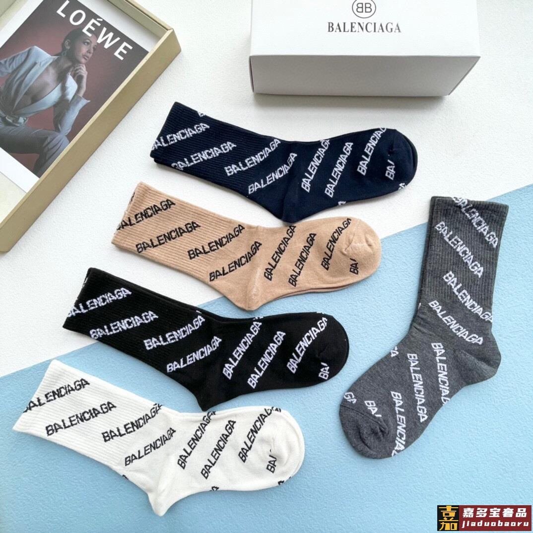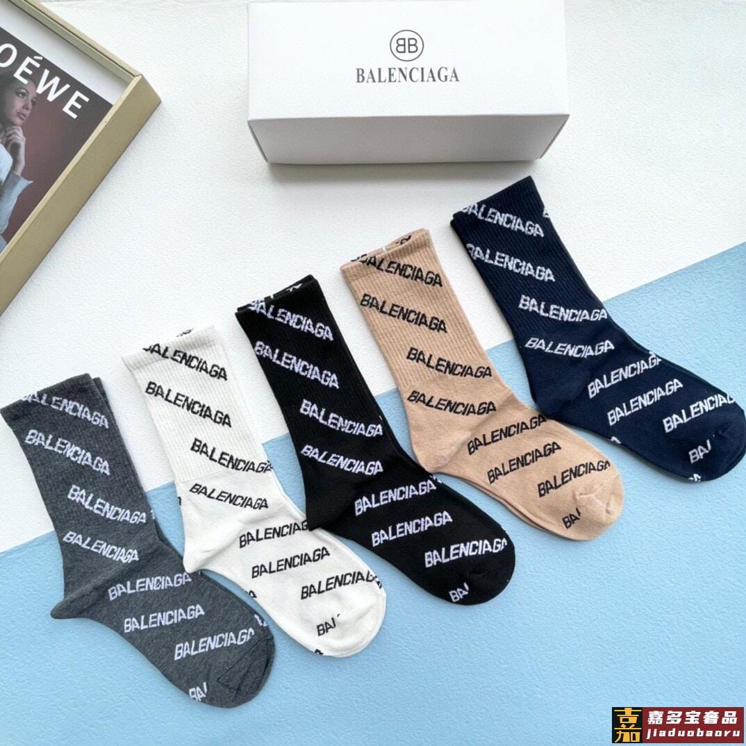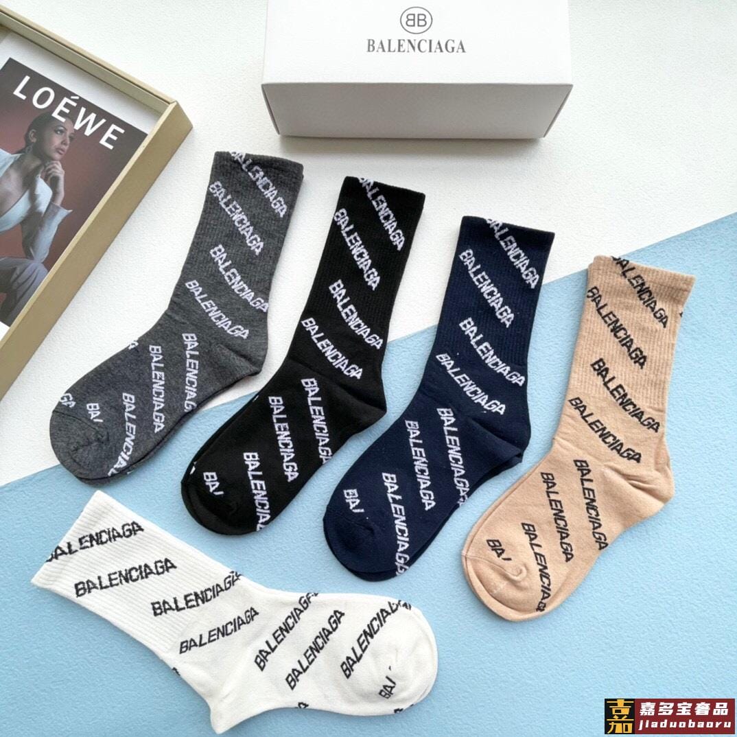 配包装一盒五双巴黎世家新品字母袜子经典品牌标志简单大气实物超