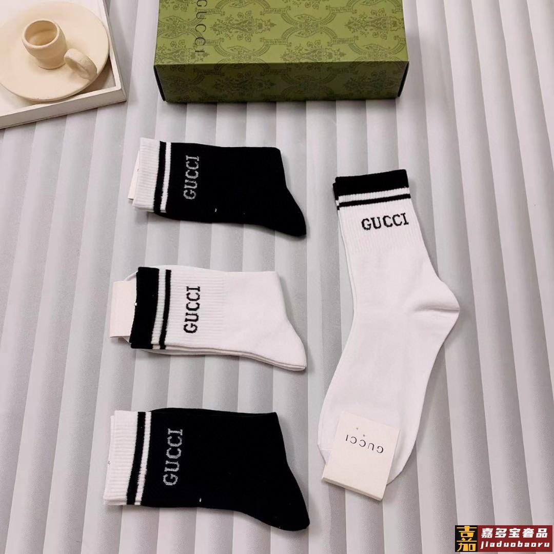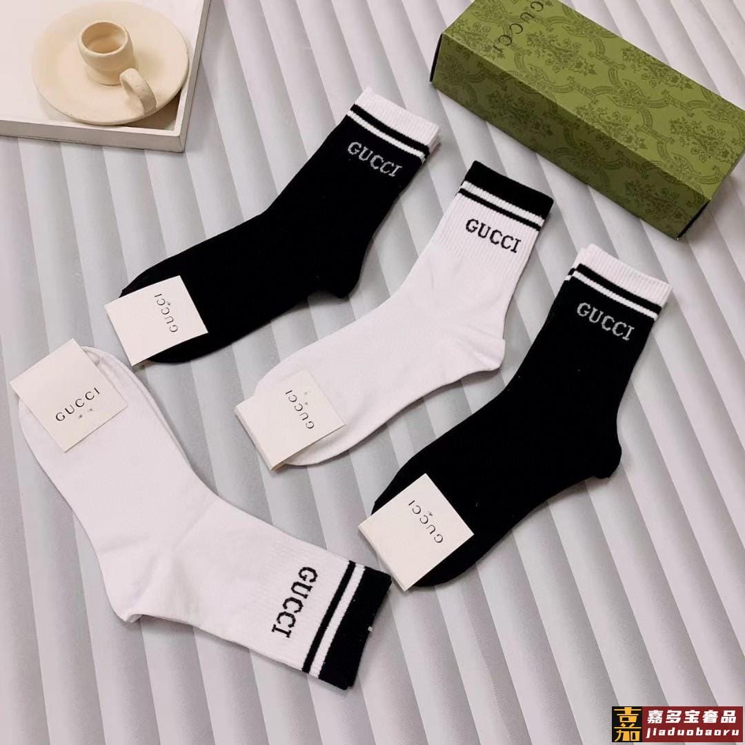 配送包装一盒五双古奇专柜新款男女刺绣高筒袜子专柜同步上新超柔