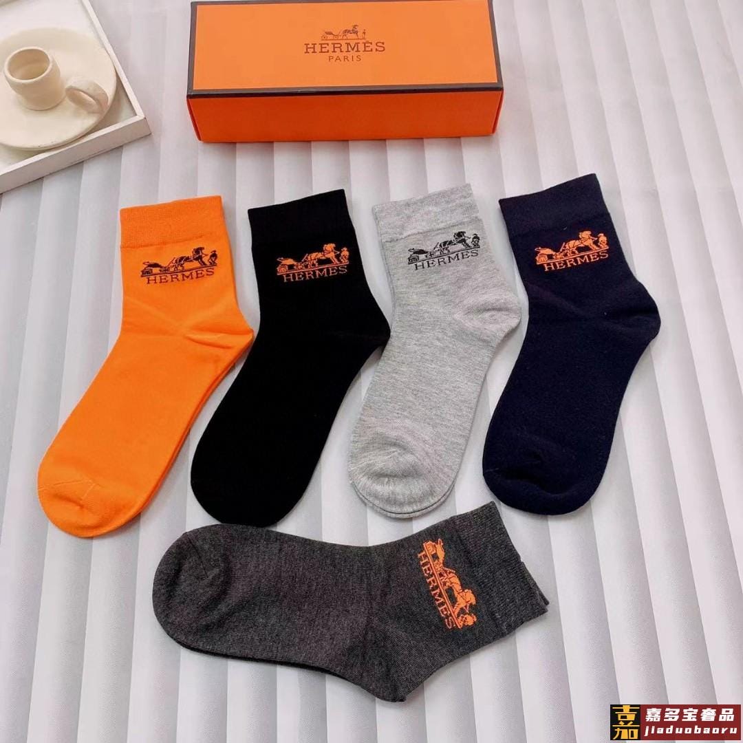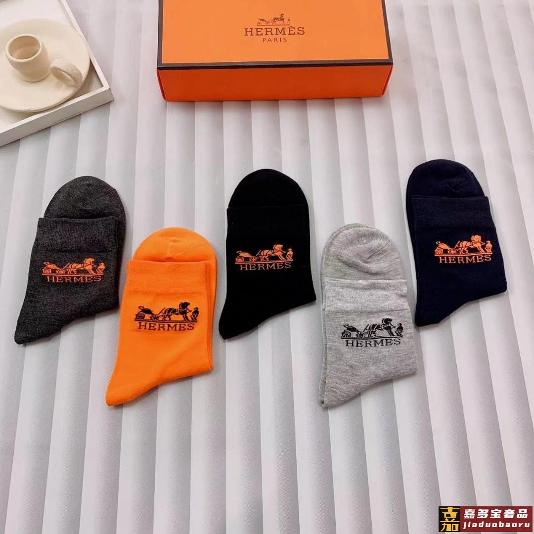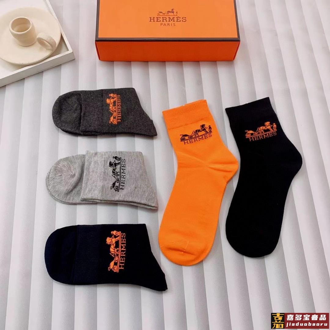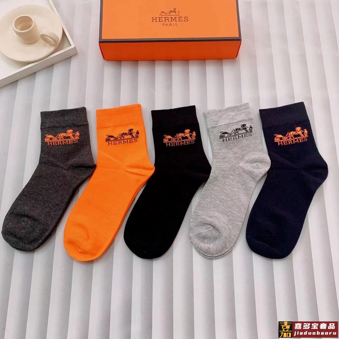 配包装一盒五双爱马仕经典中长筒袜子纯棉面料专柜同步上新袜身提