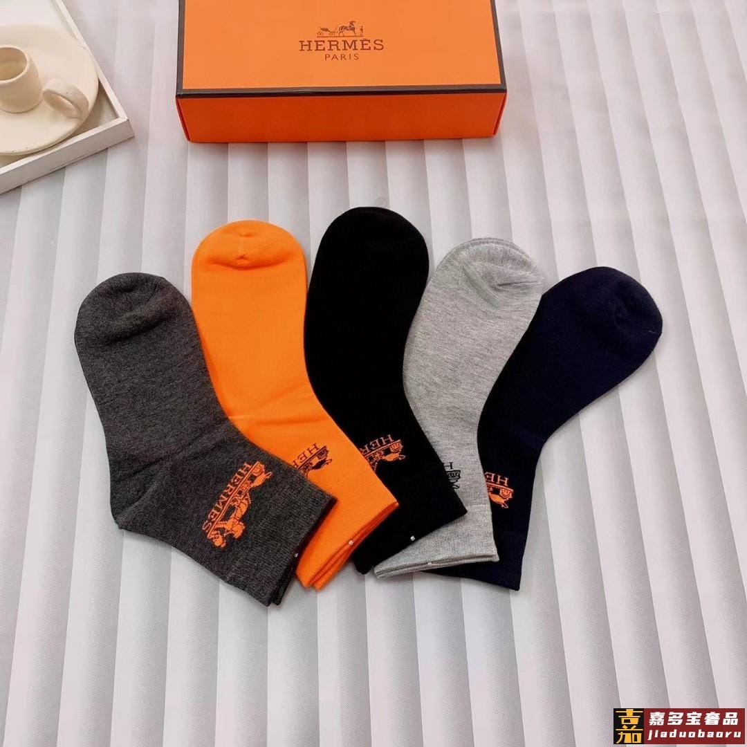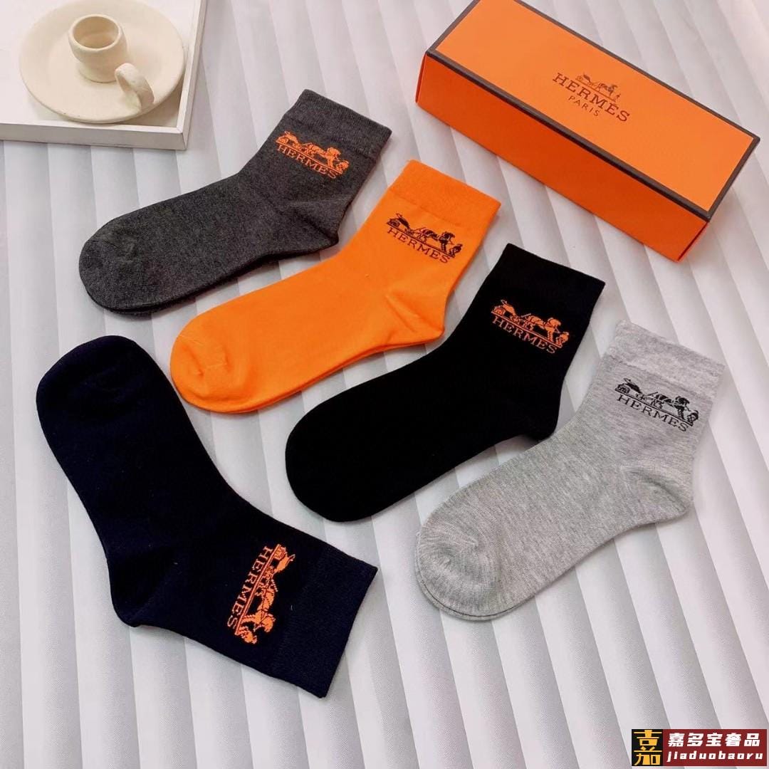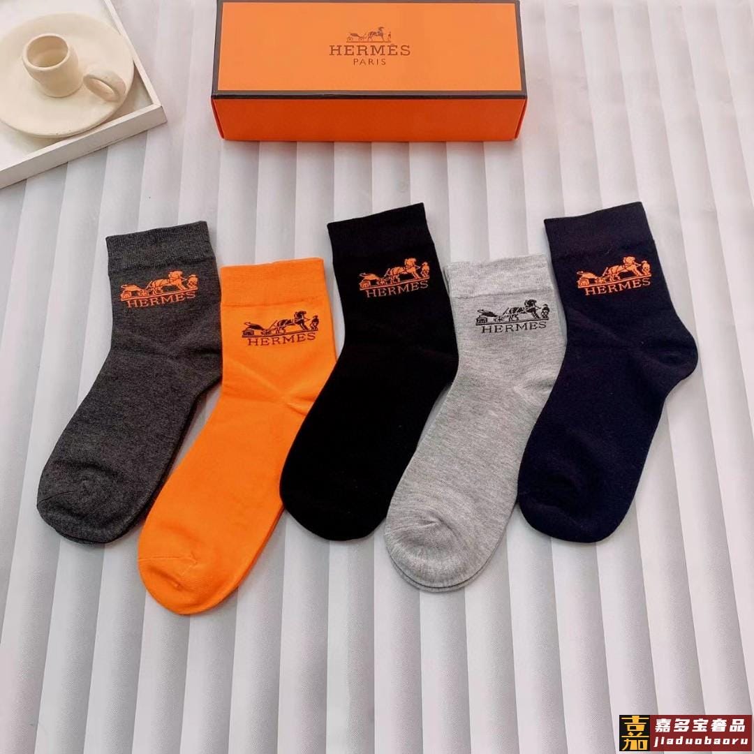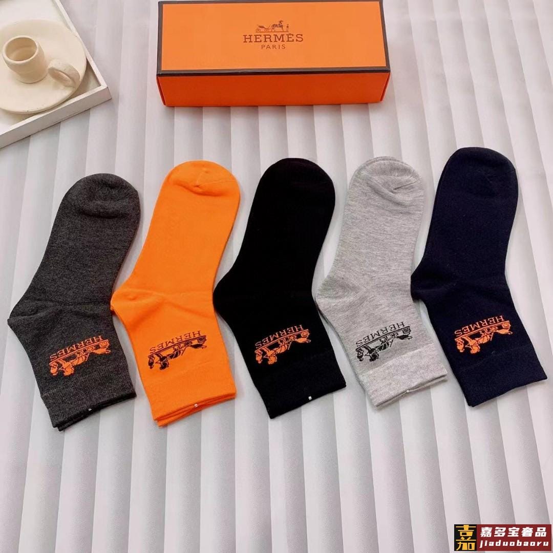 配包装一盒五双爱马仕经典中长筒袜子纯棉面料专柜同步上新袜身提