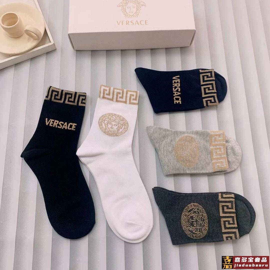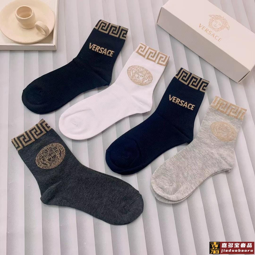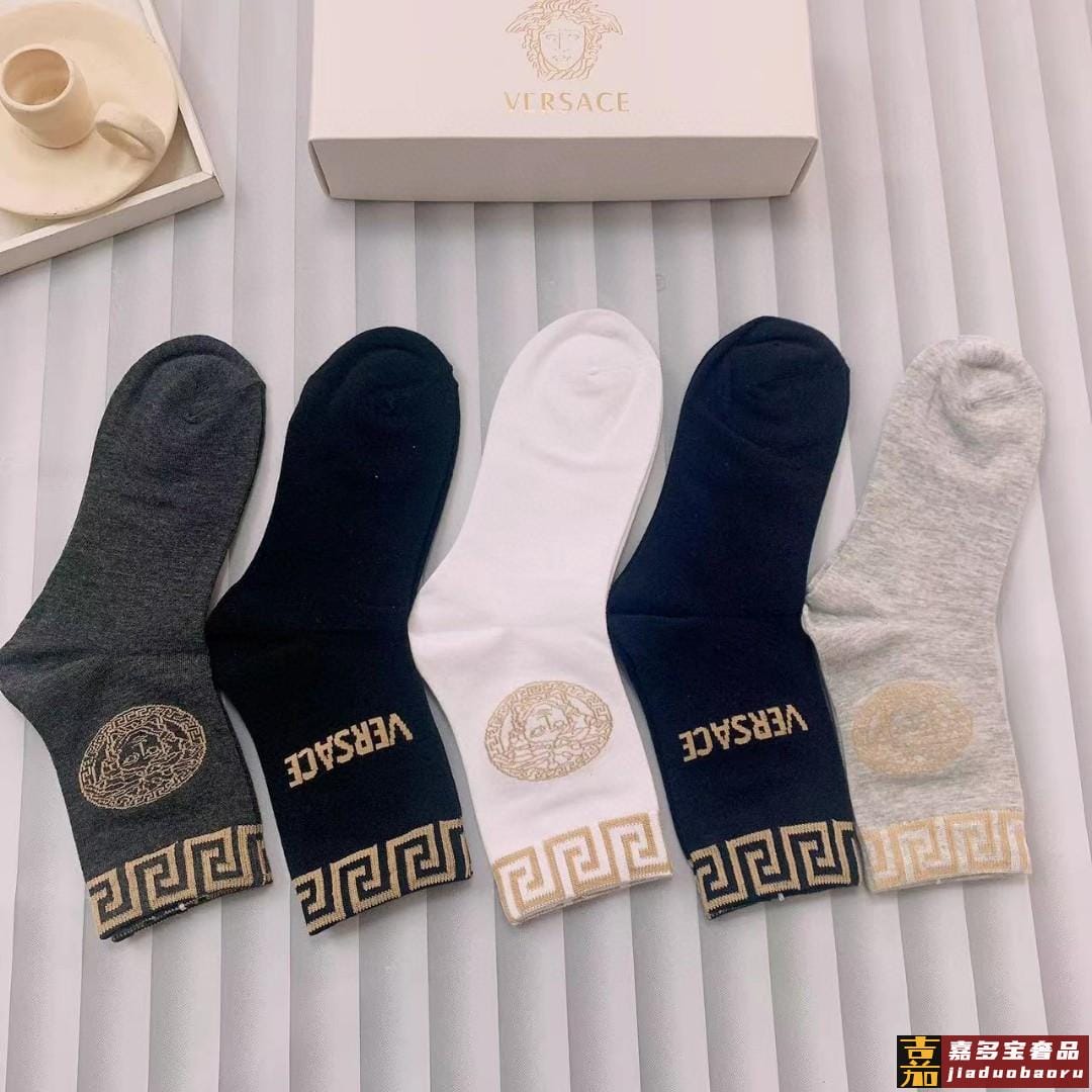 配包装一盒五双欧美大牌范思哲好看到爆炸欧美大牌中筒袜男款潮人