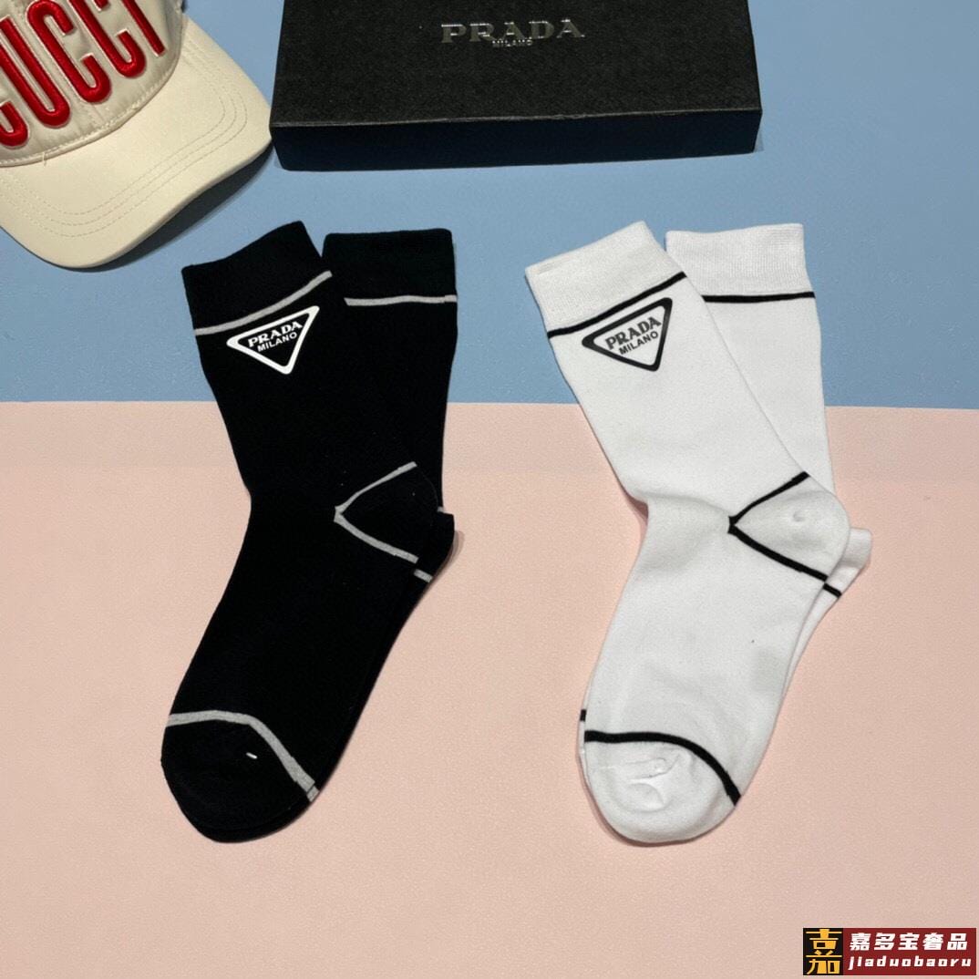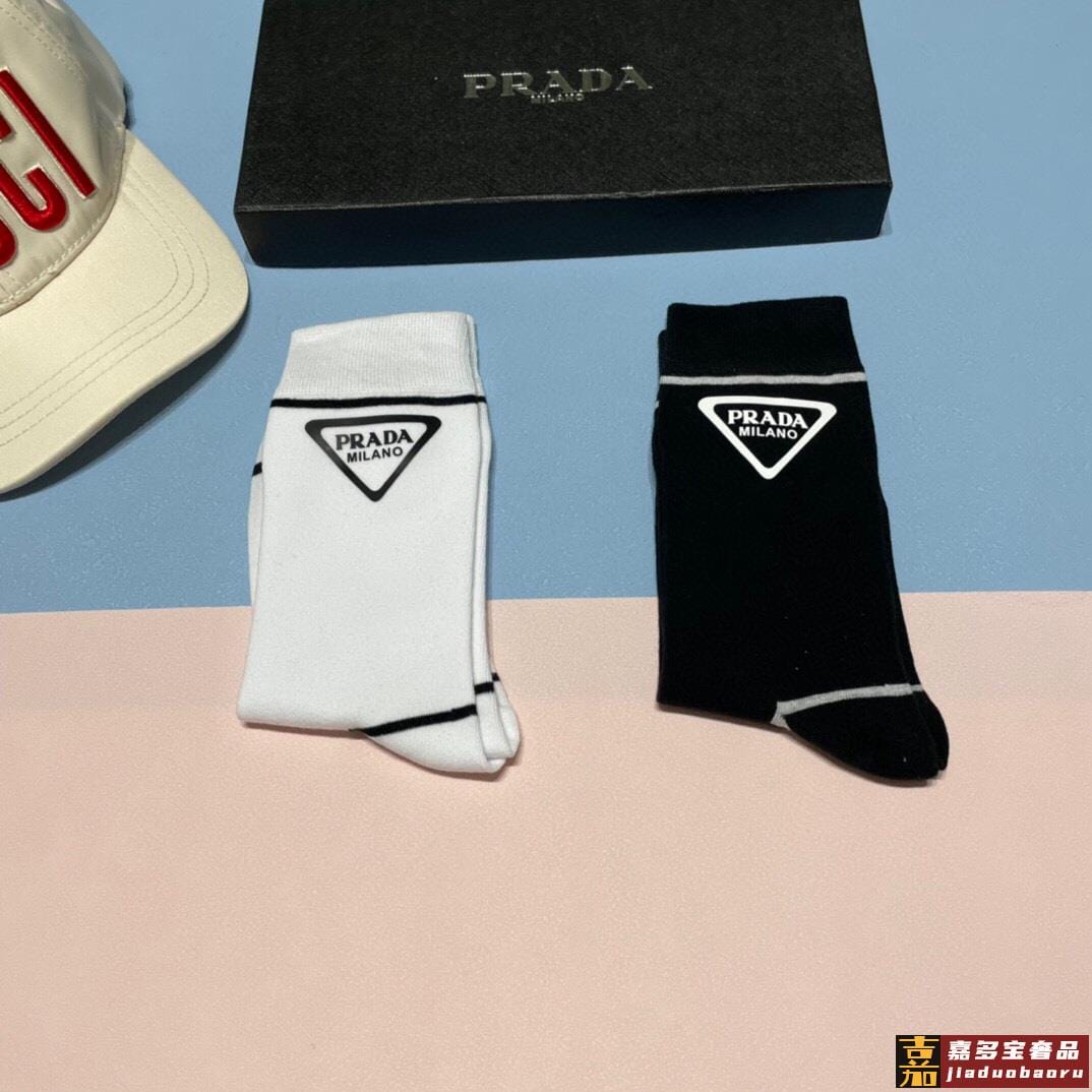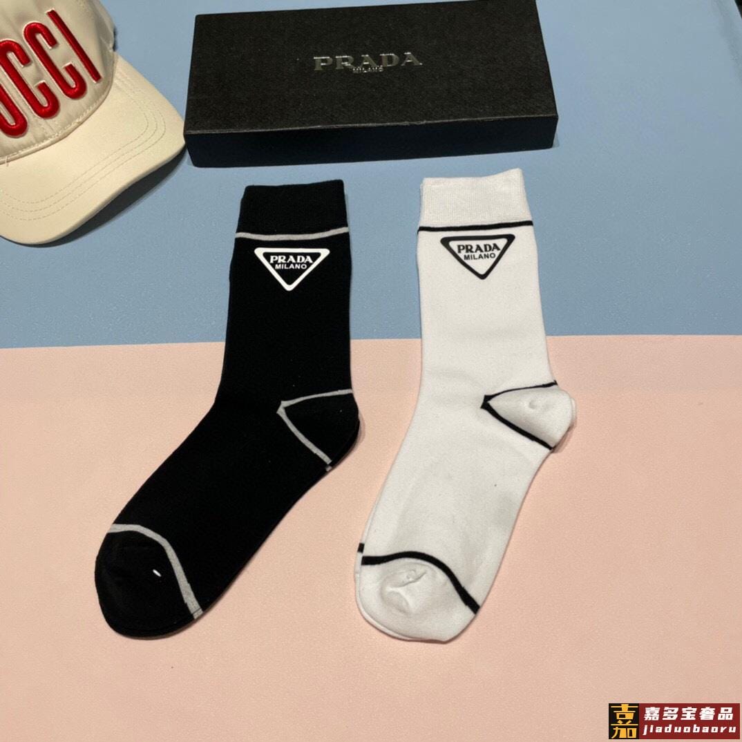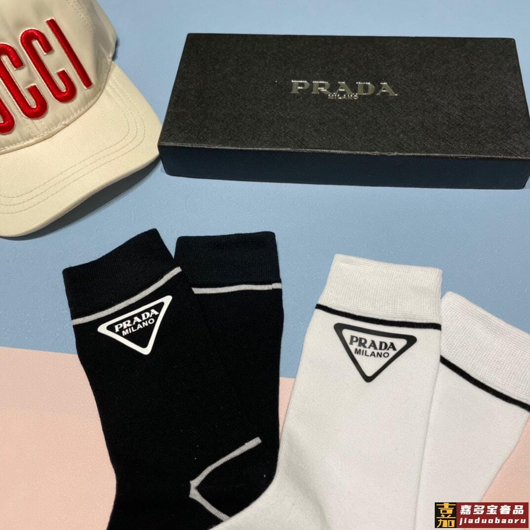 配包装普拉达新款中长款袜子一盒双专柜同步筒袜袜子大牌出街潮人