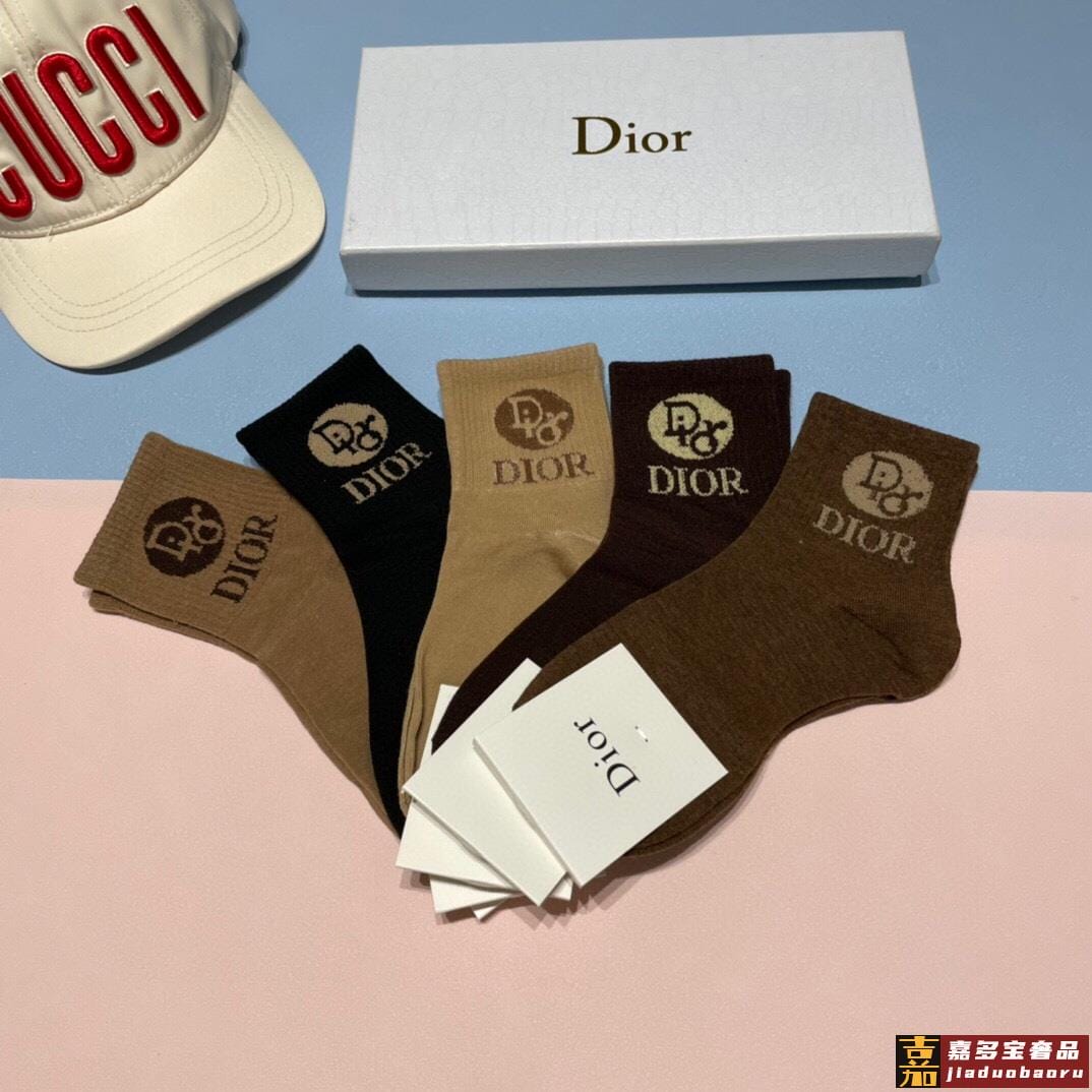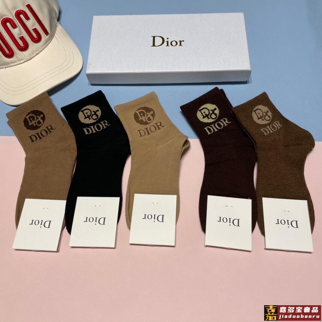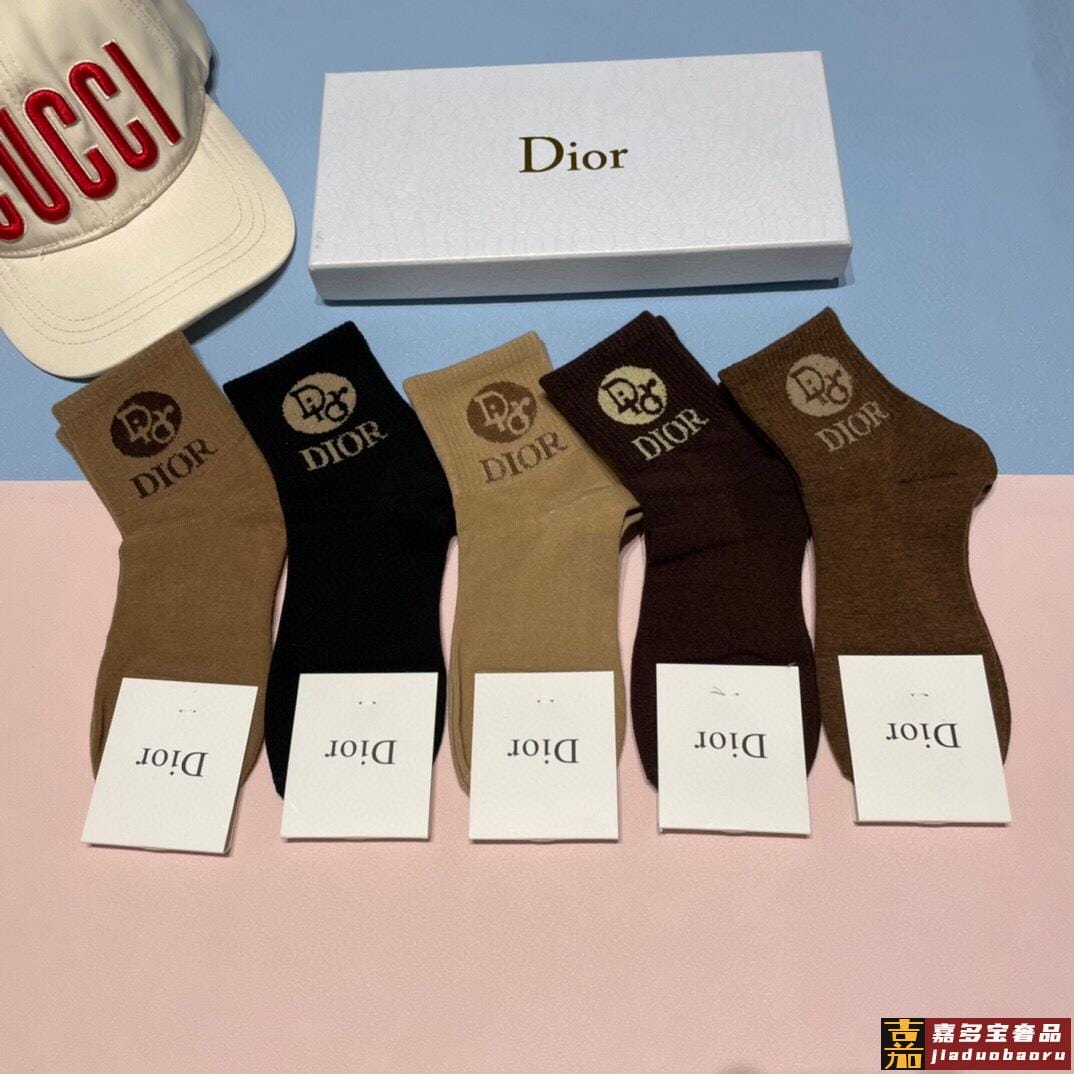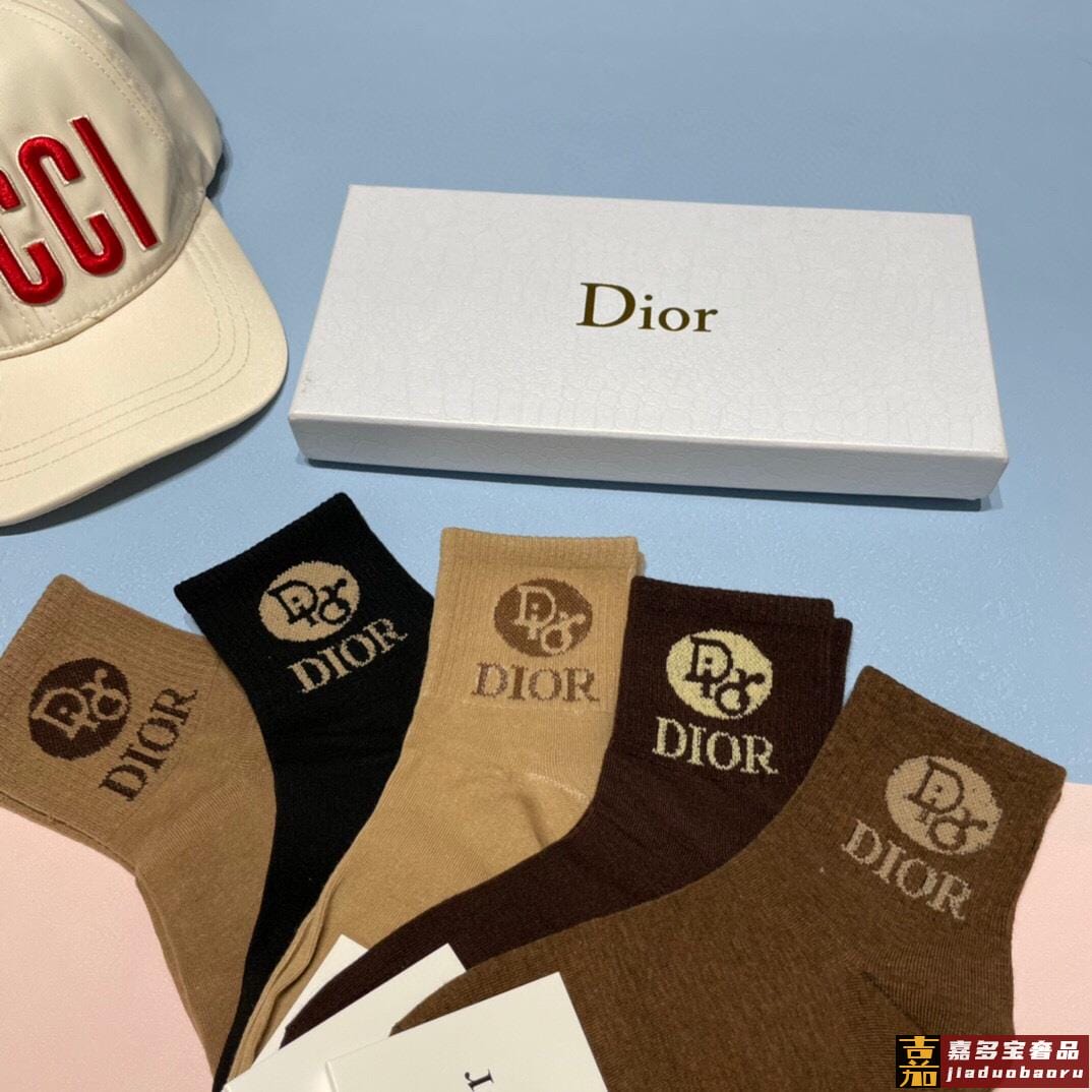 配专柜包装迪奥新款中长款堆堆袜袜子一盒五双专柜同步筒袜袜子大