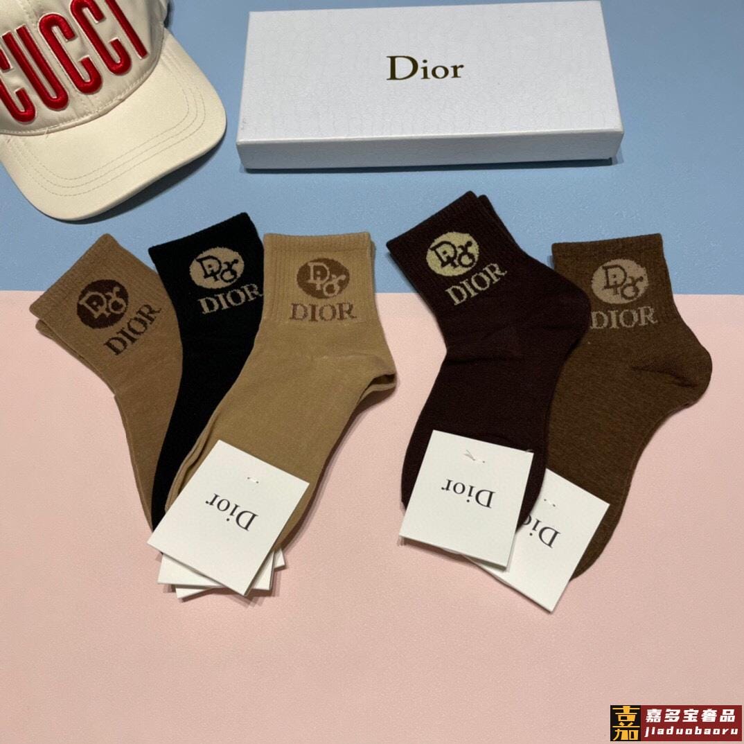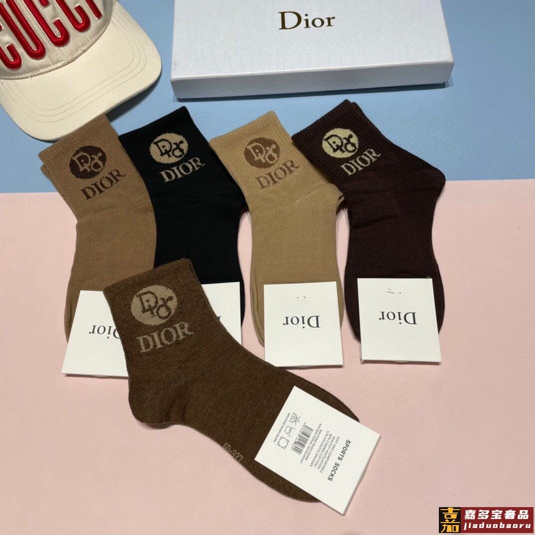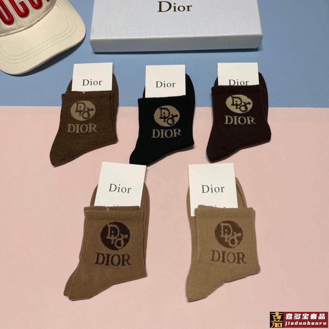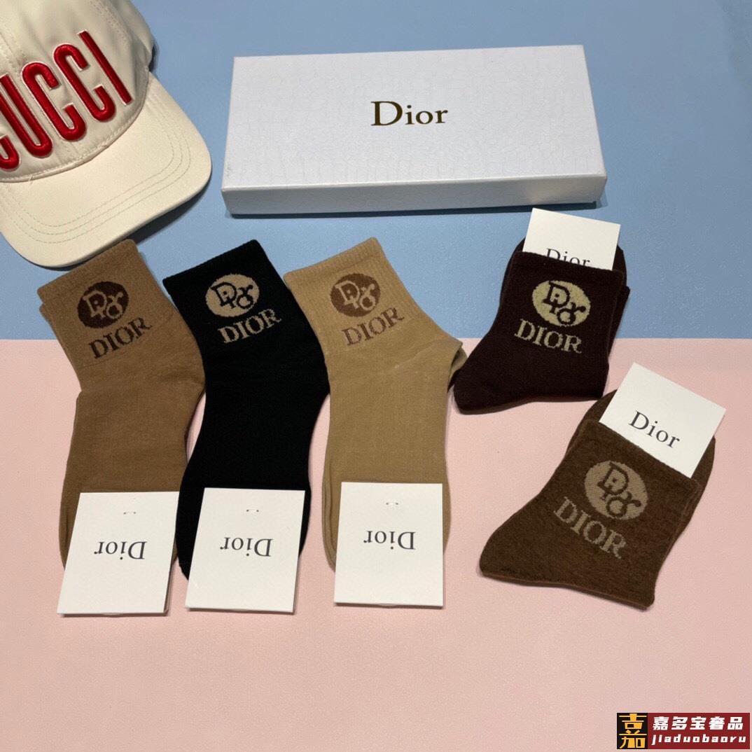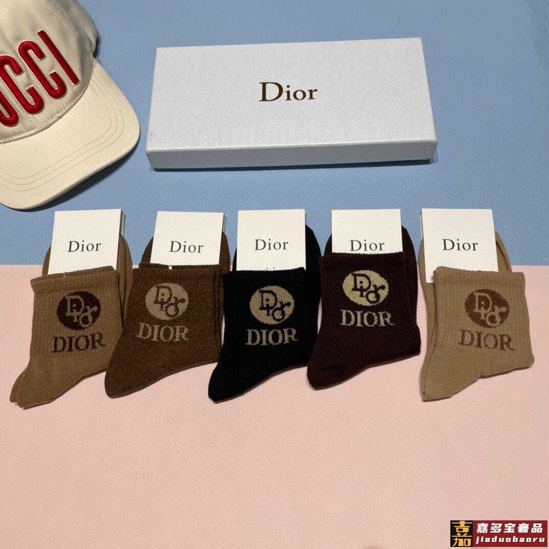 配专柜包装迪奥新款中长款堆堆袜袜子一盒五双专柜同步筒袜袜子大