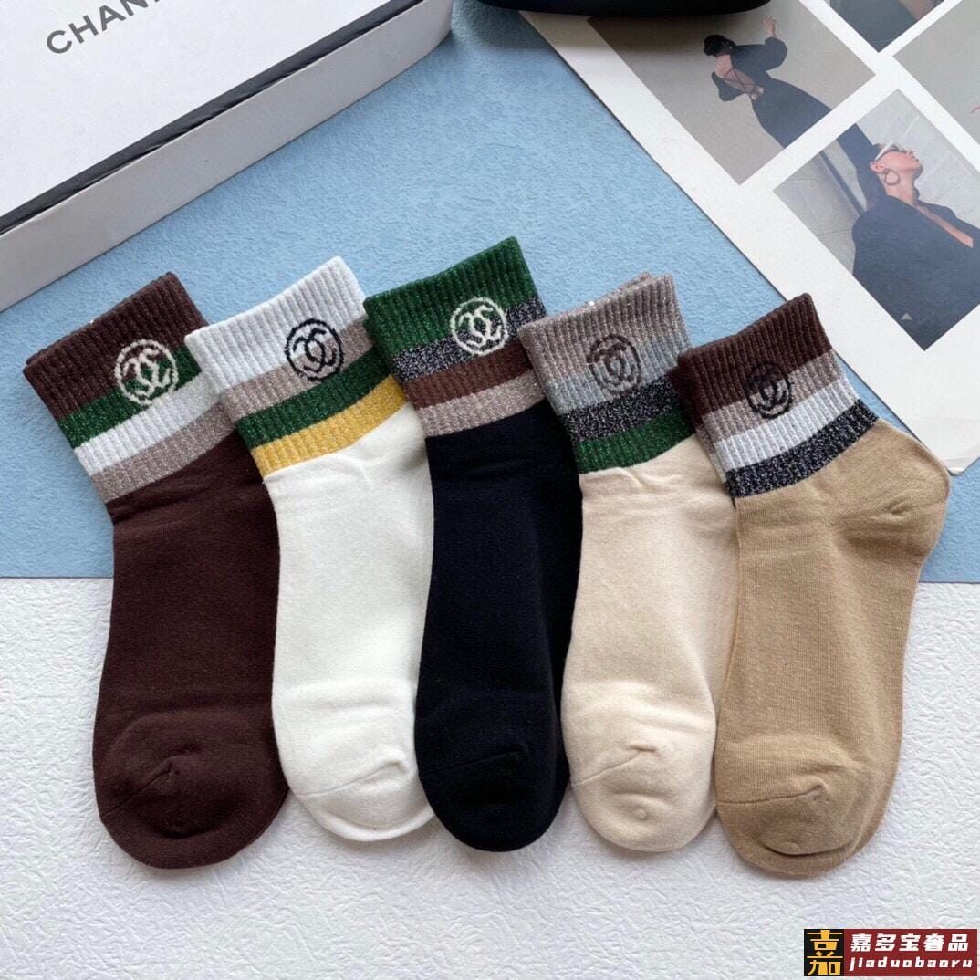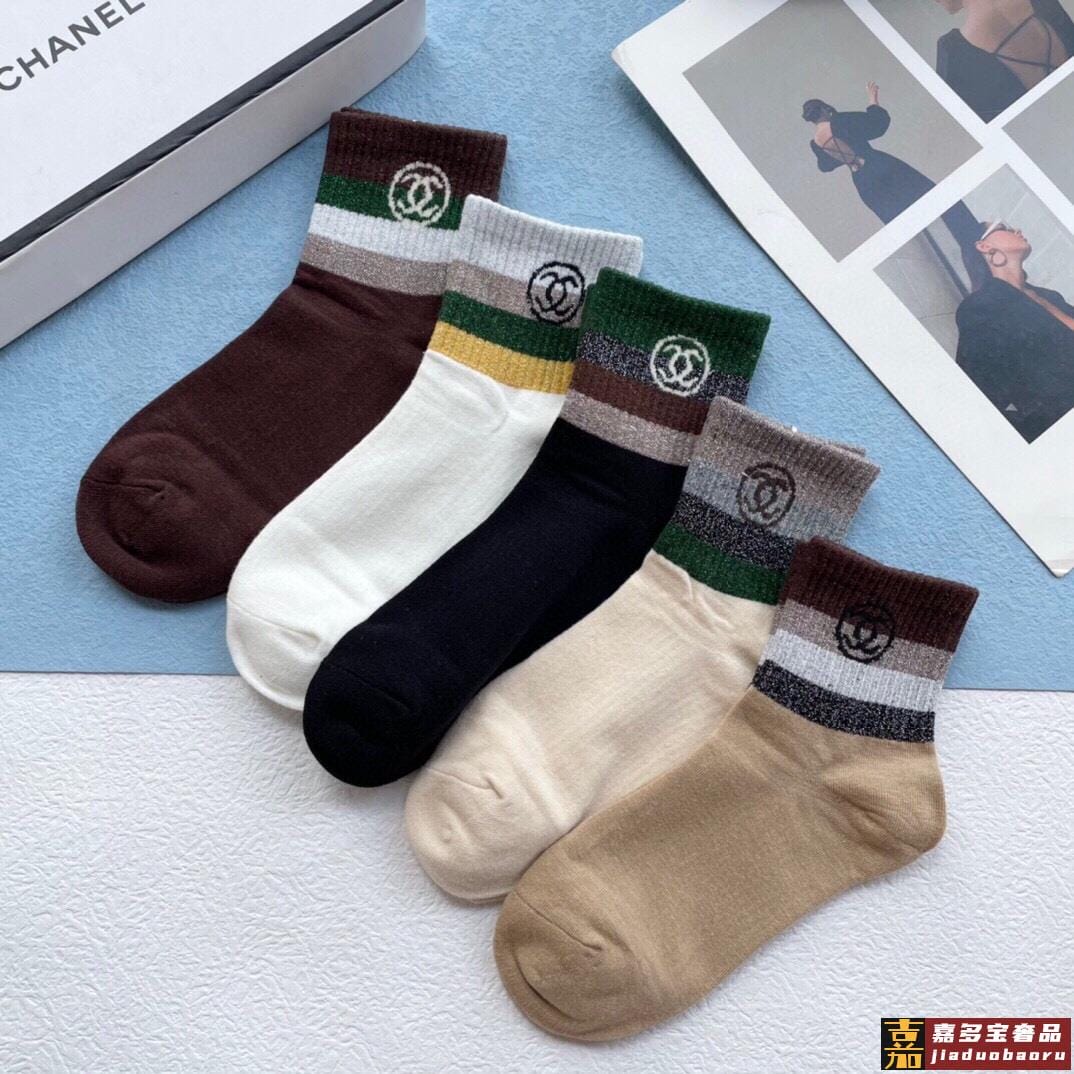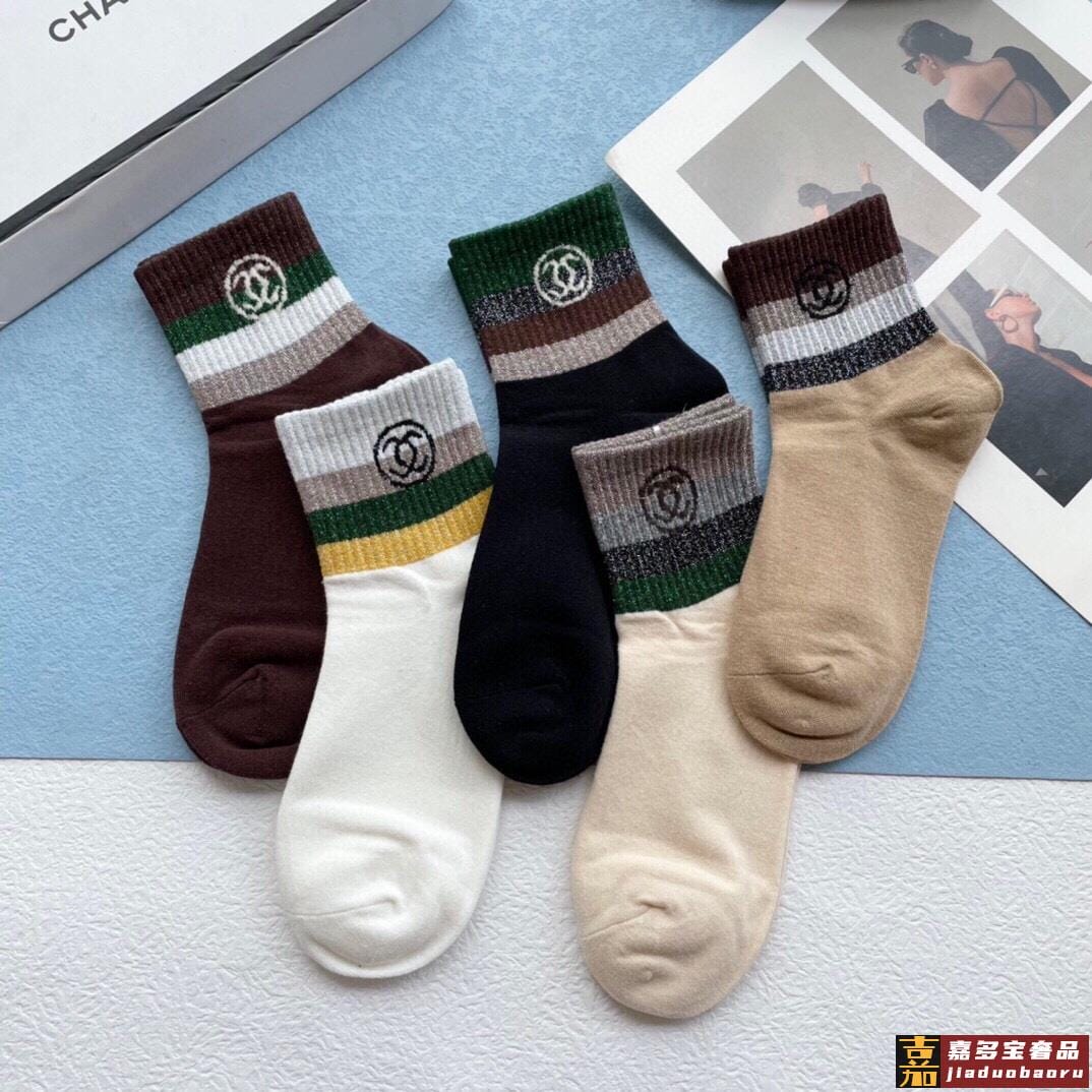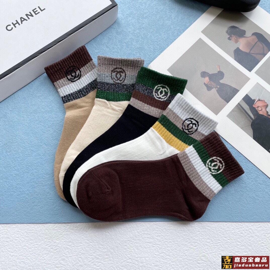 配包装一盒五双香奈儿香奶奶家新品中筒女款袜子袜身提花经典标志