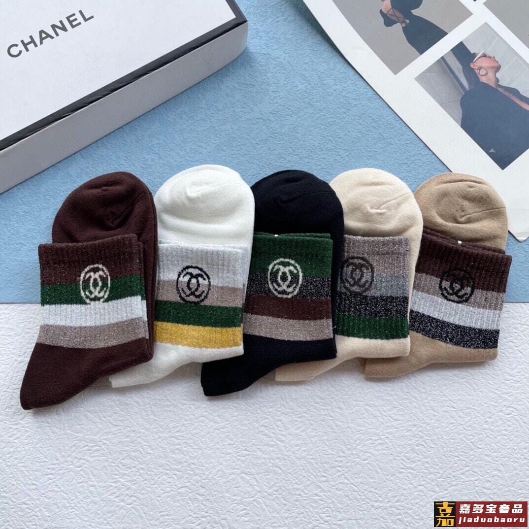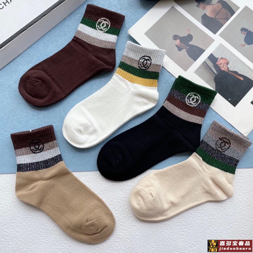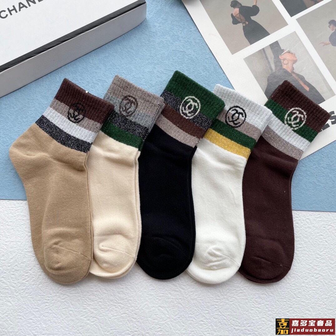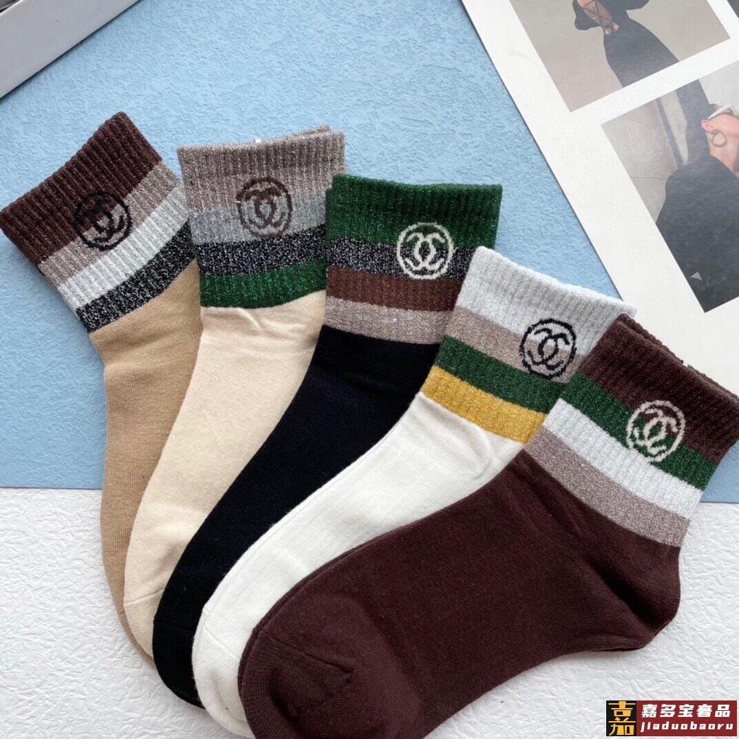 配包装一盒五双香奈儿香奶奶家新品中筒女款袜子袜身提花经典标志