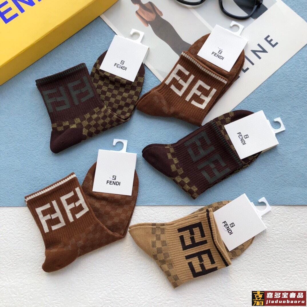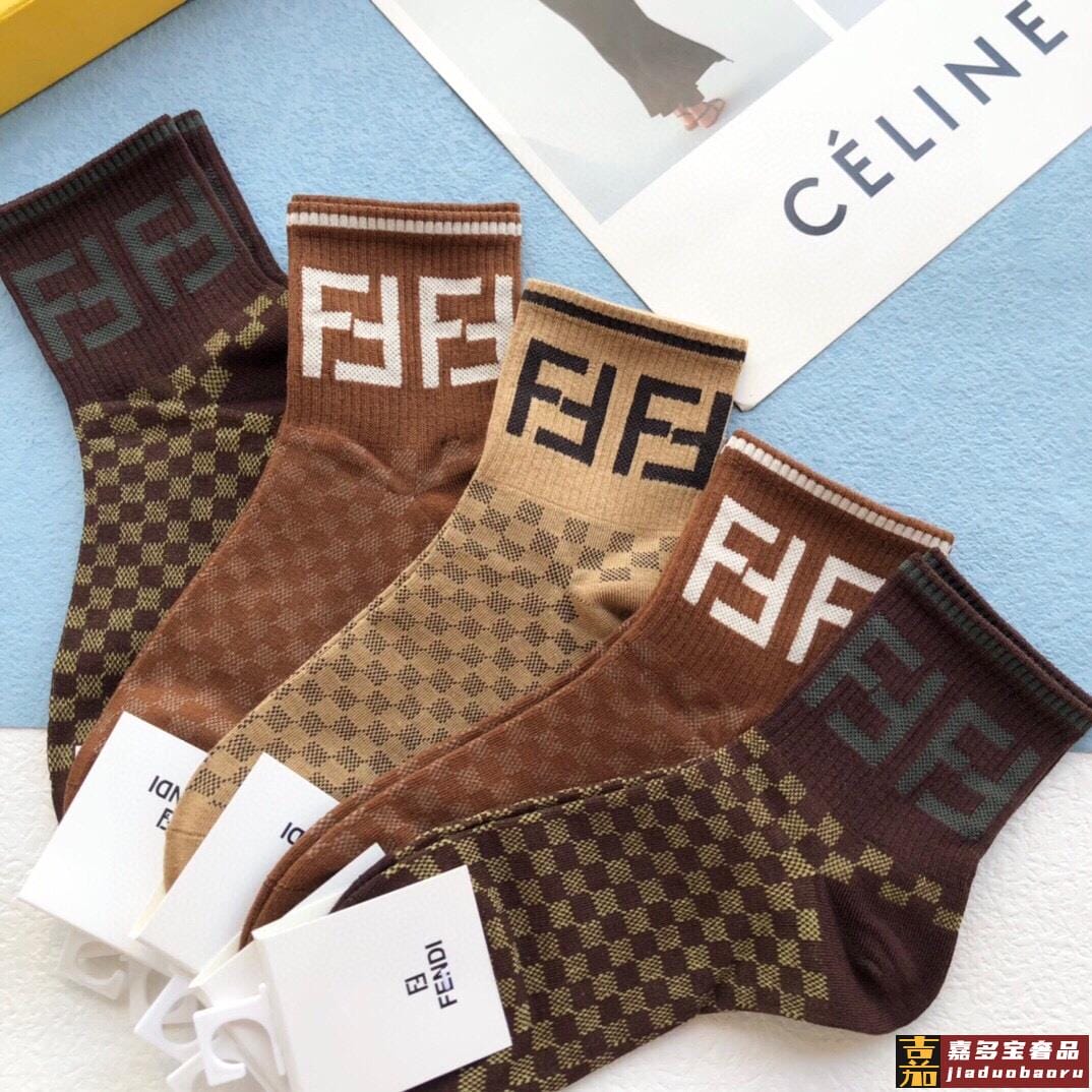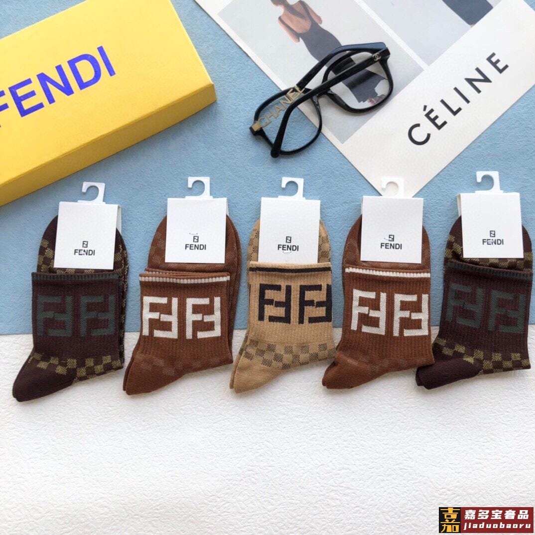 配包装一盒五双芬迪金丝线大新品男女款秋冬款中筒袜子超级经典的