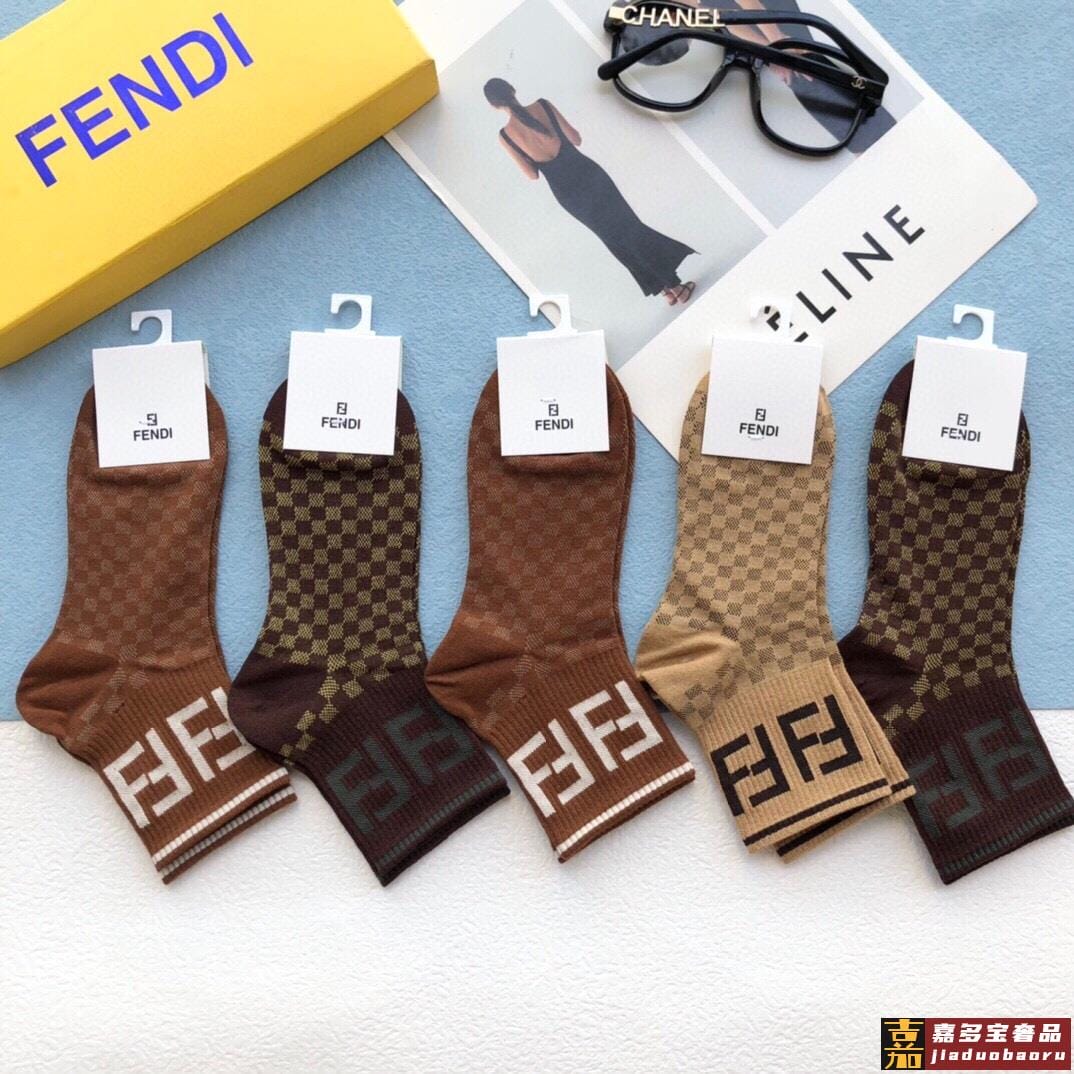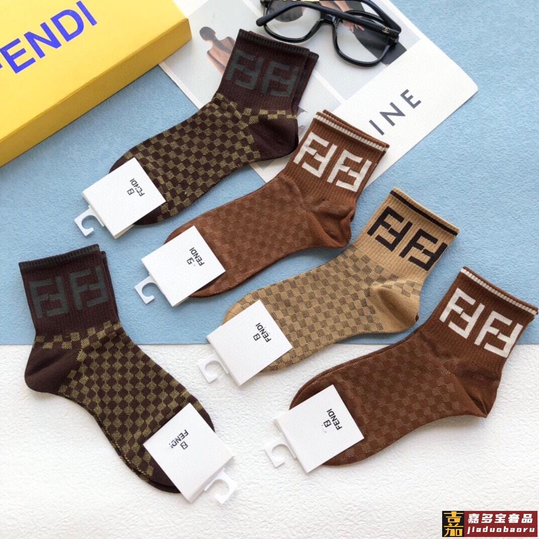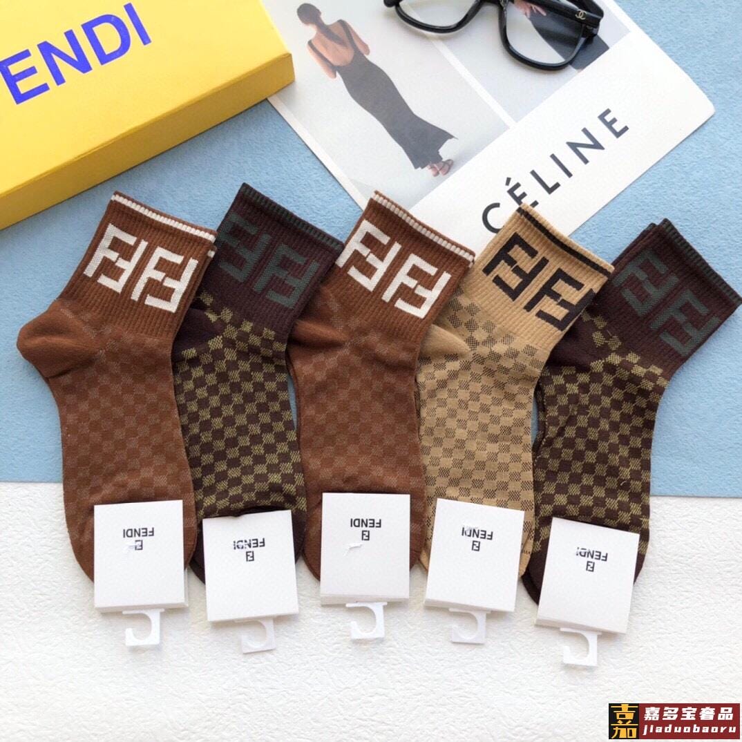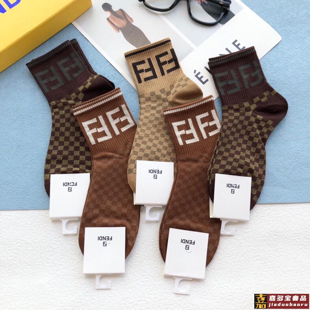 配包装一盒五双芬迪金丝线大新品男女款秋冬款中筒袜子超级经典的