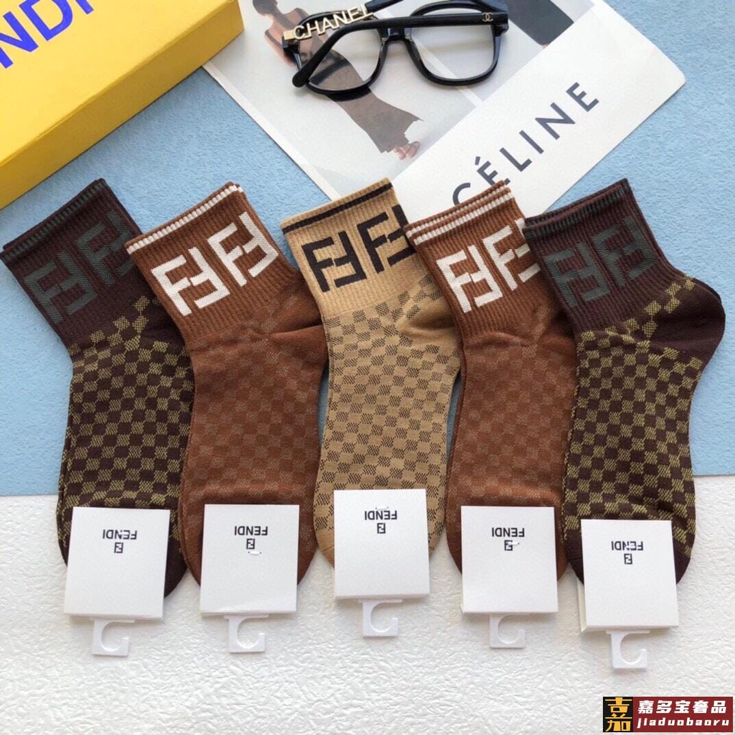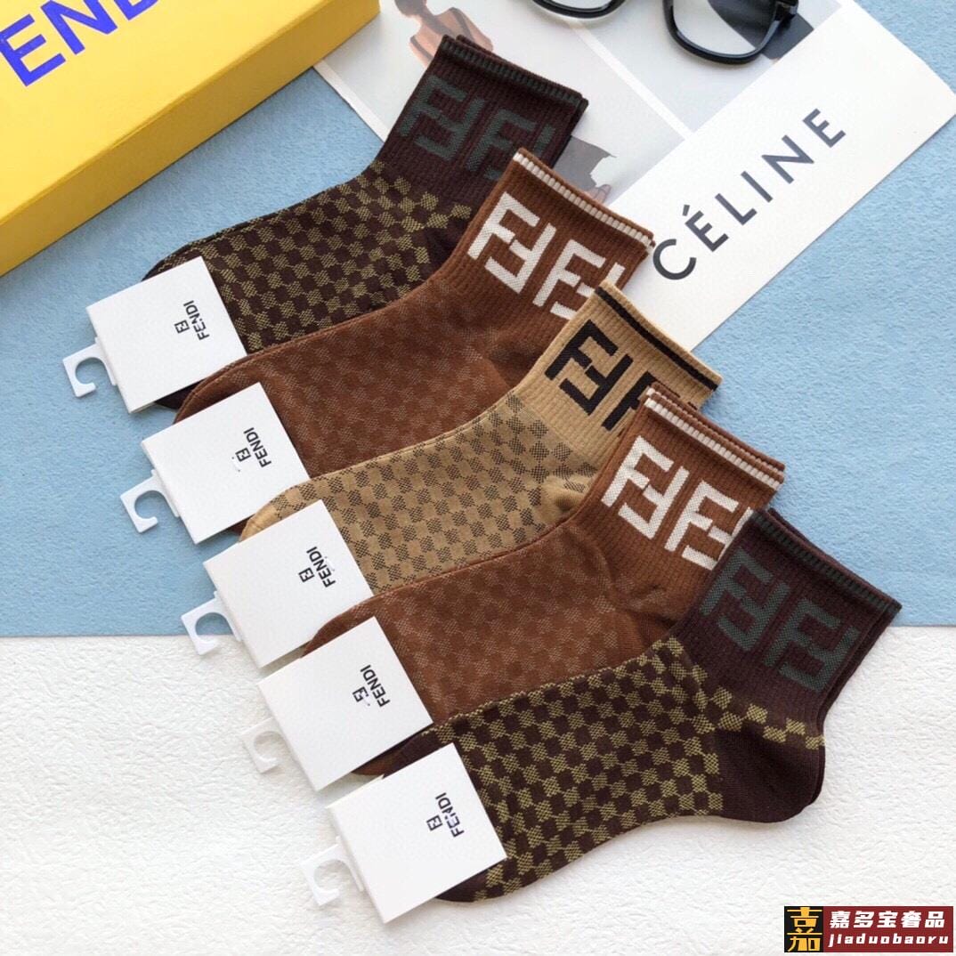 配包装一盒五双芬迪专柜新款中长款袜子经典字母堆堆袜专柜同步上